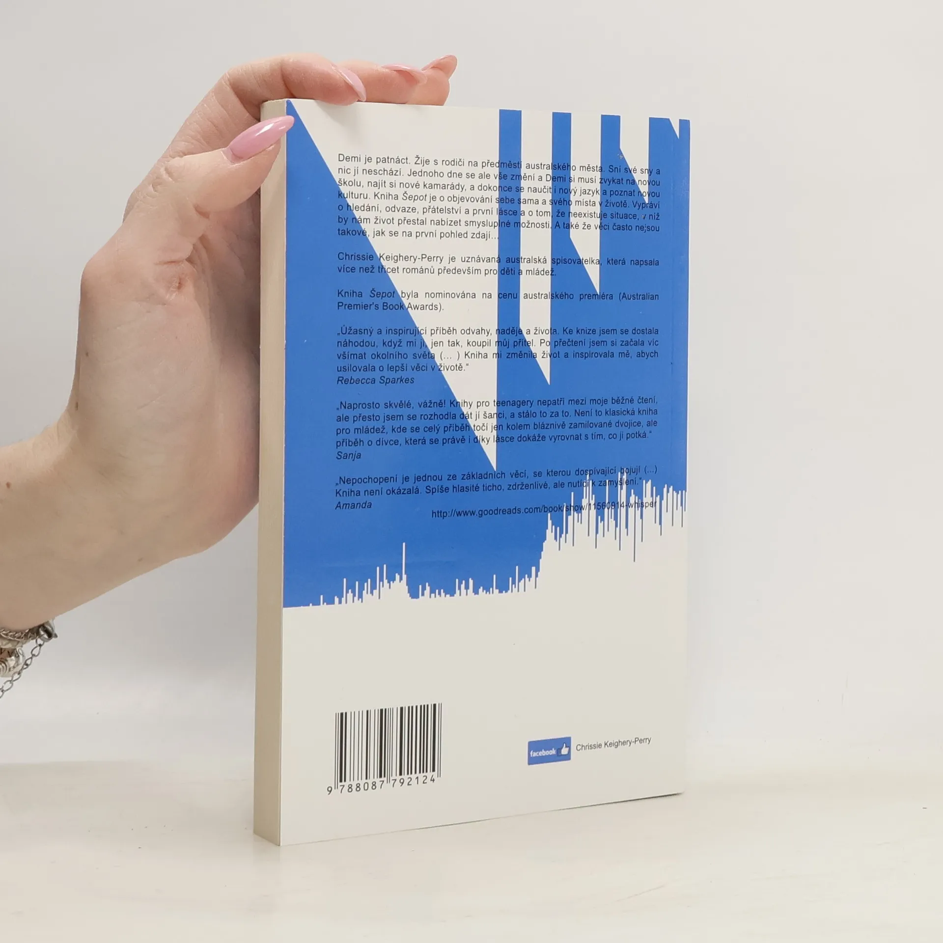 Demi je patnáct. Žije s rodiči na předměstí australského města. Sní své sny a nic jí neschází. Jednoho dne se ale vše změní a Demi si musí zvykat na novou školu, najít si nové kamarády, a dokonce se naučit nový jazyk a poznat novou kulturu. Kniha Šepot je o objevování sebe sama a svého místa v životě. Vypráví o hledání, odvaze, přátelství a první lásce a o tom, že neexistuje situace, v níž by nám život přestal nabízet smysluplné možnosti. A také že věci často nejsou takové, jak se na první pohled zdají...