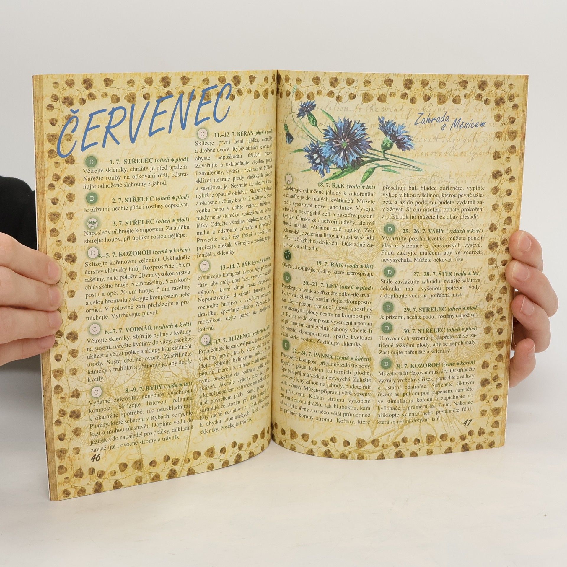 V knize najdete užitečné rady, jak se postarat o svou zahrádku v souladu s ročním obdobím a zároveň s lunárními cykly. Publikace je věnována dietě a zdravému stravování. Recepty jsou sestaveny tak, aby pokrmy vyhovovaly nejvhodnějším dnům k jejich konzumaci. Vše je doplněno obrázky pocházejícími ze starých herbářů, nálepek a pohlednic.