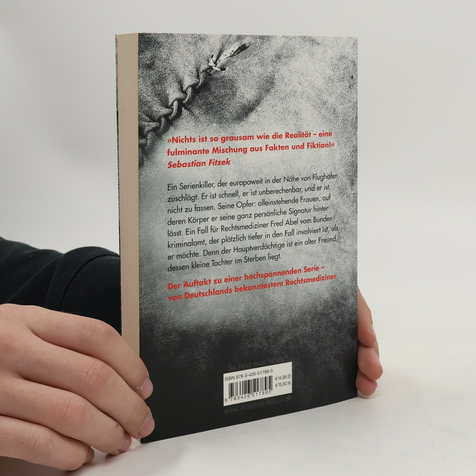 Der erste Thriller von Michael Tsokos basiert – wie könnte es anders sein – auf einem authentischen Fall und echten Ermittlungen. Sein Protagonist, Rechtsmediziner Dr. Fred Abel vom BKA, bekommt es mit einem europaweit agierenden Serienmörder zu tun: Im Umkreis europäischer Flughäfen geschehen Schlag auf Schlag Morde an Frauen, die der Täter mit einer mysteriösen Parole beschriftet. Durch eine spezielle DNA-Analyse gerät der Ex-Soldat Lars Moewig in Verdacht – ausgerechnet ein alter Kumpel des Rechtsmediziners aus gemeinsamen Bundeswehrzeiten, dem Abel so brutale Verbrechen niemals zugetraut hätte. Doch Moewig fehlen die Alibis, und er wird in U-Haft genommen. Während Moewigs kleine Tochter an Leukämie stirbt, versucht Abel fieberhaft, den wahren Täter zu entlarven. Eine atemlose Verfolgungsjagd über den europäischen Kontinent gefährdet nicht nur Abels Leben. Und die Zweifel an der Unschuld seines alten Freundes erdrücken ihn fast. „Nichts ist so grausam wie die Realität. „Zerschunden“ ist eine fulminante Mischung aus Fakten und Fiktion.“ Sebastian Fitzek
