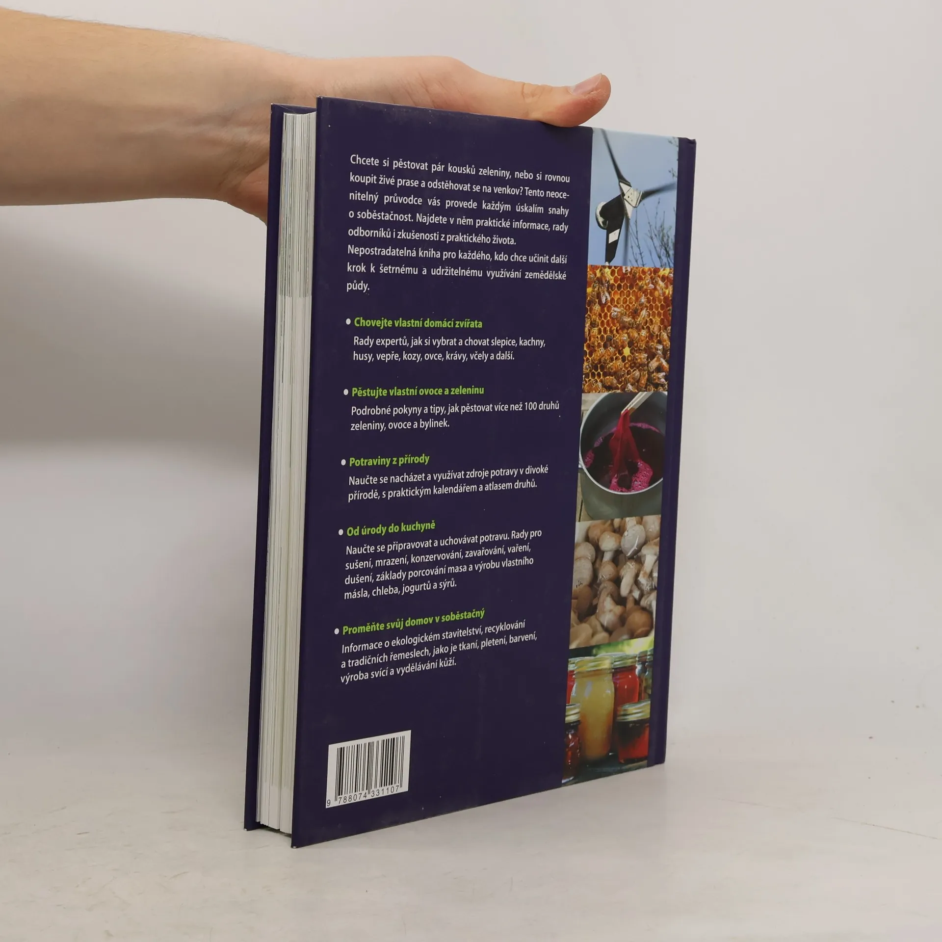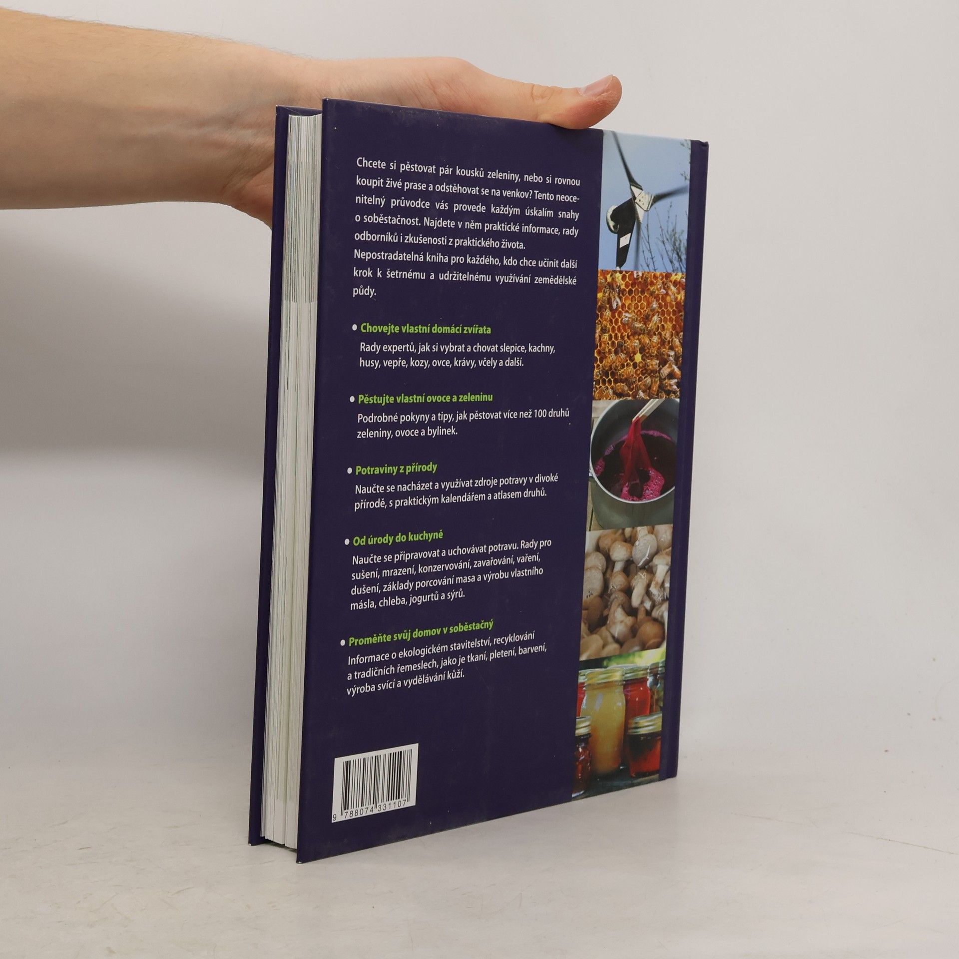 Chcete si pěstovat pár kousků zeleniny, nebo si rovnou koupit živé prase a odstěhovat se na venkov? Tento neocenitelný průvodce vás provede každým úskalím snahy o soběstačnost. Najdete v něm praktické informace, rady odborníků i zkušenosti z praktického života. Nepostradatelná kniha pro každého, kdo chce učinit další krok k šetrnému a udržitelnému využívání zemědělské půdy. • Chovejte vlastní domácí zvířata Rady expertů, jak si vybrat a chovat slepice, kachny, husy, vepře, kozy, ovce, krávy, včely a další. • Pěstujte vlastní ovoce a zeleninu Podrobné pokyny a tipy, jak pěstovat více než 100 druhů zeleniny, ovoce a bylinek. • Potraviny z přírody Naučte se nacházet a využívat zdroje potravy v divoké přírodě, s praktickým kalendářem a atlasem druhů. • Od úrody do kuchyně Naučte se připravovat a uchovávat potravu. Rady pro sušení, mrazení, konzervování, zavařování, vaření, dušení, základy porcování masa a výrobu vlastního másla, chleba, jogurtů a sýrů. • Proměňte svůj domov v soběstačný Informace o ekologickém stavitelství, recyklování a tradičních řemeslech, jako je tkaní, pletení, barvení, výroba svící a vydělávání kůží.