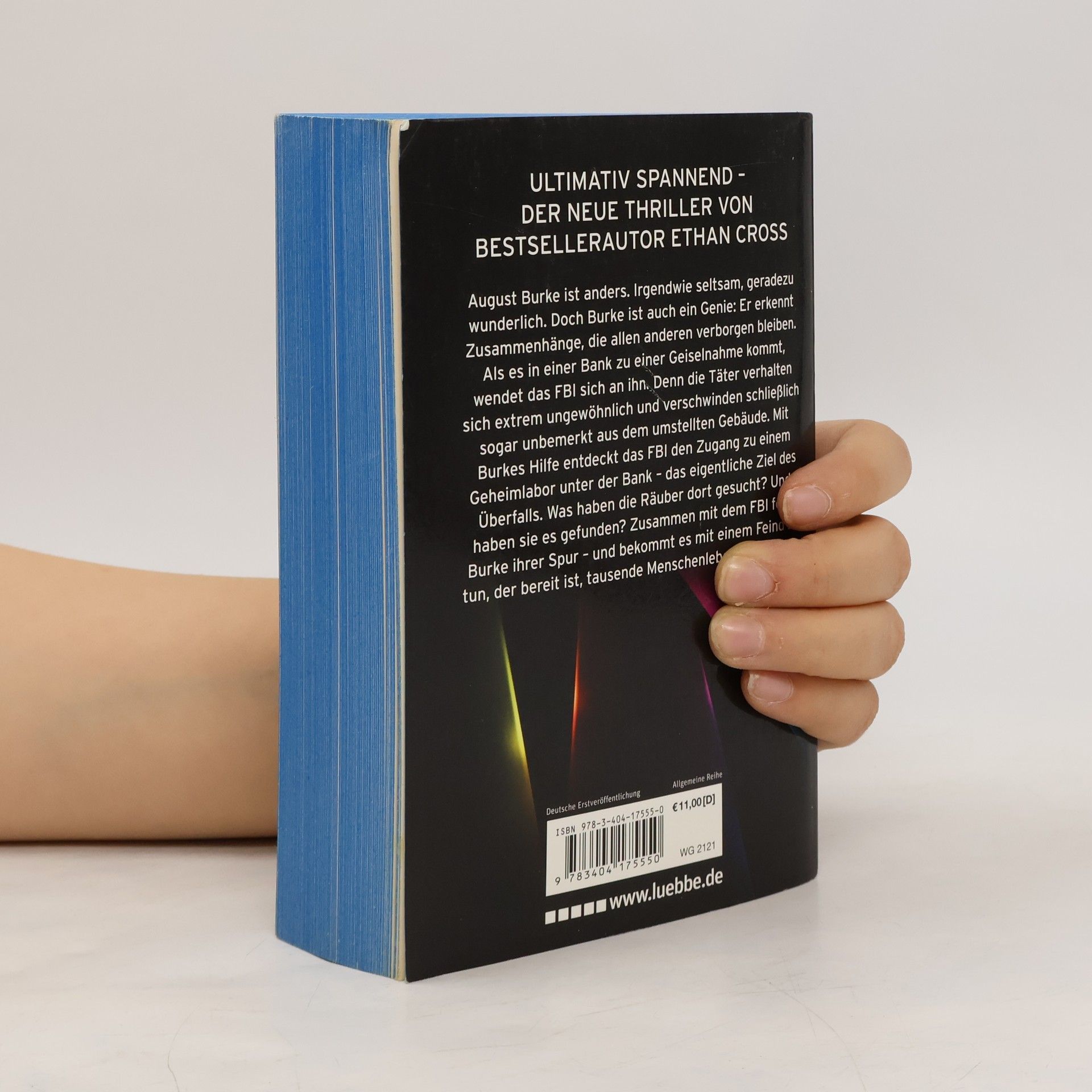 Eine neue rasante Thriller-Serie von Bestsellerautor Ethan Cross, dem Autor der Shepherd-Thriller August Burke ist anders. Irgendwie seltsam, geradezu wunderlich. Doch Burke ist auch ein Genie: Er erkennt Zusammenhänge, die allen anderen verborgen bleiben. Als es in einer Bank zu einer Geiselnahme kommt, wendet das FBI sich an ihn. Denn die Täter verhalten sich extrem ungewöhnlich und verschwinden schließlich sogar unbemerkt aus dem umstellten Gebäude. Mit Burkes Hilfe entdeckt das FBI den Zugang zu einem Geheimlabor unter der Bank - das eigentliche Ziel des Überfalls. Was haben die Räuber dort gesucht? Und haben sie es gefunden? Zusammen mit Special Agent Carter folgt Burke ihrer Spur - und bekommt es mit einem Feind zu tun, der bereit ist, tausende Menschenleben zu opfern.