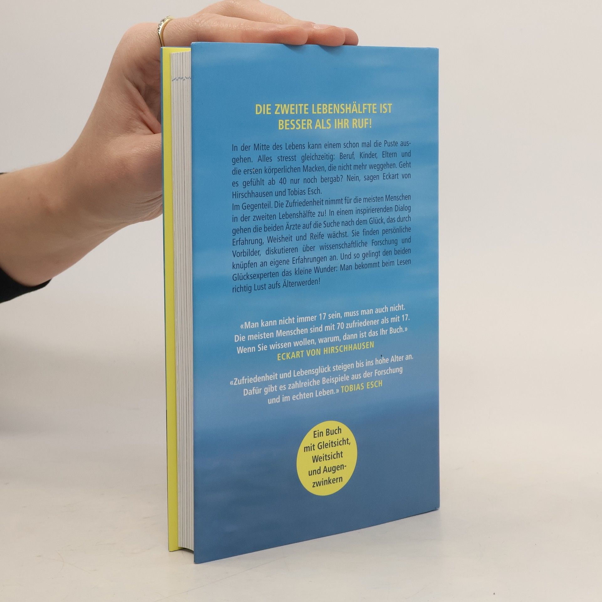 Eckart von Hirschhausen und Tobias Esch stellen im gemeinsamen Gespräch die vorherrschende Meinung über das Älterwerden auf den Kopf Könnte es sein, dass die Zufriedenheit nach der Jugend und der stressigen Phase in der Mitte des Lebens nicht schwindet, sondern sogar wächst? Eckart von Hirschhausen und Tobias Esch, die beiden Experten für das Glücklichsein, tun sich zusammen um zu klä Worauf darf man sich mitten im Leben freuen? In ihrem Dialog prüfen sie die These, dass das Lebensglück bis ins hohe Alter ansteigen kann. Und so entsteht ein Gespräch, bei dem beide – der Fernsehmoderator und der Gesundheitsforscher – persönliche Vorbilder benennen, Anknüpfungspunkte zu eigenen Erfahrungen geben und, trotz mancher Tücken, Lust machen auf das Älterwerden. Hören Sie Eckart von Hirschhausen und Tobias Esch im Gespräch über das Altern – gerade so, als würden Sie mit am Tisch sitzen.(1CD, ca. 1h 11) .