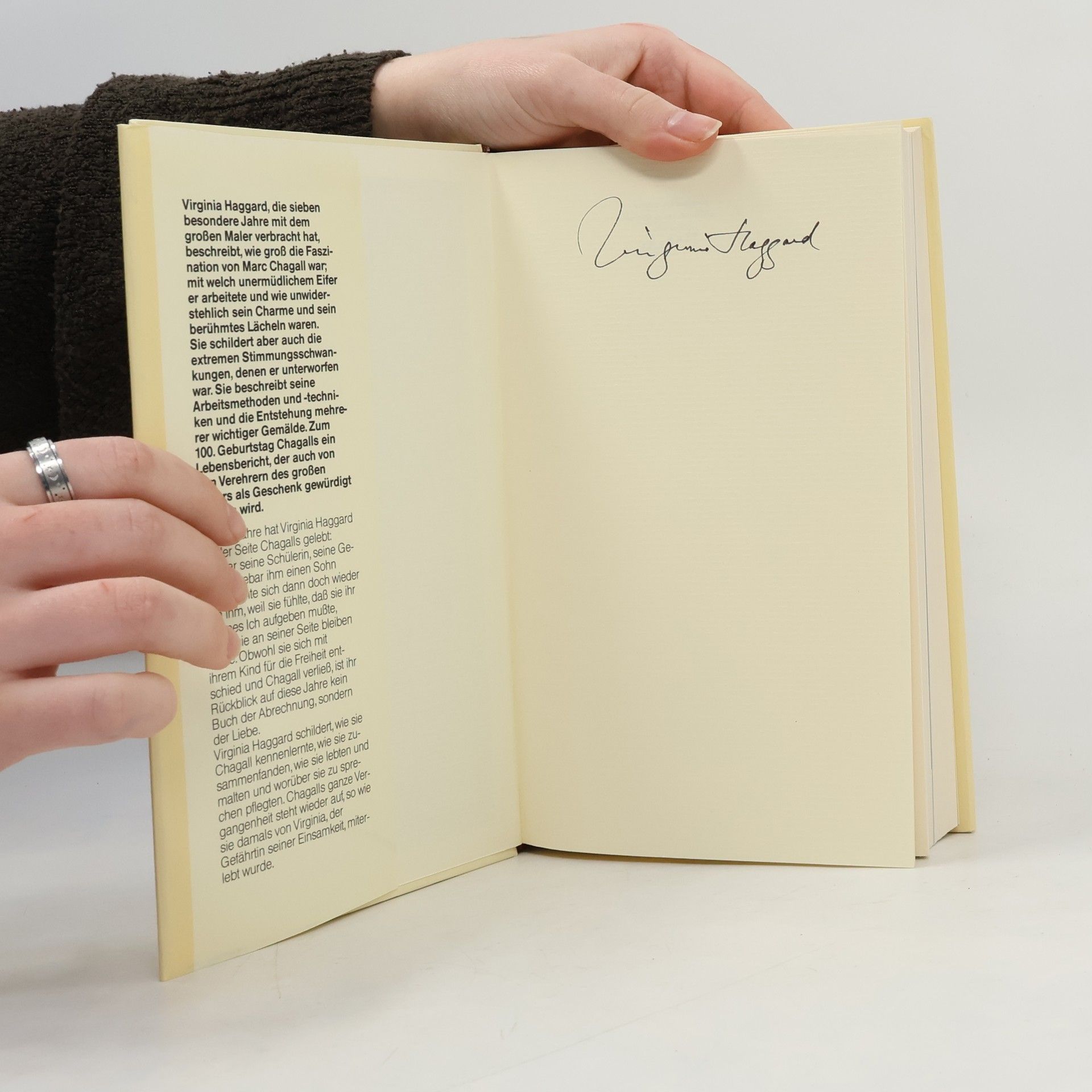 1945 tritt Virginia Haggard bei dem vereinsamten Witwer Chagall eine Stelle als Haushälterin an. Bald verlieben sich die beiden ineinander. Virginia erwartet schließlich ein Kind. Sieben Jahre hat sie an Chagalls Seite gelebt. Obwohl sie ihn dann verließ, ist ihr Rückblick kein Buch der Abrechnung, sondern der Liebe. Eine Kostbarkeit für alle Bewunderer Chagalls. Virginia Haggard weiß auch viel Wissenswertes über die Entstehung wichtiger Bilder und die Arbeitsmethoden des neben Picasso berühmtesten Malers unseres Jahrhunderts zu erzählen.