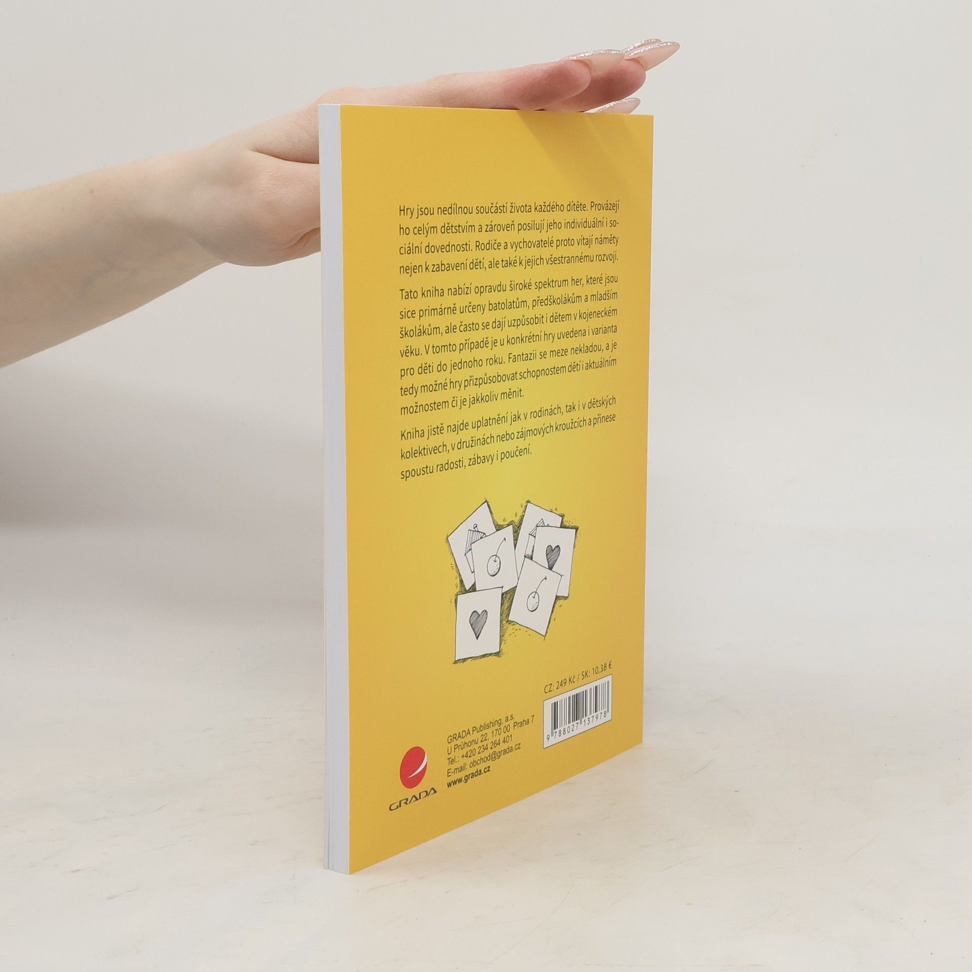 Hry jsou nedílnou součástí života každého dítěte. Provázejí ho celým dětstvím a zároveň posilují jeho individuální i sociální dovednosti. Rodiče a vychovatelé proto vítají náměty nejen k zabavení dětí, ale také k jejich všestrannému rozvoji. Tato kniha nabízí opravdu široké spektrum her, které jsou sice primárně určeny batolatům, předškolákům a mladším školákům, ale často se dají uzpůsobit i dětem v kojeneckém věku. V tomto případě je u konkrétní hry uvedena i varianta pro děti do jednoho roku. Fantazii se meze nekladou, a je tedy možné hry přizpůsobovat schopnostem dětí i aktuálním možnostem či je jakkoliv měnit. Kniha jistě najde uplatnění jak v rodinách, tak i v dětských kolektivech, v družinách nebo zájmových kroužcích a přinese spoustu radosti, zábavy i poučení.