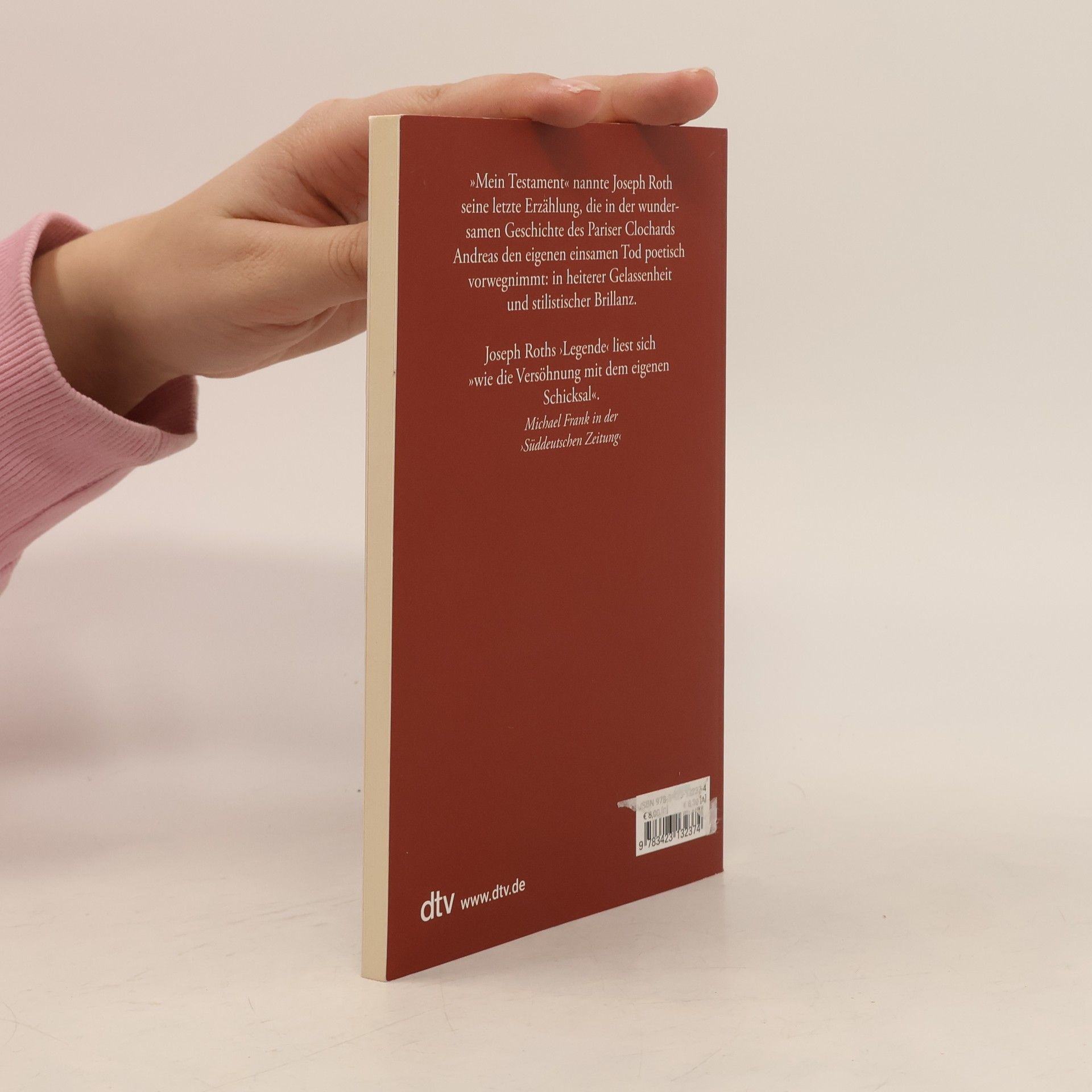 Roths 1939 entstandene letzte Erzählung vom frommen Tor, der noch an Wunder glaubt und seinen eigenen Tod mit Würde inszeniniert. Am Ziel seiner Odyssee durch Paris ruft Andreas »Fräulein Therese!«, seufzt ein letztes Mal und stirbt »einen so leichten und so schönen Tod«, wie man ihn sich nur wünschen kann. Der Clochard und Trinker hatte zweihundert Francs von einem eleganten Herrn erhalten, mit der Auflage, die Rückzahlung der Kapelle der »kleinen heiligen Therese von Lisieux« zugute kommen zu lassen. Scheinbar zufällig und blitzhaft, ist das Zusammentreffen für Andreas willkommener Anlass, seine Wiedergeburt zu feiern - als Tag der Umkehr und Läuterung. Zunächst gönnt er sich aber eine feine Mahlzeit und macht sich eine schöne Zeit. Aus seinem festen Vorhaben, der heiligen Therese zu ihrem Recht zu verhelfen, will vorerst so recht nichts werden ...  Wie stets in seinen Erzähltexten setzt Roth einen mühelos gleitenden, melodiösen Sprachfluss in Gang, dem dennoch das Gepräge eines »Testaments« zu Eigen ist: So charakterisierte der Autor selbst in düsterer Vorahnung seine 1939 entstandene »Legende«. Der eigene Tod mit 45 Jahren wird mit bestürzender Konsequenz und gleichwohl in hoffnungsvollem Tonfall vorweggenommen - sollte dies doch wirklich die letzte Erzählung einer sensiblen Künstlernatur bleiben, für die Poetsein bedeutete, den »Narren, oder Bettler, oder alles zugleich« vorzustellen.