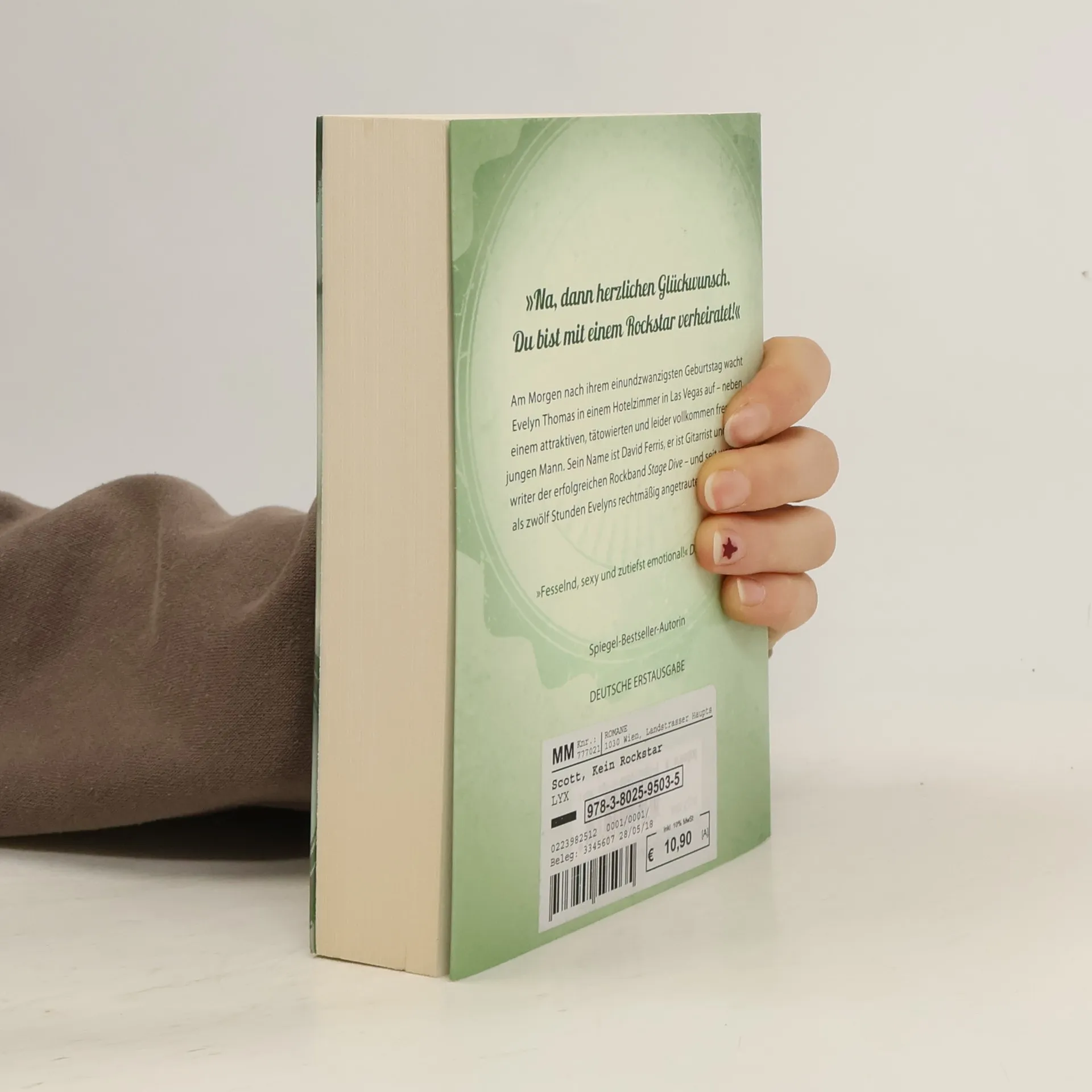 Am Morgen nach ihrem einundzwanzigsten Geburtstag wacht Evelyn Thomas in einem Hotelzimmer in Las Vegas auf – neben einem sehr attraktiven, tätowierten und leider vollkommen fremden jungen Mann. Sein Name ist David, und er ist Gitarrist der erfolgreichen Rockband “Stage Dive” … und seit weniger als zwölf Stunden Evelyns Ehemann. Die beiden müssen sich entscheiden, ob sie einander den Rücken kehren wollen oder ob da vielleicht doch mehr zwischen ihnen ist …
