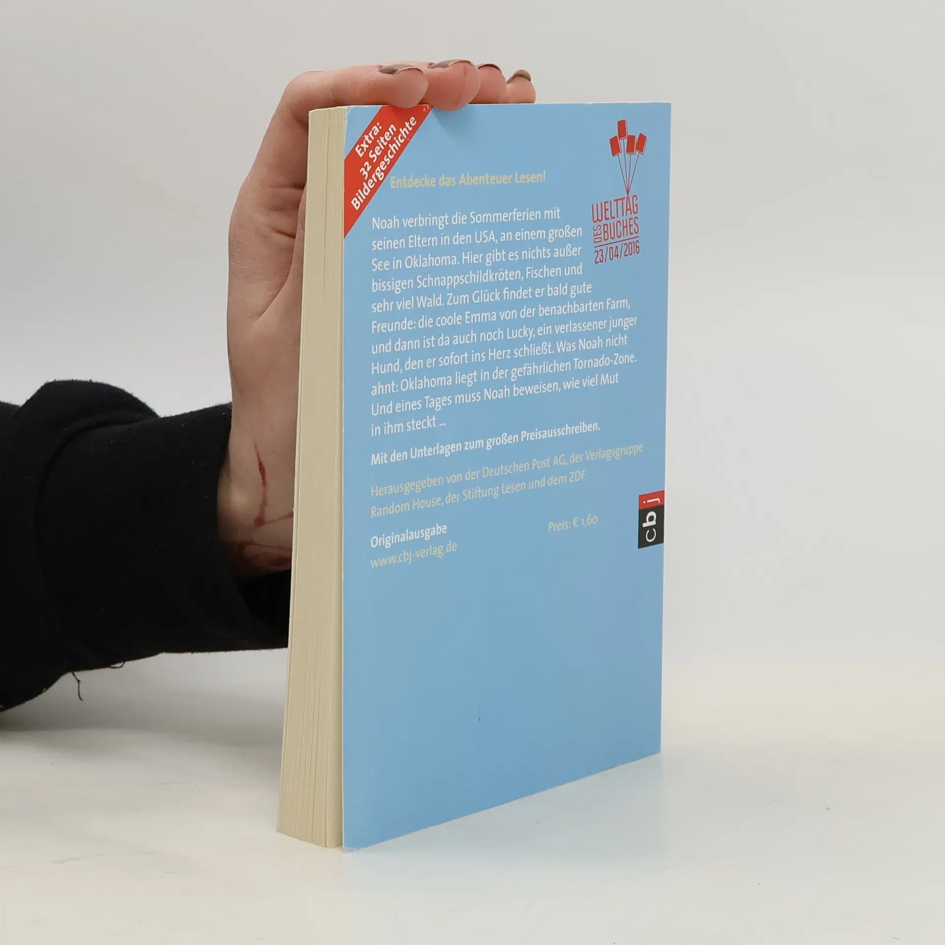Noah verbringt die Sommerferien mit seinen Eltern in den USA, am Eufaula-See in Oklahoma. Hier gibt es nichts außer bissigen Schnappschildkröten, Fischen und sehr viel Wald. Zum Glück findet er bald richtig gute Freunde: die coole Emma von der benachbarten Farm - und dann ist da auch noch Lucky, ein verlassener kleiner Hund, den er gesundpflegt und sofort ins Herz schließt. Was Noah nicht ahnt: Oklahoma liegt in einem Gebiet, wo gefährliche Tornados besonders häufig auftreten. Und eines Tages muss Noah beweisen, wie viel Mut in ihm steckt … Extra: Die Geschichte als Graphic Novel im Anhang