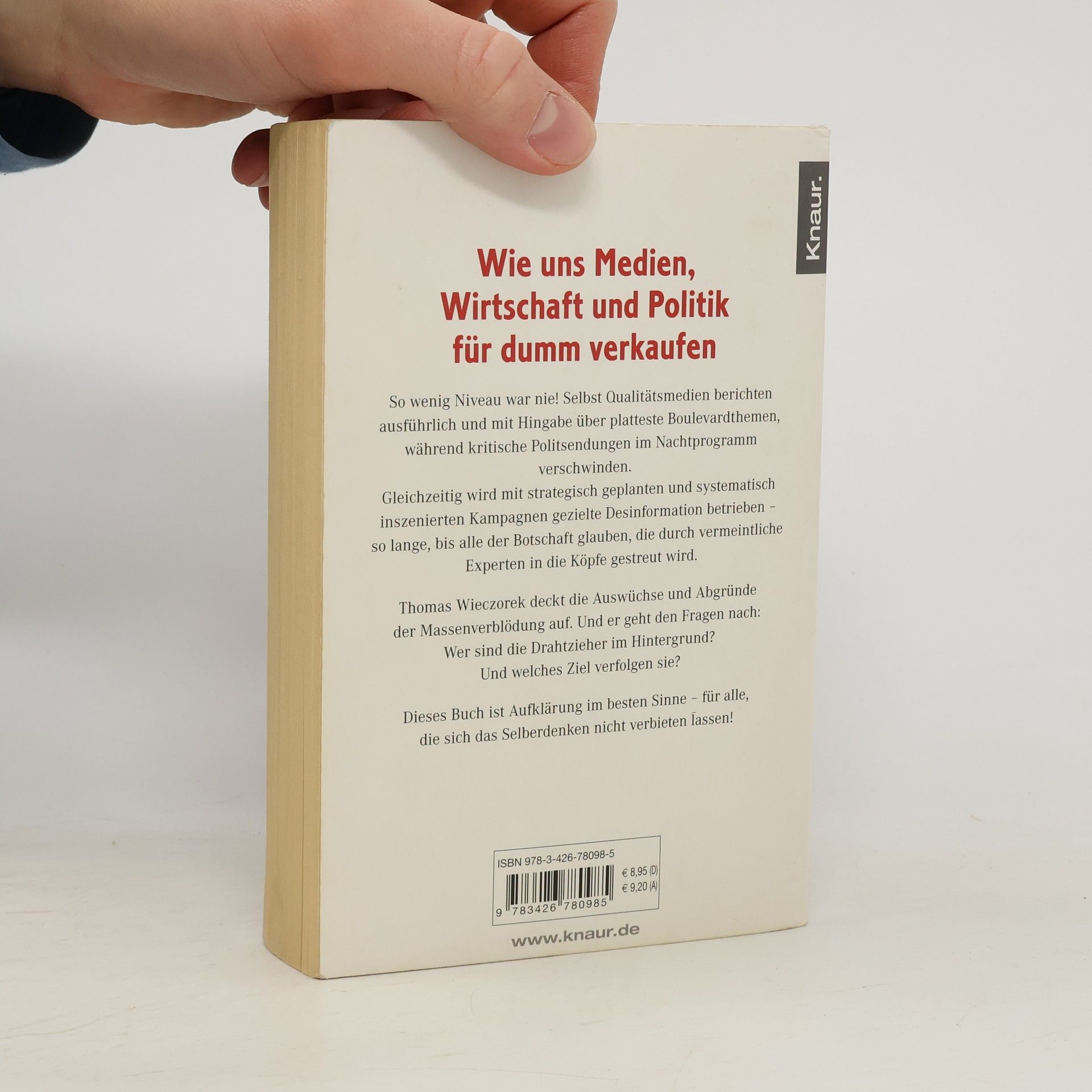 So wenig Niveau war nie! Selbst Qualitätsmedien berichten ausführlich und mit Hingabe vom Dschungelcamp oder Deutschland sucht den Superstar. Gleichzeitig dürfen von der Wirtschaft finanzierte Professoren auch in der Tagesschau dreist als unabhängige Experten auftreten. Ihre Phrasen werden uns als alternativlose Wahrheiten verkauft – während kritische Politsendungen im Nachtprogramm verschwinden.In seinem neuen Buch deckt Thomas Wieczorek die Auswüchse der allgemeinen Massenverblödung auf. Und er geht der Frage nach: Wird sie bewusst betrieben? Und von wem? Und mit welchem Ziel?Das Ergebnis seiner Recherchen ist Aufklärung im besten Sinne.