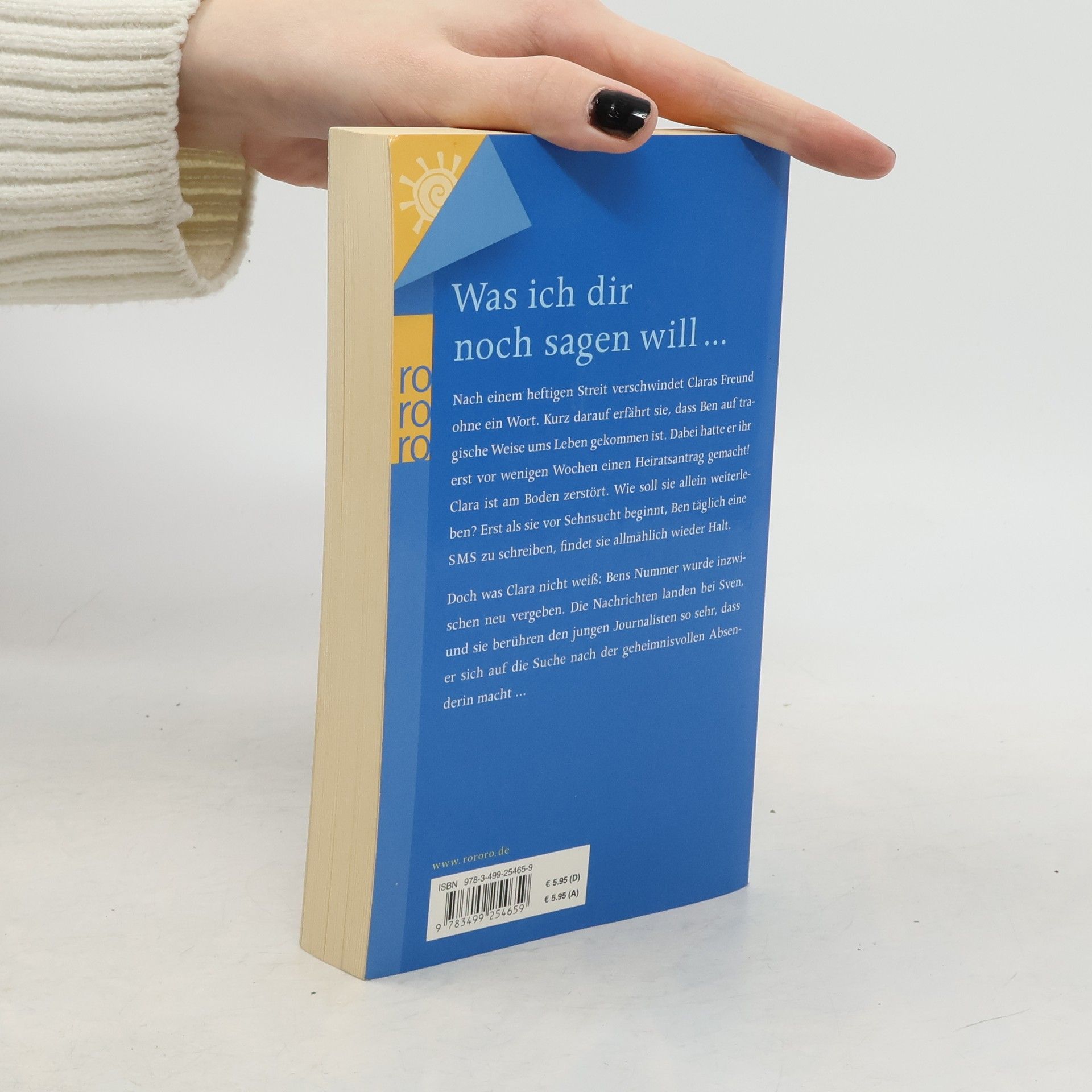 Was ich dir noch sagen will ... Nach einem heftigen Streit verschwindet Claras Freund ohne ein Wort. Kurz darauf erfährt sie, dass Ben auf tragische Weise ums Leben gekommen ist. Dabei hatte er ihr erst vor wenigen Wochen einen Heiratsantrag gemacht! Clara ist am Boden zerstört. Wie soll sie allein weiterleben? Erst als sie vor Sehnsucht beginnt, Ben täglich eine SMS zu schreiben, findet sie allmählich wieder Halt. Doch was Clara nicht weiß: Bens Nummer wurde inzwischen neu vergeben. Die Nachrichten landen bei Sven, und sie berühren den jungen Journalisten so sehr, dass er sich auf die Suche nach der geheimnisvollen Absenderin macht ...