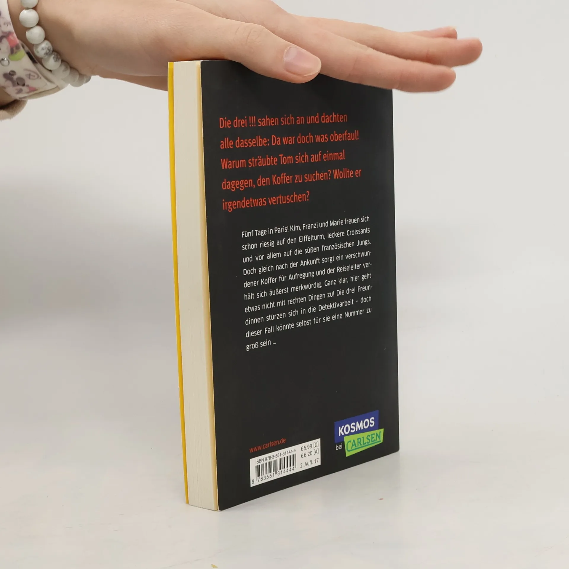 Fünf Tage in Paris! Die drei !!! freuen sich schon riesig auf den Eiffelturm, leckere Croissants und vor allem auf die süßen französischen Jungs. Doch gleich nach ihrer Ankunft verschwindet der Koffer einer Klassenkameradin – nur, um kurz darauf wieder aufzutauchen. Ganz klar, hier ist was faul! Kim, Franzi und Marie stoßen auf einen internationalen Schmugglerring. Dieser Fall könnte sogar für die drei Detektivinnen eine Nummer zu groß sein …