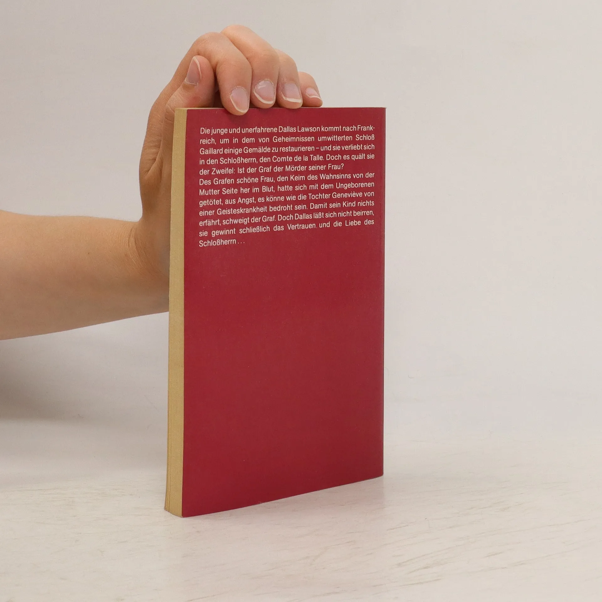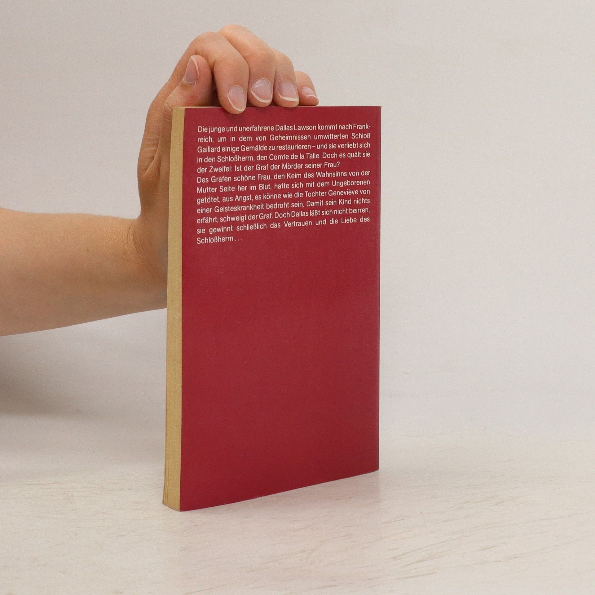 Die junge und unerfahrene Dallas Lawson kommt nach Frankreich, um in dem von Geheimnissen umwitterten Schloss Gaillard einige Gemälde zu restaurieren – und sie verliebt sich in den Schlossherrn, den Comte de la Talle. Doch es quält sie ein Zweifel: Ist der Graf womöglich der Mörder seiner Frau? Die schöne Gattin des Grafen, den Keim des Wahnsinns von mütterlicher Seite her im Blut, hatte sich mit dem ungeborenen Kind das Leben genommen, aus Angst, es könne wie die Tochter Geneviève von einer Geisteskrankheit bedroht sein. Damit sein Kind nichts erfährt, schweigt der Graf. Doch Dallas lässt sich nicht beirren, sie gewinnt schließlich das Vertrauen und die Liebe des Schlossherrn ... Victoria Holt, die Meistererzählerin des Unheimlichen, verbindet in diesem aufregenden Roman ein Höchstmaß an Spannung mit einer romantischen Handlung, die den Leser bis zur letzten Seite fesselt.