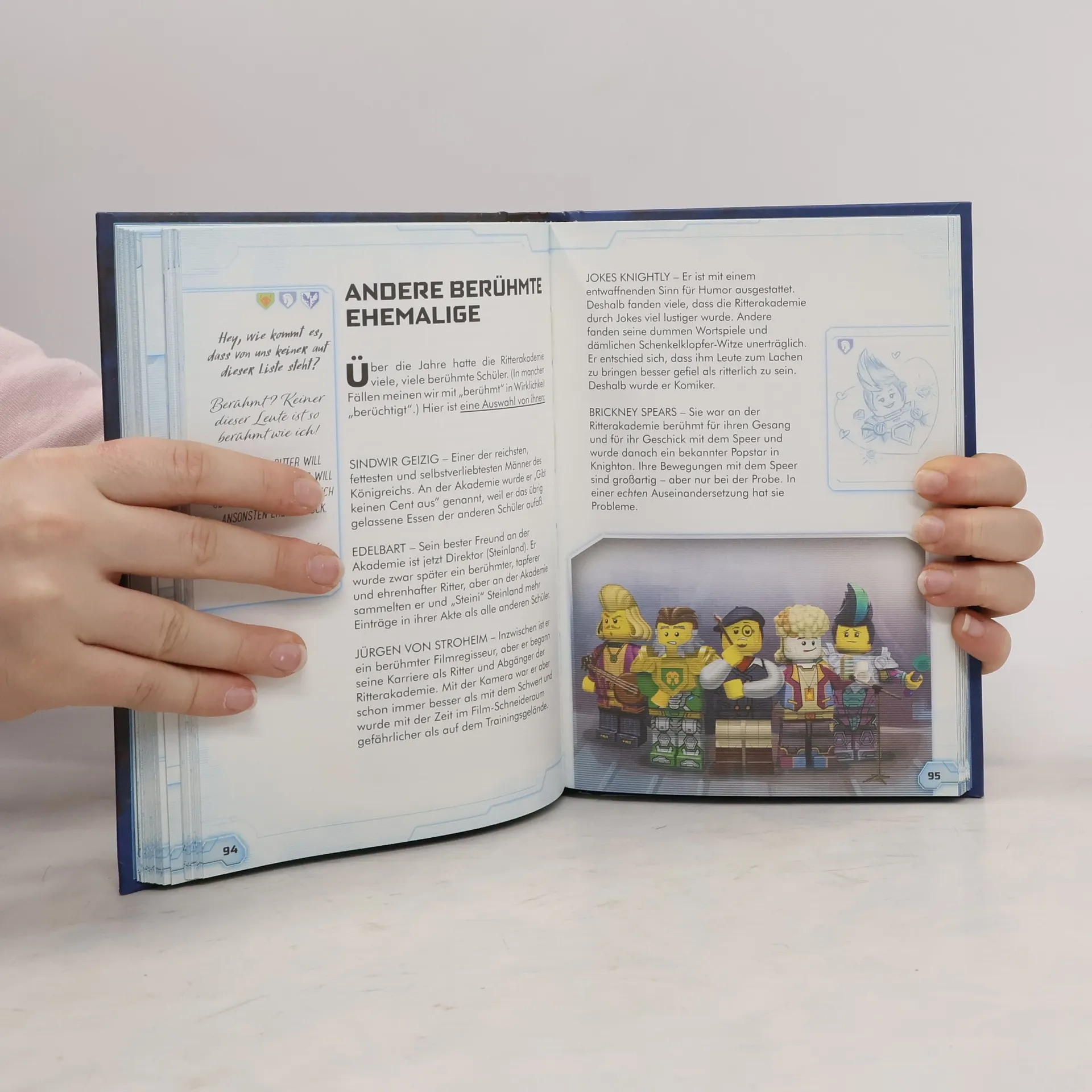 Ein MUSS für jeden Ritterfan – der Ritterkodex! Für die LEGO® NEXO KNIGHTS™ Ritter ist er Gesetz! Als Handbuch aus der Bibliothek des großen Zauberers Merlok enthält der Ritterkodex die Grundtugenden der Ritterschaft. Doch das ist nicht alles. Auch eine Geschichtsstunde zum Königreich Knighton und der Ritterakademie sowie eine Vorstellung der Helden und ihrer Ausrüstung ist Teil dieses legendären Handbuchs, bekannt aus der TV-Serie. Ein „alter“ Teil beschäftigt sich mit den Lehren und Legenden von Knighton, ein „moderner“ Teil beschreibt die Hightech-Tricks der jungen Helden in einer Welt voller digitaler Magie und fieser Monster. • aufwendige Gestaltung mit handgezeichneten Bildern • Geschichten über die Helden aus der LEGO® NEXO KNIGHTS™ TV-Serie • Pflichtlektüre für jeden LEGO NEXO KNIGHTS Fan!