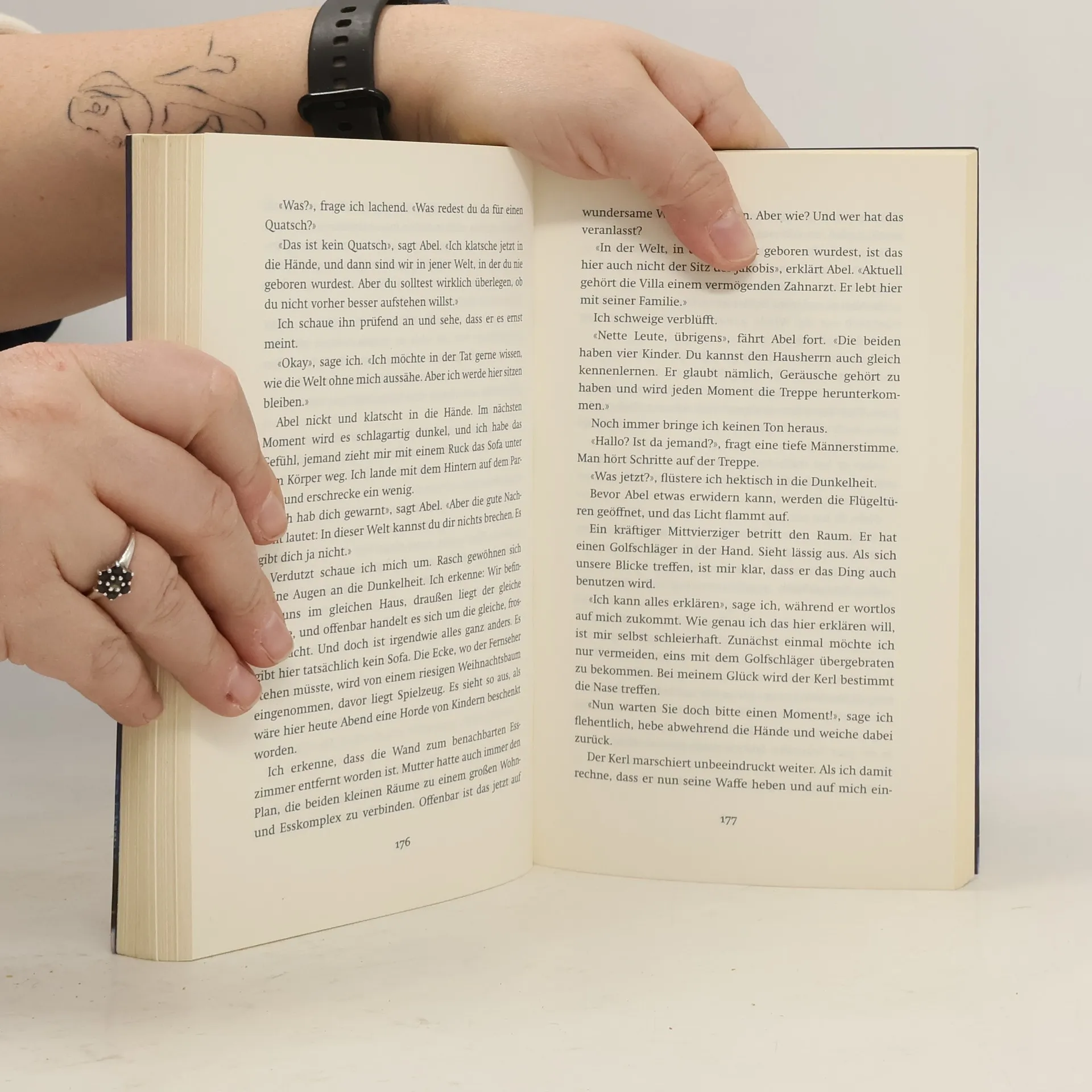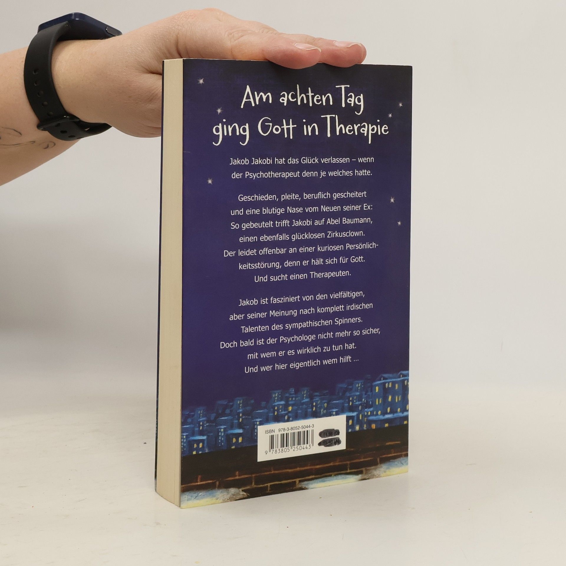 «Vor Ihnen sitzt der liebe Gott höchstpersönlich», erklärt mein Gegenüber und wischt sich die Lachtränen aus dem Gesicht.Wir schweigen.«Witzig», sage ich nach einer Weile und gebe mich unbeeindruckt. «Ich hab Sie mir immer anders vorgestellt.»Baumann hebt den Zeigefinger und sagt mit gespielter Strenge: «Das ist verboten. Man darf sich kein Bild von mir machen.»«Na, immerhin scheint Gott Humor zu haben», sage ich.Baumann nickt. «Es bleibt Gott nichts anderes übrig, als die Dinge mit Humor zu nehmen.» Sein Lächeln verwandelt sich in einen Anflug von Melancholie. Nachdenklich schaut er zu Boden. «Es ist die Wahrheit, Dr. Jakobi. Ich bin es wirklich.» Er beugt sich vor und sieht mir nun direkt in die Augen. «Ich bin Gott. Und ich bin, unter uns gesagt, ziemlich im Arsch. Es wäre also schön, wenn Sie mir helfen könnten, Doktor.»