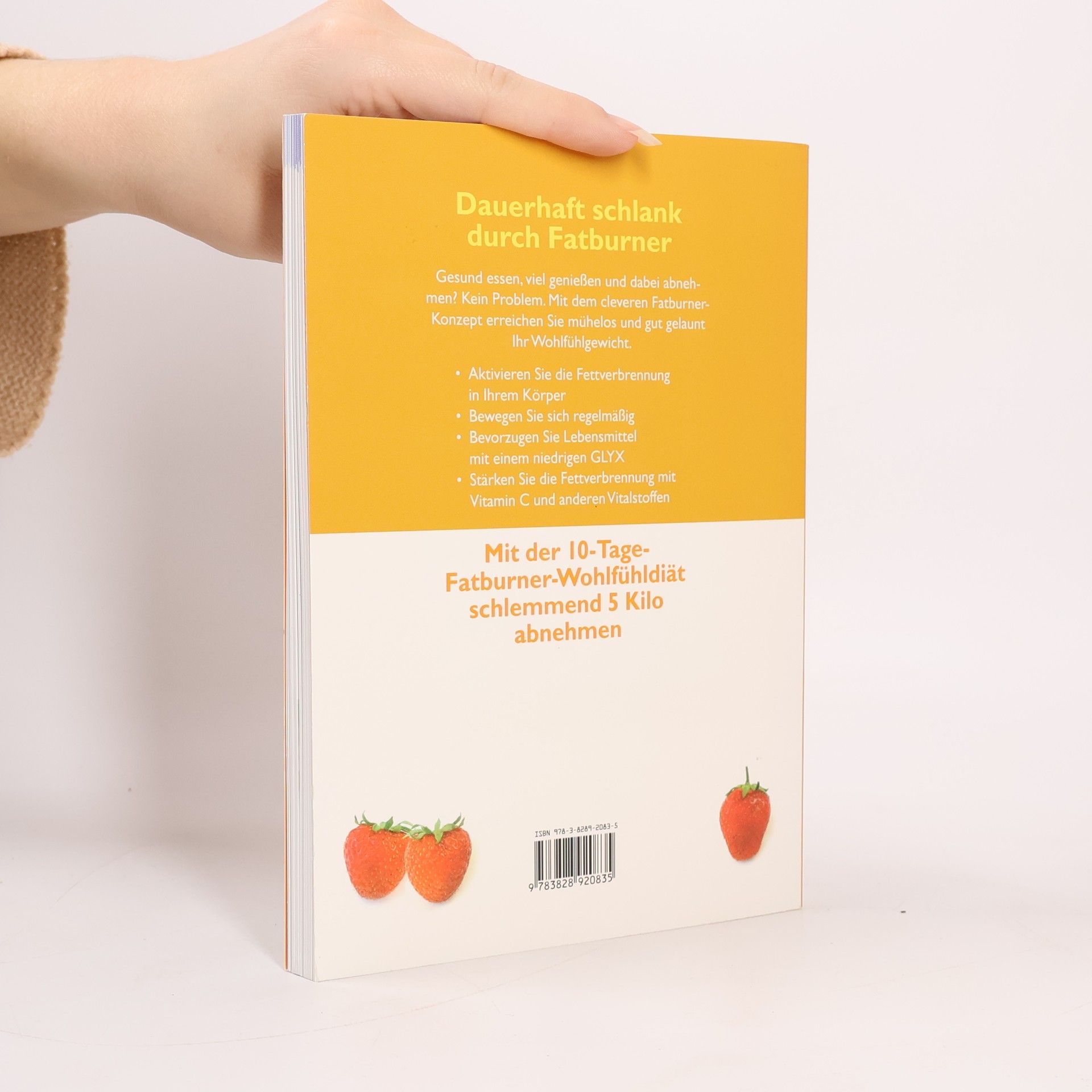 Abnehmen ohne Jo-Jo-Effekt. 'Fatburner' sind Vitalstoffe, die das Fett in den Zellen zum Schmelzen bringen: Sie aktivieren den Fettabbau in den Fettzellen oder kurbeln die Produktion von Hormonen an, die schlank, fit und glücklich machen. Der Ratgeber verrät, wie eine zeitgemäße Ernährung aussieht und in welchen Lebensmitteln welche Vitalstoffe stecken. Dazu gibt es eine komplette 14-Tage-Biostoff-Diät mit köstlichen und leichten Rezepten, die den Stoffwechsel auf Trab bringen und die Pfunde purzeln lassen, sowie ein ergänzendes Wellness-Programm mit Gymnastik, Massagen und vielem mehr. Als Extra ist eine Tabelle zum Einstecken enthalten.
