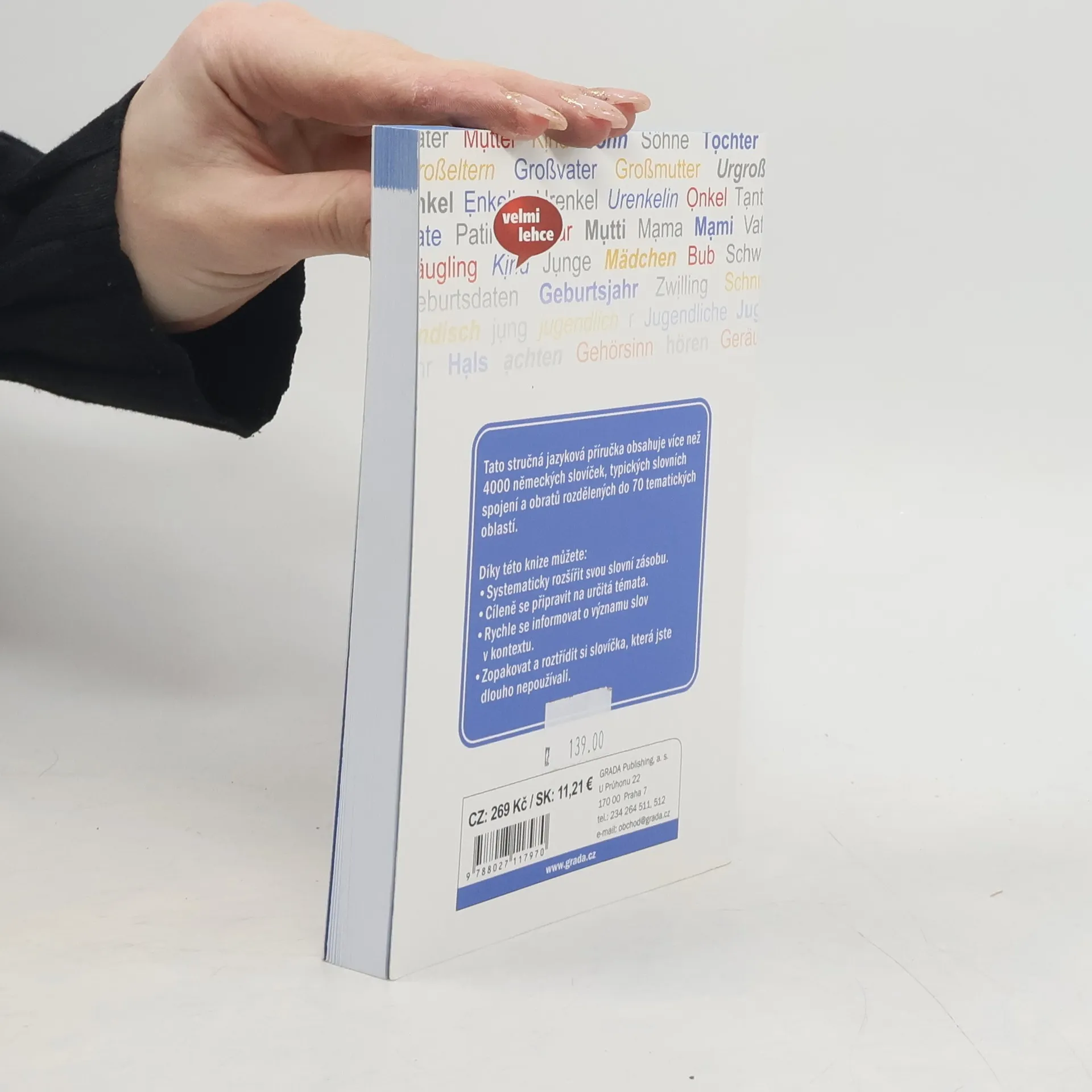 Tato kniha obsahuje tematicky řazenou slovní zásobu německého jazyka. Jedná se o často používané výrazy, ale i slovní spojení, uživatelé zde najdou také přísloví. Kniha je určena nejen pro žáky a studenty, ale i pro dospělé, kteří si chtějí rozšířit svou slovní zásobu. Díky jasné struktuře knihy si ji mohou také zopakovat a roztřídit. K jednotlivým tématům se pak lze jednoduše vracet a své znalosti prohlubovat a kontrolovat. Získanou slovní zásobu je možné využít při běžné komunikaci s rodilými mluvčími, při studijních cestách, turistice, ale i při studiu a v zaměstnání. Kniha se může stát praktickou pomůckou při přípravě na různé typy zkoušek a testů a při psaní vlastních textů. Řazení slovíček do tematických kapitol usnadní orientaci ve slovní zásobě, ale také její jednodušší osvojování. Často se v knize vyskytují i synonymní výrazy, někdy i slova opačného významu. Při běžné komunikaci lze využít i výrazy hovorové němčiny. Pro zapamatování a správné použití slovíček jsou velkou pomůckou příkladové věty, často používaná slovní spojení a přísloví.