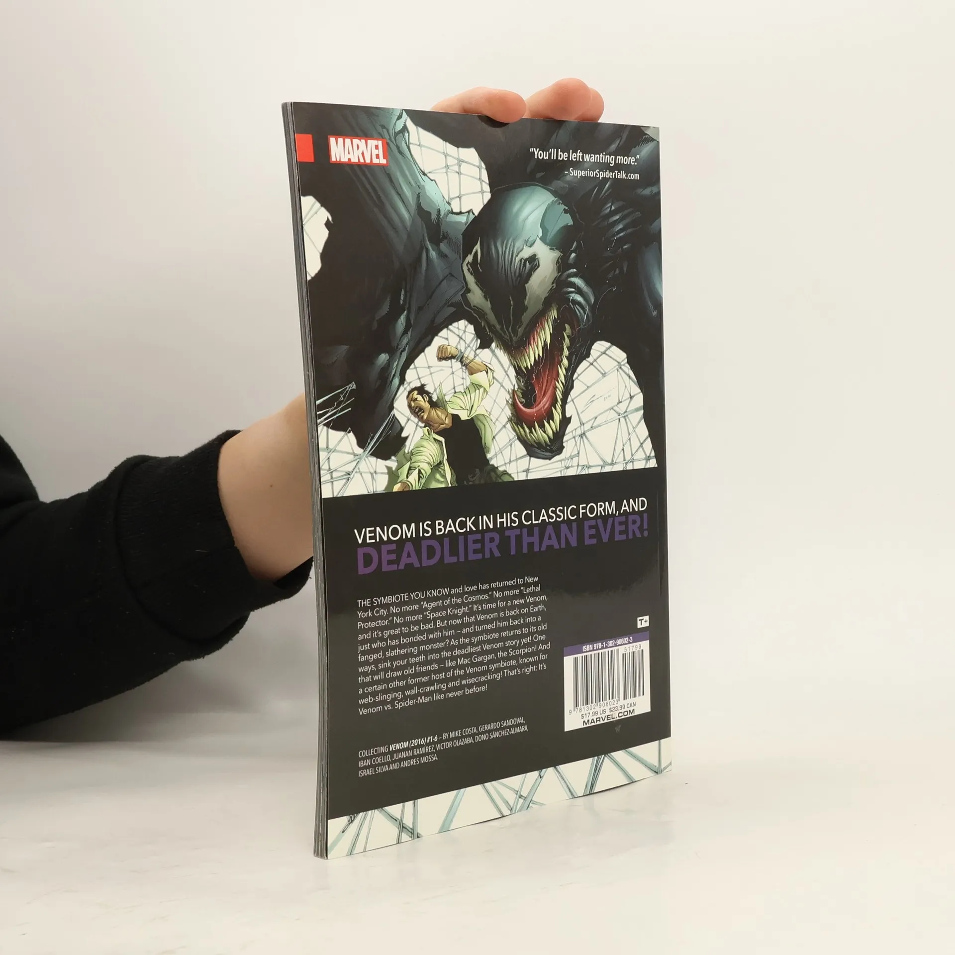 Venom is back in his classic form, and deadlier than ever! The symbiote you know and love has returned to New York City. No more "Agent of the Cosmos." No more "Lethal Protector." It's time for a new Venom, and it's great to be bad. But now that Venom is back on Earth and back in the gutter, just who has bonded with him - and turned him back into the slathering, fanged monster? COLLECTING: VENOM 1-6