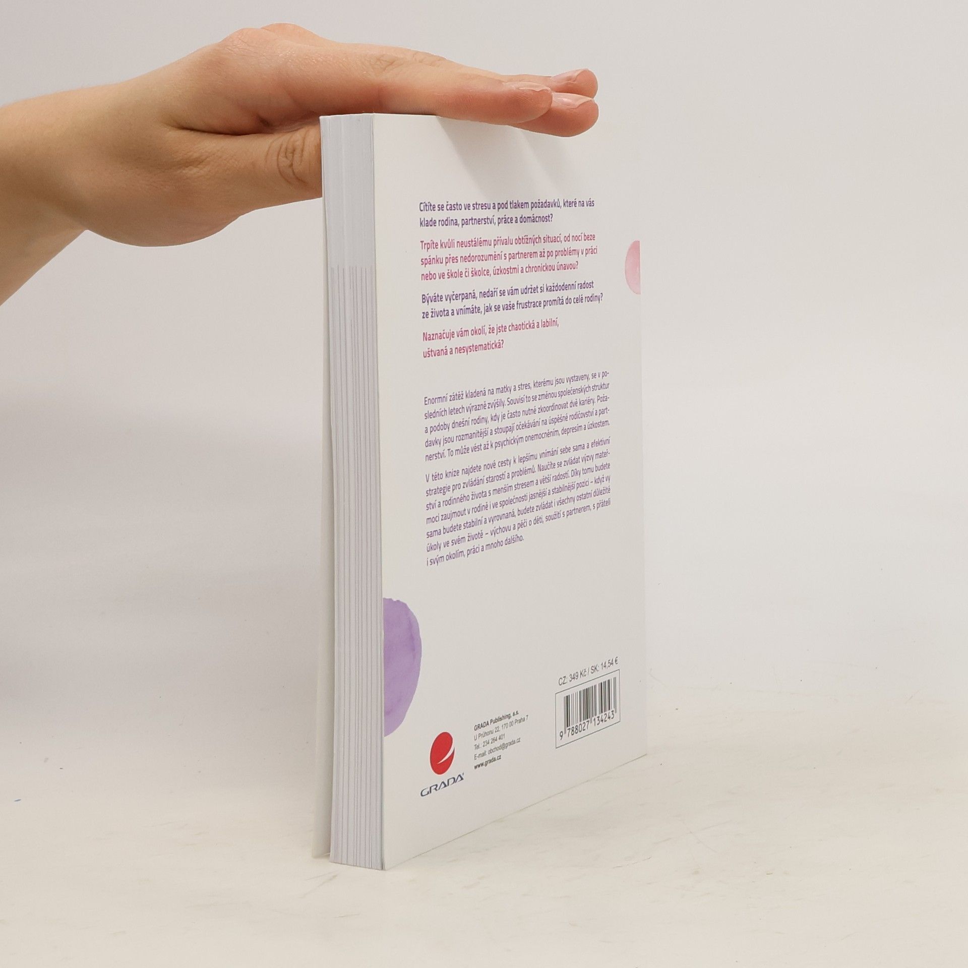 Enormní zátěž kladená na matky a stres, kterému jsou vystaveny, se v posledních letech výrazně zvýšily. Souvisí to se změnou společenských struktur a podoby dnešní rodiny, kdy je často nutné zkoordinovat dvě kariéry. Požadavky jsou rozmanitější a stoupají očekávání na úspěšné rodičovství a partnerství. To může vést až k psychickým onemocněním, depresím a úzkostem. V této knize najdete nové cesty k lepšímu vnímání sebe sama a efektivní strategie pro zvládání starostí a problémů. Naučíte se zvládat výzvy mateřství a rodinného života s menším stresem a větší radostí. Díky tomu budete moci zaujmout v rodině i ve společnosti jasnější a stabilnější pozici – když vy sama budete stabilní a vyrovnaná, budete zvládat i všechny ostatní důležité úkoly ve svém životě – výchovu a péči o děti, soužití s partnerem, s přáteli i svým okolím, práci a mnoho dalšího. Cítíte se často ve stresu a pod tlakem požadavků, které na vás klade rodina, partnerství, práce a domácnost? Trpíte kvůli neustálému přívalu obtížných situací, od nocí beze spánku přes nedorozumění s partnerem až po problémy v práci nebo ve škole či školce, úzkostmi a chronickou únavou? Býváte vyčerpaná, nedaří se vám udržet si každodenní radost ze života a vnímáte, jak se vaše frustrace promítá do celé rodiny? Naznačuje vám okolí, že jste chaotická a labilní, uštvaná a nesystematická?