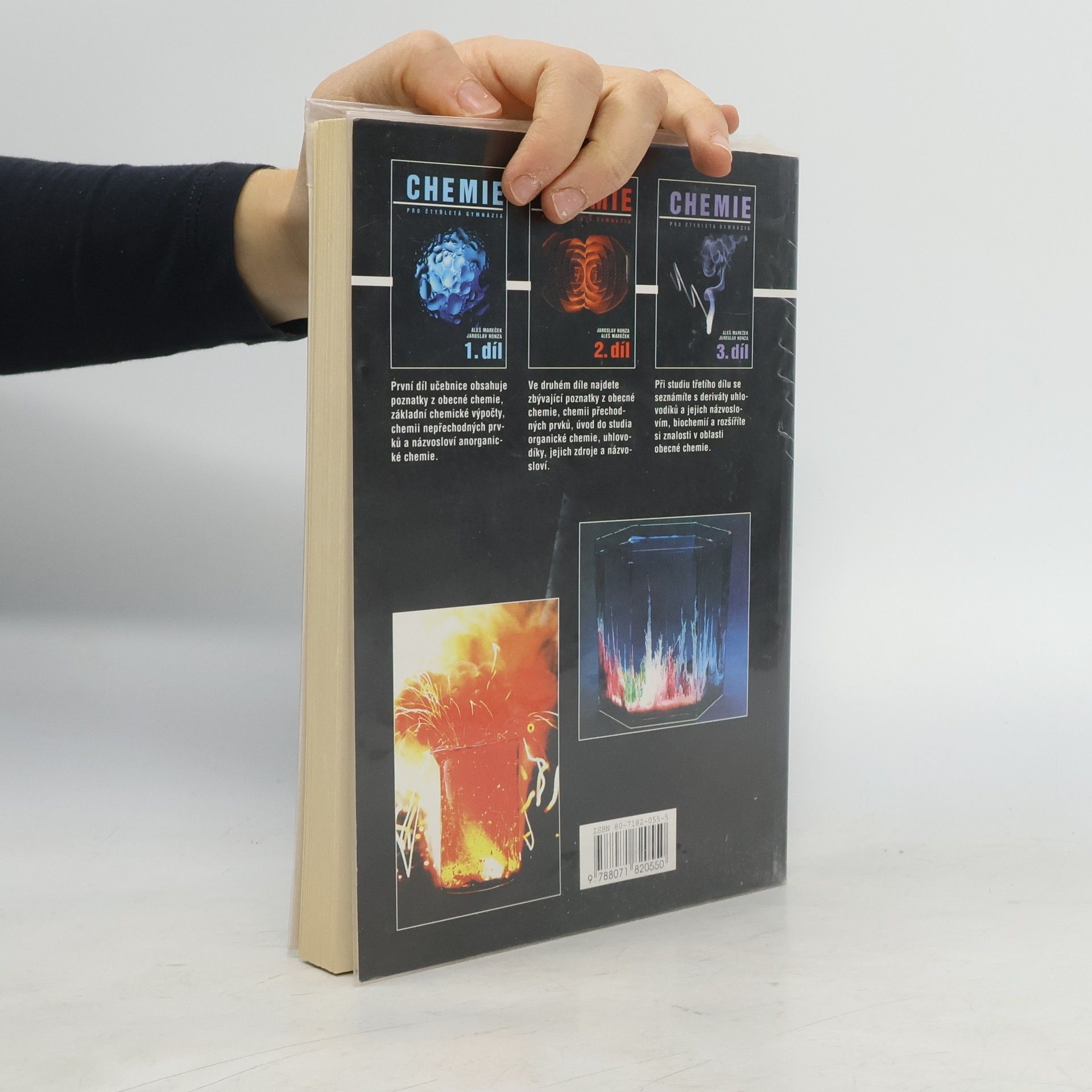 První díl učebnice určené studentům čtyřletých gymnázií. Kniha obsahuje poznatky z obecné chemie, základní chemické rovnice a výpočty, názvosloví anorg. chemie.