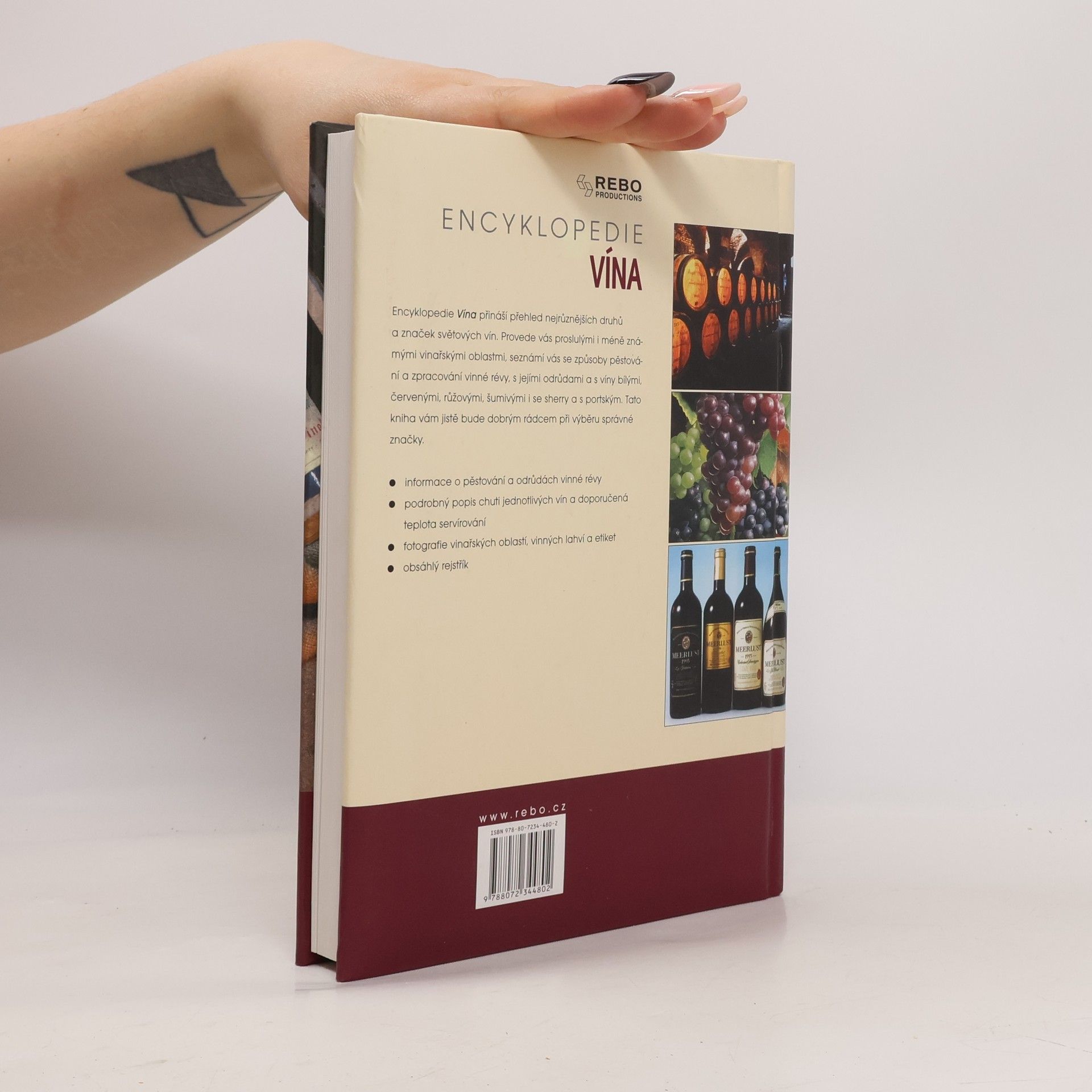 Encyklopedie Vína přináší přehled nejrůznějších druhů a značek světových vín. Provede vás proslulými i méně známými vinařskými oblastmi, seznámí vás se způsoby pěstování a zpracování vinné révy, s jejími odrůdami a s víny bílými, červenými, růžovými, šumivými i se sherry a s portským. Tato kniha vám jistě bude dobrým rádcem při výběru správné značky. . informace o pěstování a odrůdách vinné révy . podrobný popis chuti jednotlivých vín a doporučená teplota servírování . fotografie vinařských oblastÍ, vinných lahví a etiket . obsáhlý rejstřík