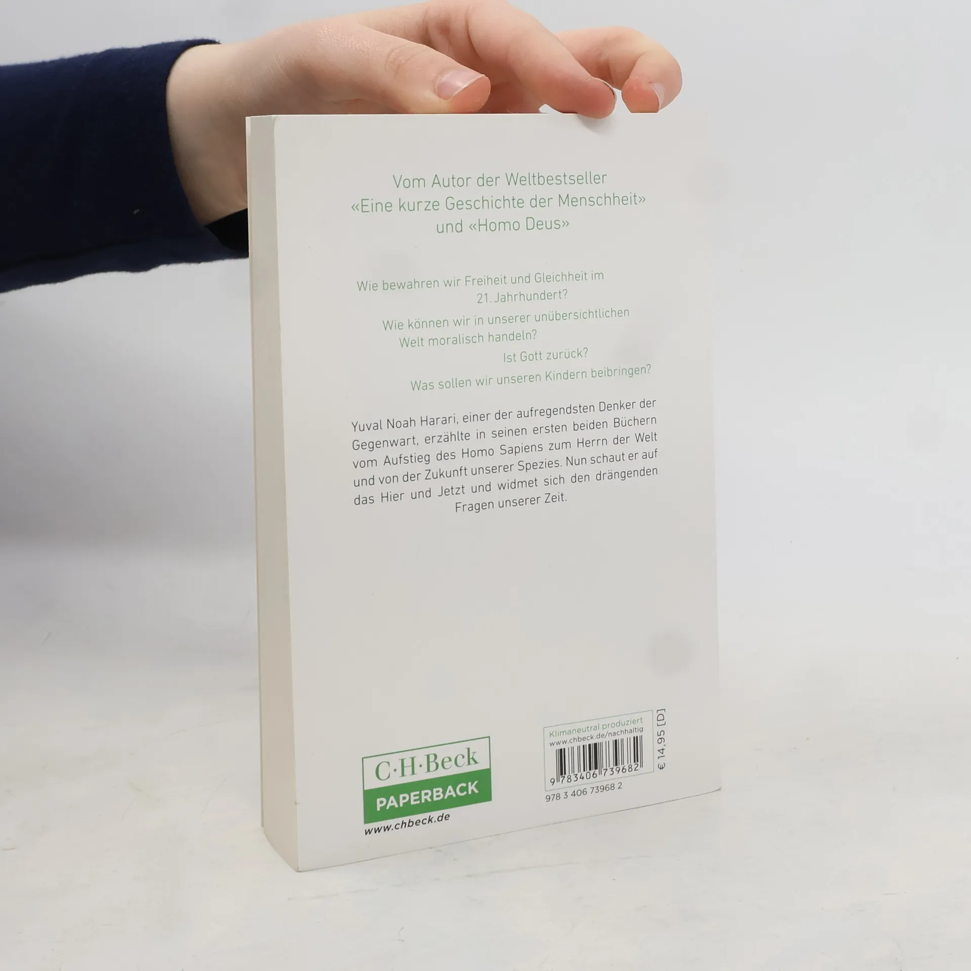 Was sollten wir unseren Kindern heute beibringen, damit sie für die Welt von morgen gerüstet sind? – Der Bestseller von Yuval Noah Harari Was sind die großen Herausforderungen, vor denen die Menschheit steht? Wer sind wir und was sollen wir mit unserem Leben anfangen? Seit Jahrtausenden fragt die Menschheit nach dem Sinn des Lebens. Doch jetzt setzen uns die ökologische Krise, die wachsende Bedrohung durch Massenvernichtungswaffen und der Aufstieg neuer disruptiver Technologien unter Zeitdruck. Irgendjemand wird darüber entscheiden müssen, wie wir die Macht nutzen, die künstliche Intelligenz und Biotechnologie bereit halten. Yuval Noah Harari will Menschen dazu anregen, sich an den großen Debatten unserer Zeit zu beteiligen.