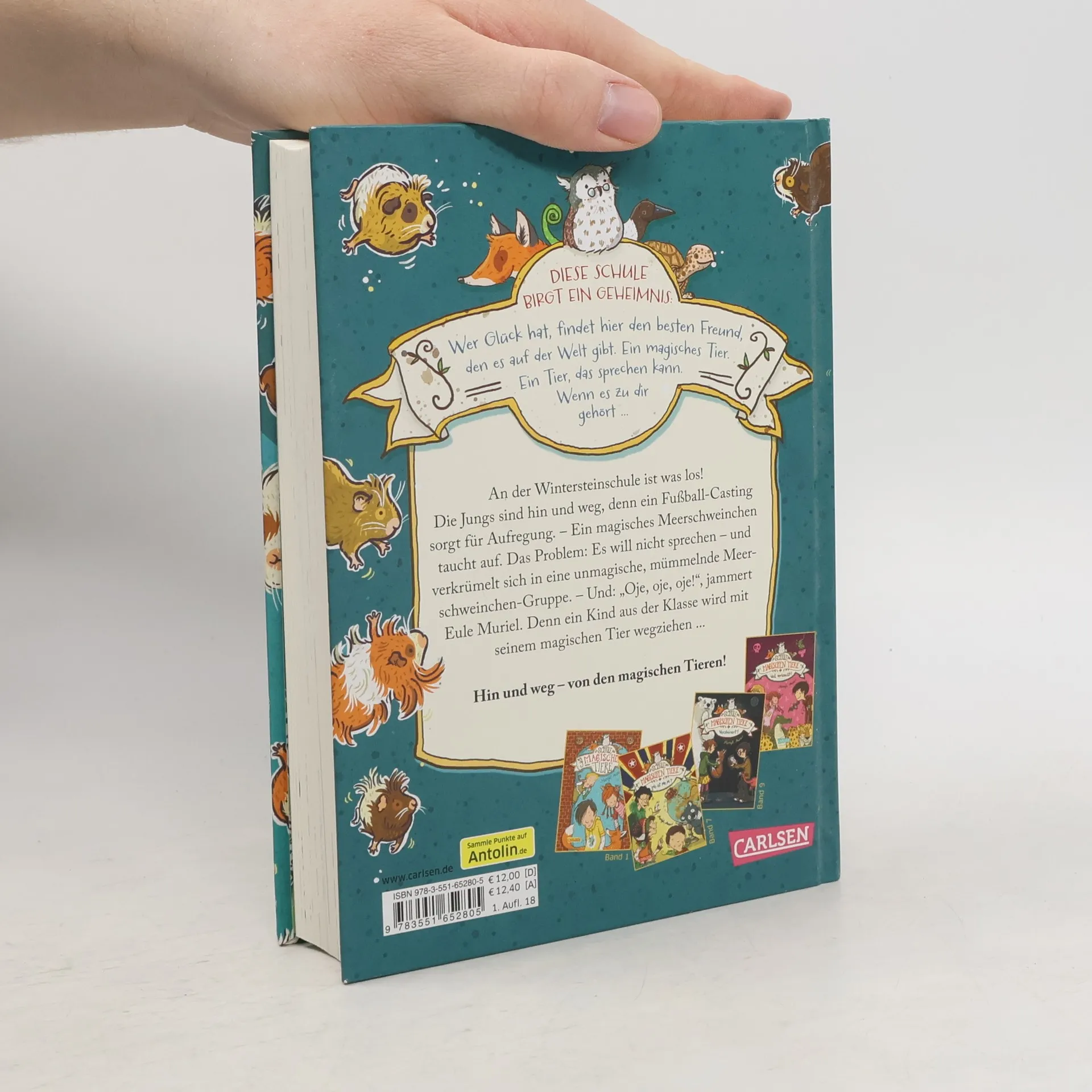 Jetzt kostenlos herunterladen – die App zur Serie! *** Wer in der Klasse wird heute ein magisches, sprechendes Tier erhalten? *** BAND 10: An der Wintersteinschule ist was los! Die Jungs sind hin und weg, denn ein Fußball-Casting sorgt für Aufregung. – Ein magisches Meerschweinchen taucht auf. Das Problem: Es will nicht sprechen – und verkrümelt sich in eine unmagische, mümmelnde Meerschweinchen-Gruppe. – Und: „Oje, oje, oje!“, jammert Eule Muriel. Denn ein Kind aus der Klasse wird mit seinem magischen Tier wegziehen ... *** *** DIE SCHULE DER MAGISCHEN TIERE: Diese Schule birgt ein Geheimnis! Wer Glück hat, findet hier den besten Freund, den es auf der Welt gibt. Ein magisches Tier. Ein Tier, das sprechen kann. Wenn es zu dir gehört ... *** Für die “Schule der magischen Tiere"-Fans wird es wieder spannend! Ein neues Abenteuer wartet – wie immer gibt es viele Bilder, viele kurze Kapitel und ganz viel Lesespaß! *** Der neue Band der Bestseller-Reihe – schon jetzt ein Kinderbuchklassiker!