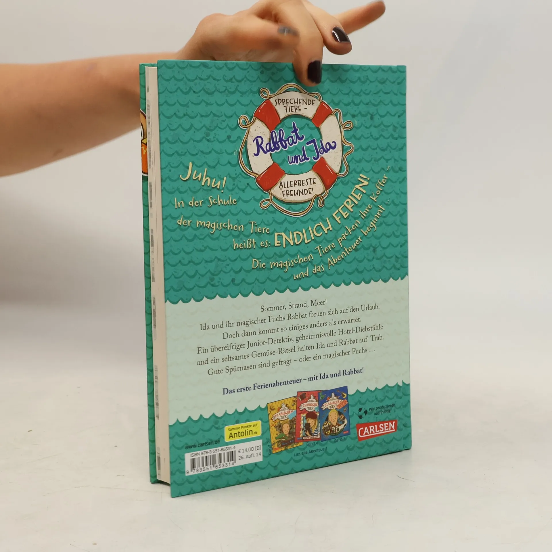 Auf in die Ferien - mit einem magischen, sprechenden Tier! *** Sommer, Strand, Meer! Ida und ihr magischer Fuchs Rabbat freuen sich auf den Urlaub. Doch dann kommt so einiges anders als erwartet. Ein übereifriger Junior-Detektiv, geheimnisvolle Hotel-Diebstähle und ein seltsames Gemüse-Rätsel halten Ida und Rabbat auf Trab. Gute Spürnasen sind gefragt – oder ein magischer Fuchs … *** DIE SCHULE DER MAGISCHEN TIERE - Endlich Ferien Band 1: In der Schule der magischen Tiere heißt es: Endlich Ferien! Die magischen Tiere packen ihre Koffer – und das Abenteuer beginnt … Ein spannender Ferienkrimi in kurzen Kapiteln - mit echtem magischem Tier. Viel Spaß mit dem ersten Ferienabenteuer der Bestseller-Reihe!