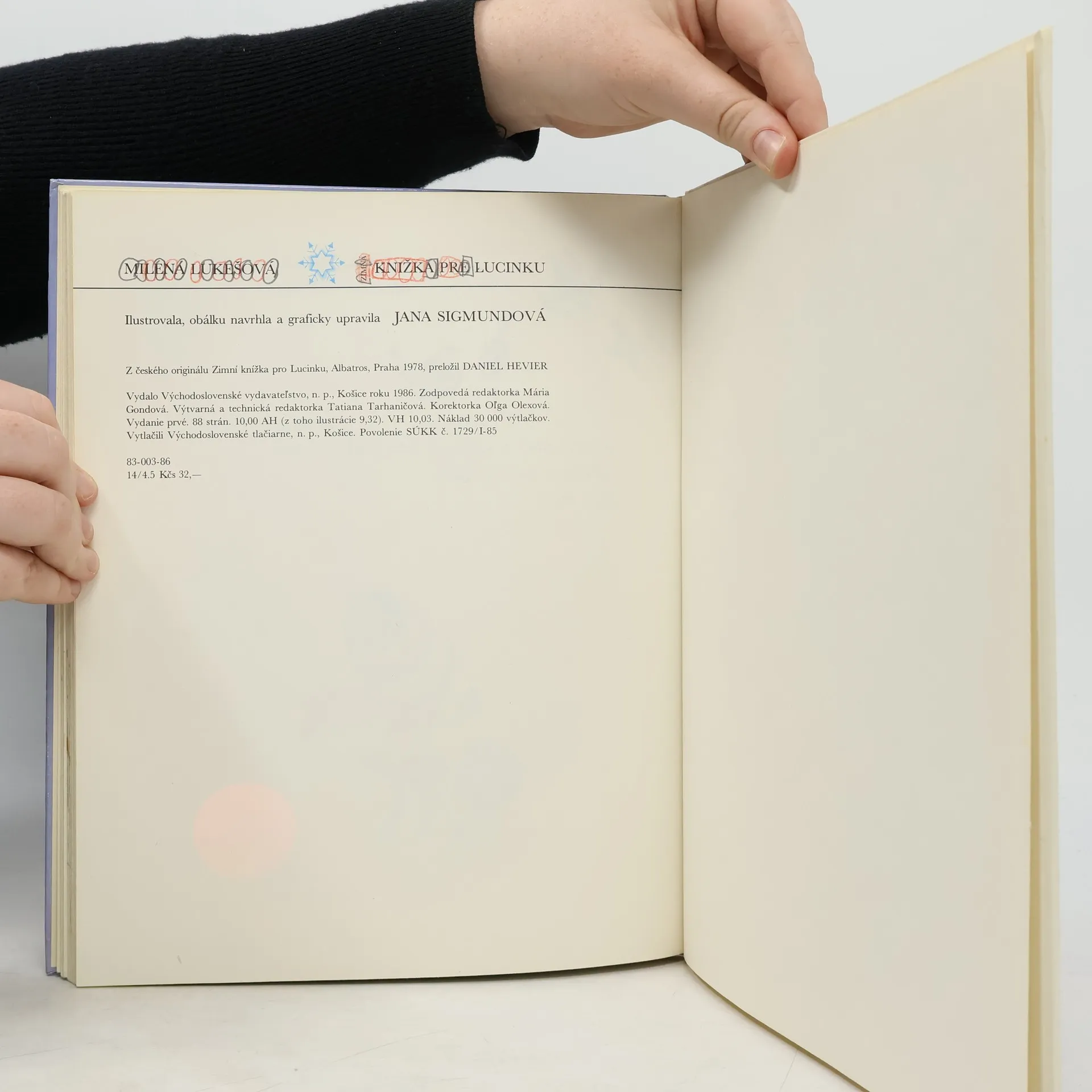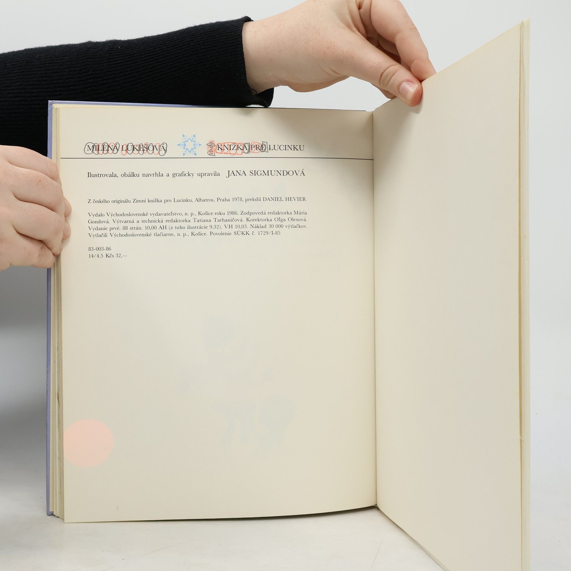 Veselé a zábavné príbehy malej Lucinky v zime. Cena knihy v čase vydania 32.- Kčs.