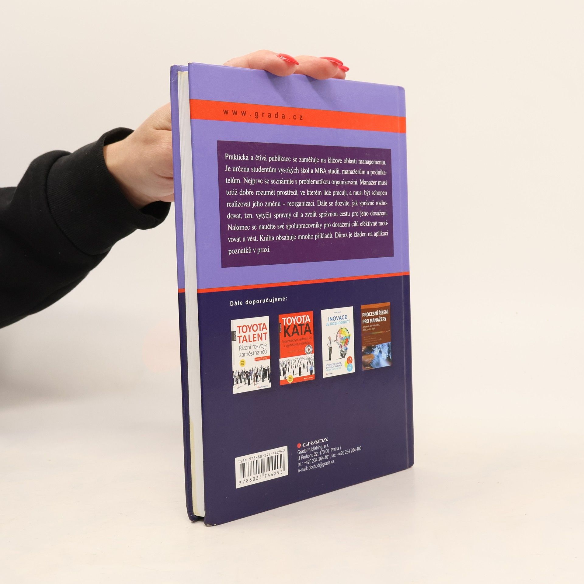 Praktická a čtivá publikace se zaměřuje na klíčové oblasti managementu. Je určena studentům vysokých škol a MBA studií, manažerům a podnikatelům. Nejprve se seznámíte s problematikou organizování. Manažer musí totiž dobře rozumět prostředí, ve kterém lidé pracují, a musí být schopen realizovat jeho změnu - reorganizaci. Dále se dozvíte, jak správně rozhodovat, tzn. určit cíl a zvolit správnou cestu pro jeho dosažení. Nakonec se naučíte efektivně motivovat a vést své spolupracovníky pro dosažení vytyčených cílů. Kniha obsahuje mnoho příkladů. Důraz je kladen na aplikaci poznatků v praxi.