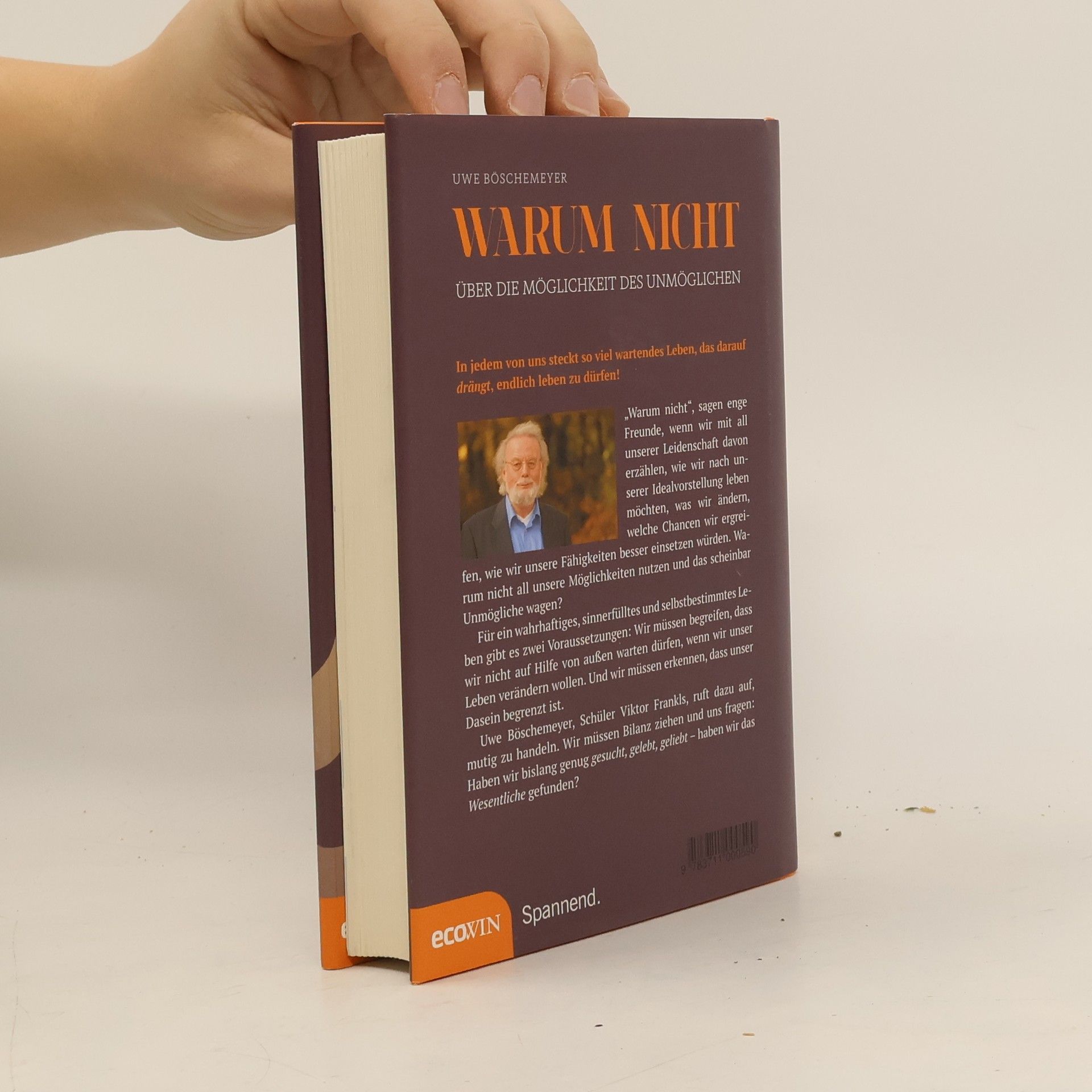 In jedem von uns steckt so viel wartendes Leben, das darauf drängt, endlich leben zu dürfen! „Warum nicht“, sagen enge Freunde, wenn wir mit all unserer Leidenschaft davon erzählen, wie wir nach unserer Idealvorstellung leben möchten, was wir ändern, welche Chancen wir ergreifen, wie wir unsere Fähigkeiten besser einsetzen würden. Warum nicht all unsere Möglichkeiten nutzen und das scheinbar Unmögliche wagen? Für ein wahrhaftiges, sinnerfülltes und selbstbestimmtes Leben gibt es zwei Voraussetzungen: Wir müssen begreifen, dass wir nicht auf Hilfe von außen warten dürfen, wenn wir unser Leben verändern wollen. Und wir müssen erkennen, dass unser Dasein begrenzt ist. Uwe Böschemeyer, Schüler Viktor Frankls, ruft dazu auf, mutig zu handeln. Wir müssen Bilanz ziehen und uns fragen: Haben wir bislang genug gesucht, gelebt, geliebt – haben wir das Wesentliche gefunden?