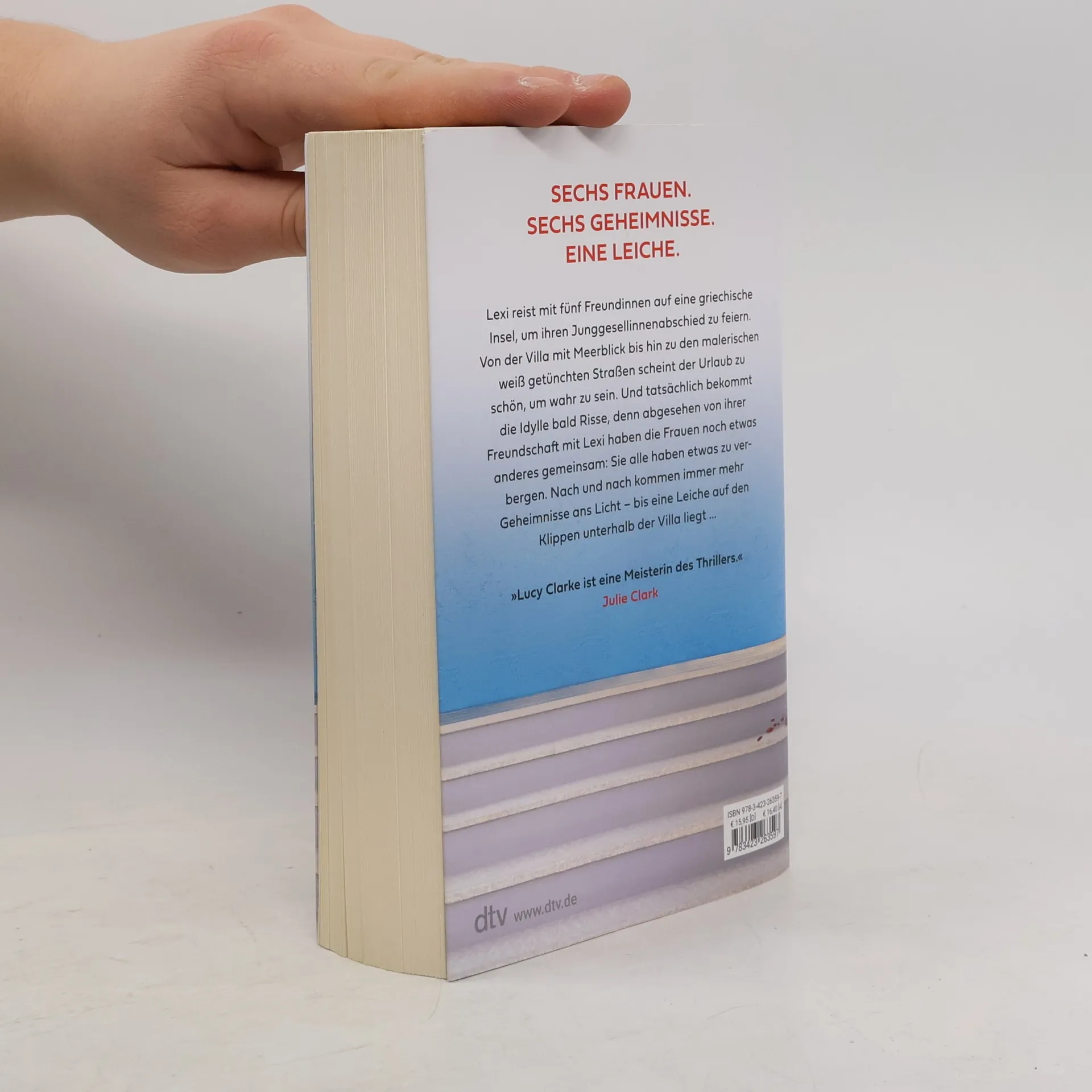 Sechs Frauen. Sechs Geheimnisse. Eine Leiche. Es sollte der perfekte Kurzurlaub werden: Lexi reist mit fünf Freundinnen auf eine griechische Insel, um ihren Junggesellinnenabschied zu feiern. Von der abgelegenen Villa mit Meerblick bis hin zu den malerischen Tavernen und weiß getünchten Straßen scheint der Urlaub zu schön, um wahr zu sein. Und tatsächlich bekommt die Idylle bald Risse, denn abgesehen von ihrer Freundschaft mit Lexi haben die Frauen nur eines gemeinsam: Sie alle haben etwas zu verbergen. Nach und nach kommen versteckte Absichten ans Licht, Geheimnisse werden enthüllt und die Masken fallen – bis eine Leiche auf den Klippen unterhalb der Villa liegt…