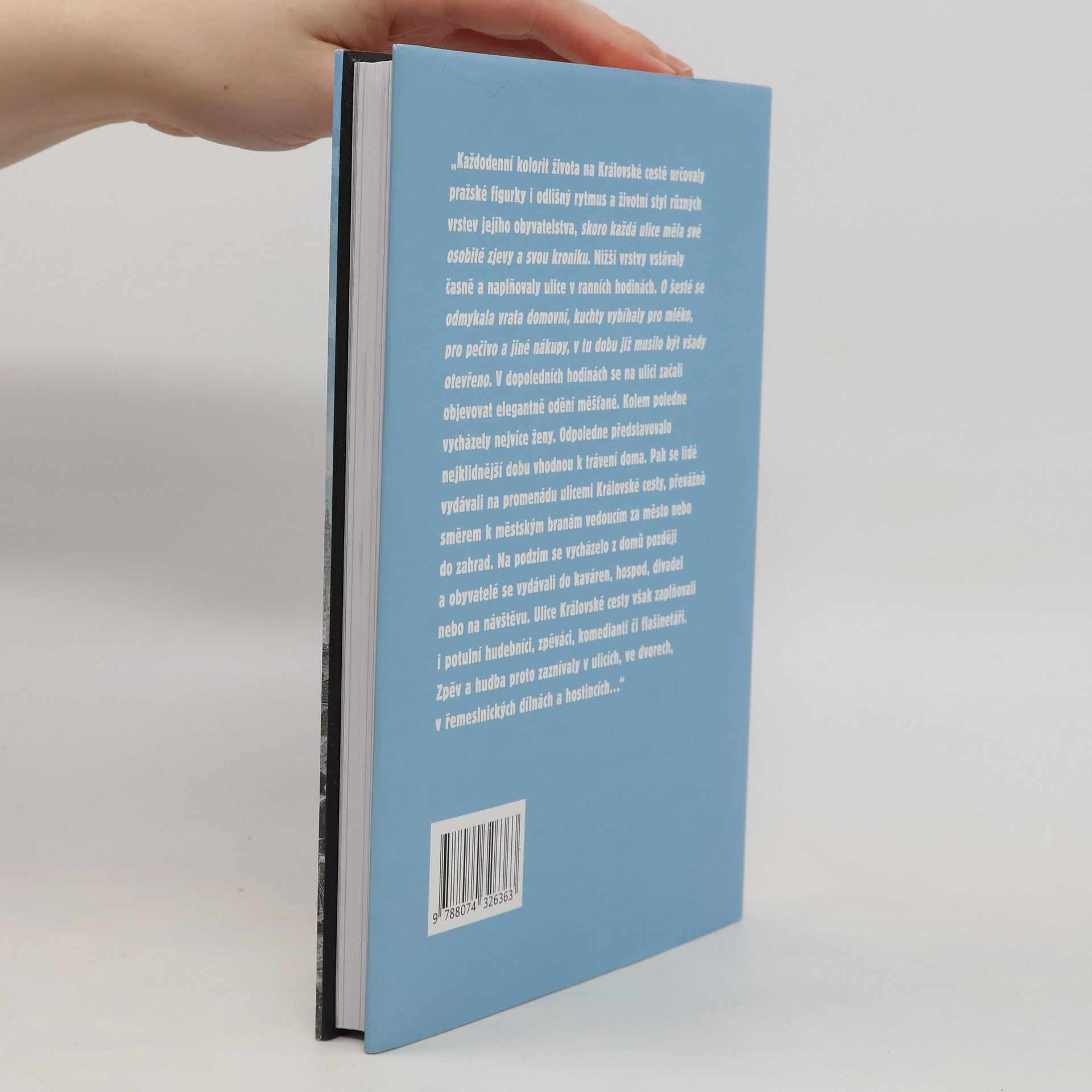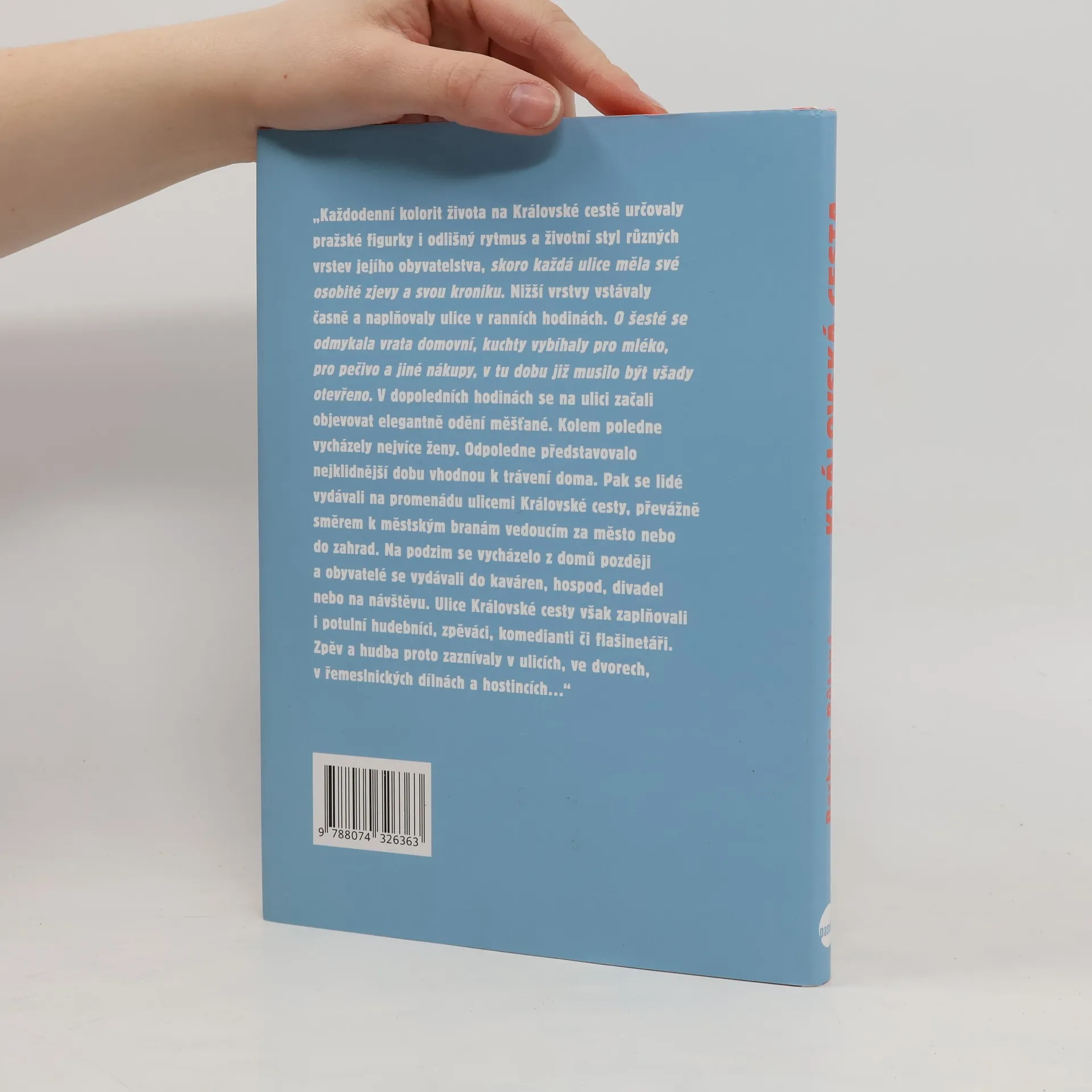 Pražská Královská cesta jako historická spojnice mezi královým měšťanským sídlem (královým dvorem) a sídlem reprezentativním (Pražským hradem) představuje ojedinělý architektonický i urbanistický celek a unikátní soubor stavebních slohů. Zahrnuje šlechtické paláce i měšťanské domy, v nichž vzkvétala řemesla, obchody, hostince nebo hospody. Kniha prostřednictvím starých fotografií, pohlednic, grafik a dalších materiálů představí zmizelou výstavbu, proměněná zákoutí, prostranství, průčelí či dvory a zaměří se na Královskou cestu jako na místo, v němž se potkával všední život, historická tradice, architektura a kulturní historie. Poprvé v historii bádání o Praze je téma popsáno nejen z hlediska umělecko-architektonického vývoje, ale také s ohledem na každodennost a zmizelý všední i sváteční život obyvatel staré Prahy.