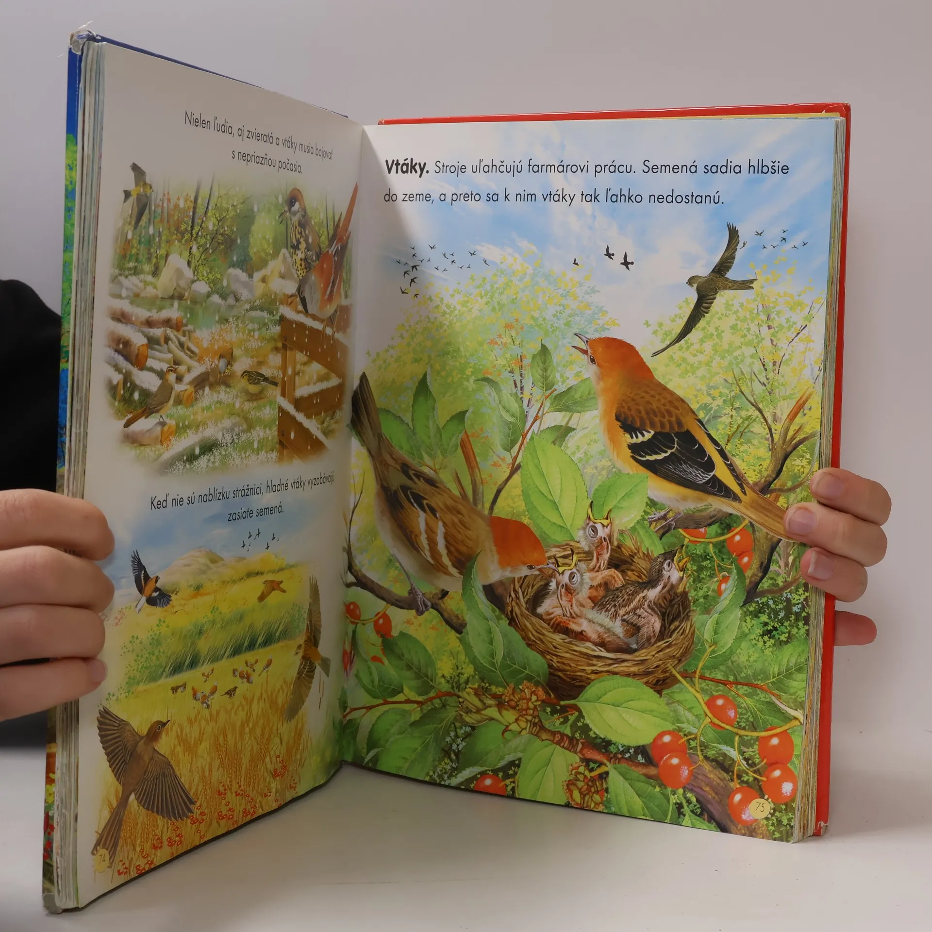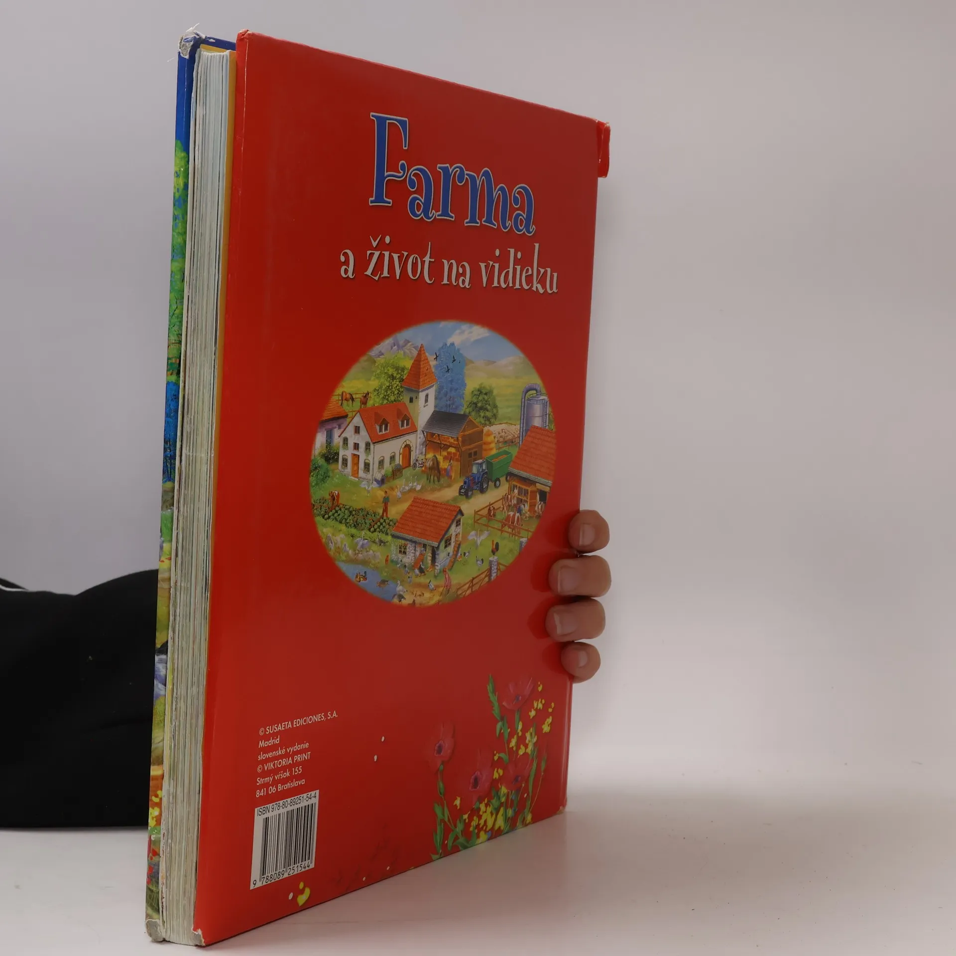 Prekrásne ilustrovaná kniha o živote ľudí a zvierat na farmách po celom svete. Kapitoly: Farma, Na farme, Kurín, Chov hydiny, Zlodejka sliepok, Jazierko na farme, Už sú tu !, Perie, Husi, Moriaky, Veselé Vianoce !, Domáce králiky, Pozor, poľovníci !, Chliev, Mliečne prasiatka, Plemená ošípaných, Pasenie oviec, Návrat oviec, Z ovce sa získava..., Prechádzka farmou, Veľká prekážka, Cesta do dediny, Z kozy sa využíva..., V horách, Zber mlieka, Z kravy sa získava..., Pozor, nebezpečie !, Trh, Deň na trhu, Strážca farmy, Rodina sa rozrastá, Mačky, Vtáky, Kačice, Zvieratá na všetko, Zviera, čo sa zatne ako somár, Najvytrvalejší ťahač vody, Mytologické kone, Najlepší priateľ človeka ?, Konská doprava, Šport a zábava, Konské plemená, Vitajte v stajni !, Mustangy, Chov dobytka v Amerike, Ťažné zvieratá, Ručná orba, Mechanická orba, Sejba, Mlátenie obilia v minulosti, Kombajn, Poľnohospodárske stroje, Cukor, Zemiaky, Zber olív, Slnečnica, Kukurica, Ako sa pečie chlieb ?, Vinobranie, Šliapanie hrozna, Záhradka, Klíčenie, Urob si pokus so semienkami, Daždivé dni, Využitie lesa, Zima sa dá vhodne využiť, Zvieratá bez domova ?, Ochrana úrody, Pesticídy, Prírodné katastrofy, Škodcovia, Mikroklíma, Druhy ovocia, Ovocné stromy, Konzervovanie, Kakao, čaj, a káva, Včely a med, Včelárstvo.