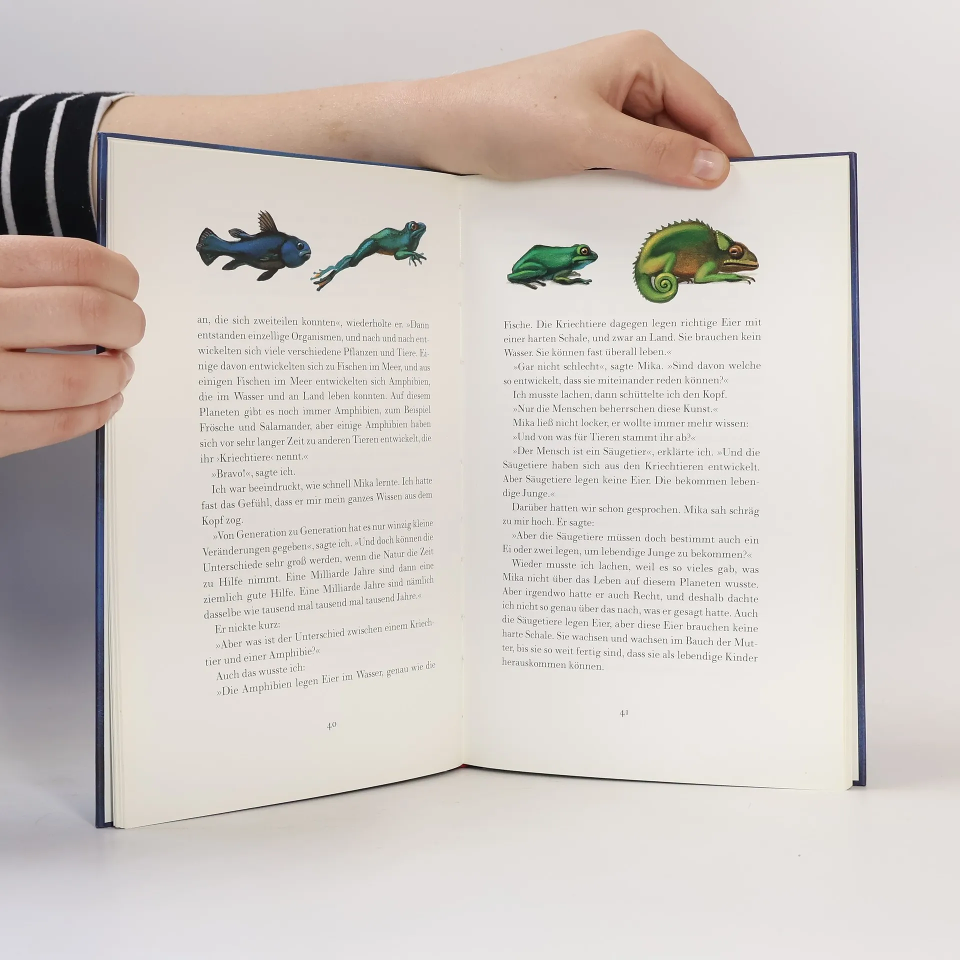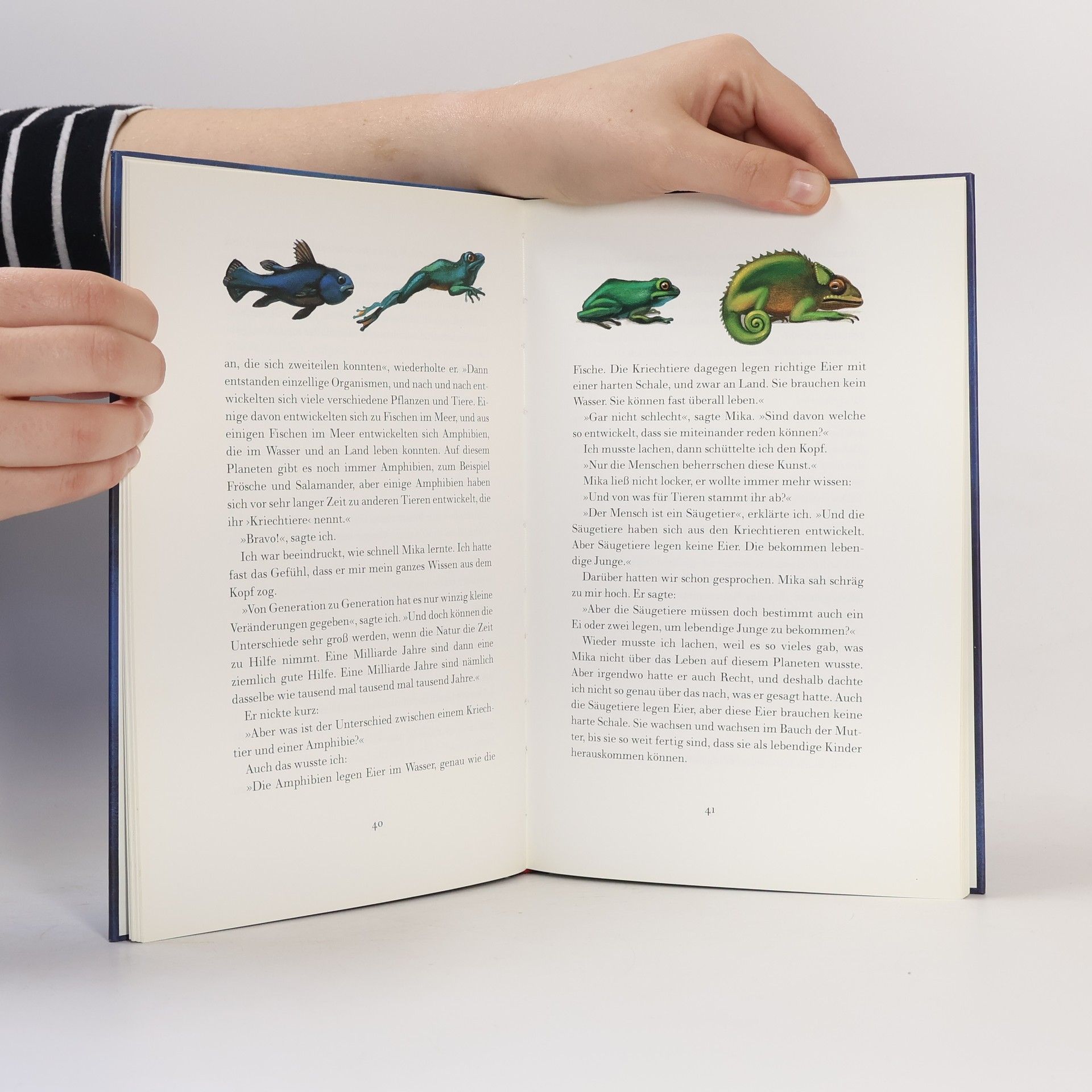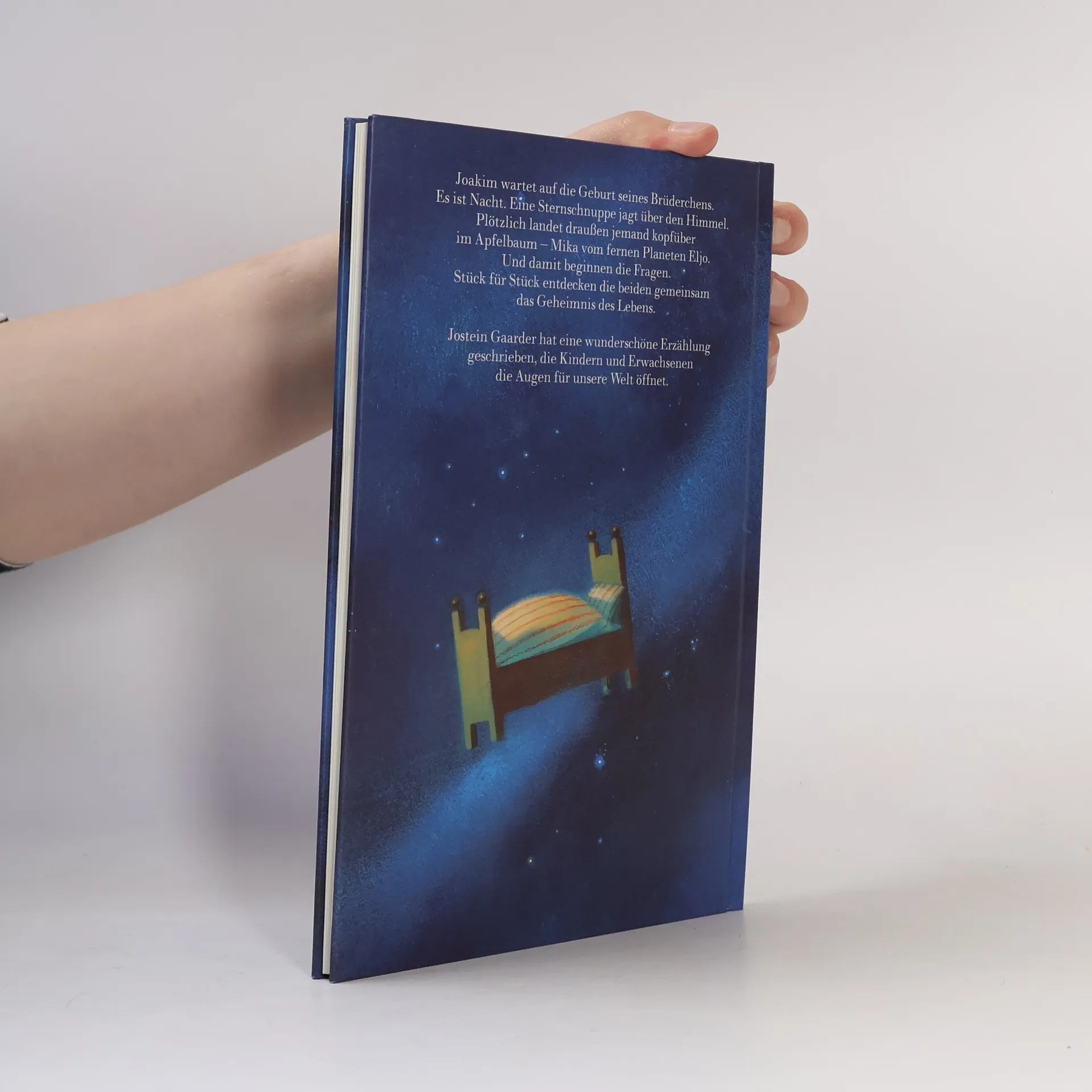 Joakim wartet auf sein neues Brüderchen. Mama und Papa sind unterwegs ins Krankenhaus. Es ist noch Nacht. Eine Sternschnuppe jagt über den Himmel. Dann plötzlich landet bei Joakim jemand kopfüber im Apfelbaum. Es ist Mika vom fernen Planeten Eljo, der sich freut, endlich einen bewohnten Stern gefunden zu haben. Aber als Joakim ihm vom Baum hilft, beginnen die Schwierigkeiten. Eigentlich hat Joakim immer gedacht, dass er ganz gut über seine Welt Bescheid wüsste. Aber wenn er etwas erklärt, versteht ihn Mika nicht. Warum landet Mika mit dem Kopf nach unten im Apfelbaum, wenn er auf Eljo nach oben gestartet ist und sich unterwegs nicht gedreht hat? Aus der ersten Frage entstehen immer mehr neue, und langsam begreifen Joakim und Mika, woher alles Leben auf der Welt kommt und wie es sich entwickelt hat. Gemeinsam sind sie tief hinabgetaucht in die spannende Geschichte des Lebens. Am Ende sind Joakim und Mika wie Brüder, die einander völlig vertraut sind. Gemeinsam haben sie Stück für Stück das Geheimnis des Lebens verstanden.