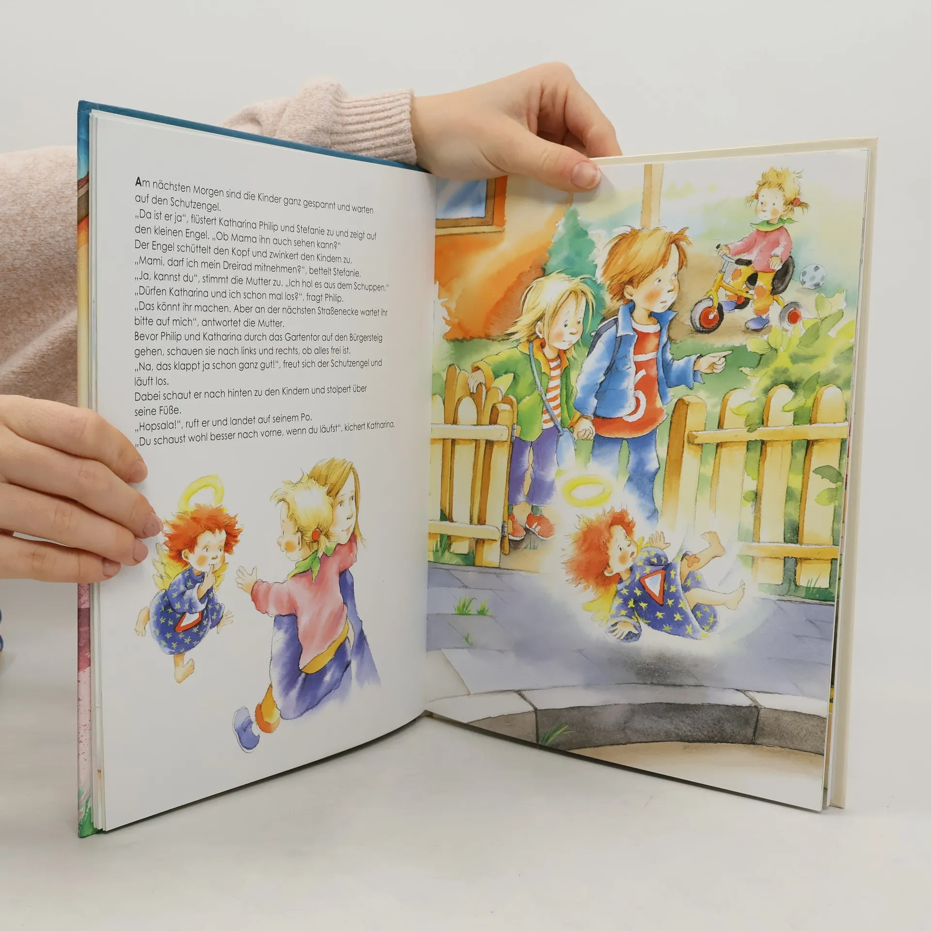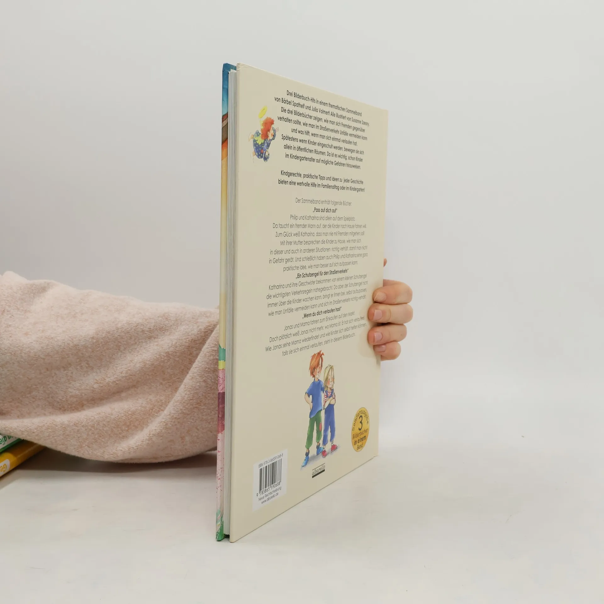 Drei Bilderbuch-Hits in einem thematischen Sammelband von Bärbel Spathelf und Julia Volmert, illustriert von Susanne Szesny, thematisieren wichtige Verhaltensweisen für Kinder. Die Geschichten zeigen, wie man sich Fremden gegenüber verhält, Unfälle im Straßenverkehr vermeidet und was zu tun ist, wenn man sich verläuft. Besonders mit dem Schulbeginn bewegen sich Kinder zunehmend allein in öffentlichen Räumen, weshalb es entscheidend ist, sie frühzeitig auf mögliche Gefahren hinzuweisen. Der Sammelband umfasst folgende Geschichten: „Pass auf dich auf“: Philip und Katharina sind allein auf dem Spielplatz, als ein fremder Mann auftaucht, der sie nach Hause fahren möchte. Katharina weiß, dass man niemals mit Fremden mitgehen soll. Zu Hause besprechen die Kinder mit ihrer Mutter, wie man in solchen Situationen richtig handelt und entwickeln eine praktische Idee, um besser auf sich aufzupassen. „Ein Schutzengel für den Straßenverkehr“: Katharina und ihre Geschwister lernen von einem kleinen Schutzengel die wichtigsten Verkehrsregeln. Da der Schutzengel nicht immer über sie wachen kann, erfahren sie, wie sie selbst aufpassen und Unfälle vermeiden können. „Wenn du dich verlaufen hast“: Jonas und seine Mama gehen zum Markt, doch plötzlich weiß Jonas nicht mehr, wo sie ist. Die Geschichte zeigt, wie Jonas seine Mama wiederfindet und wie Kinder sich selbst helfen können, wenn sie sich verlaufen.
