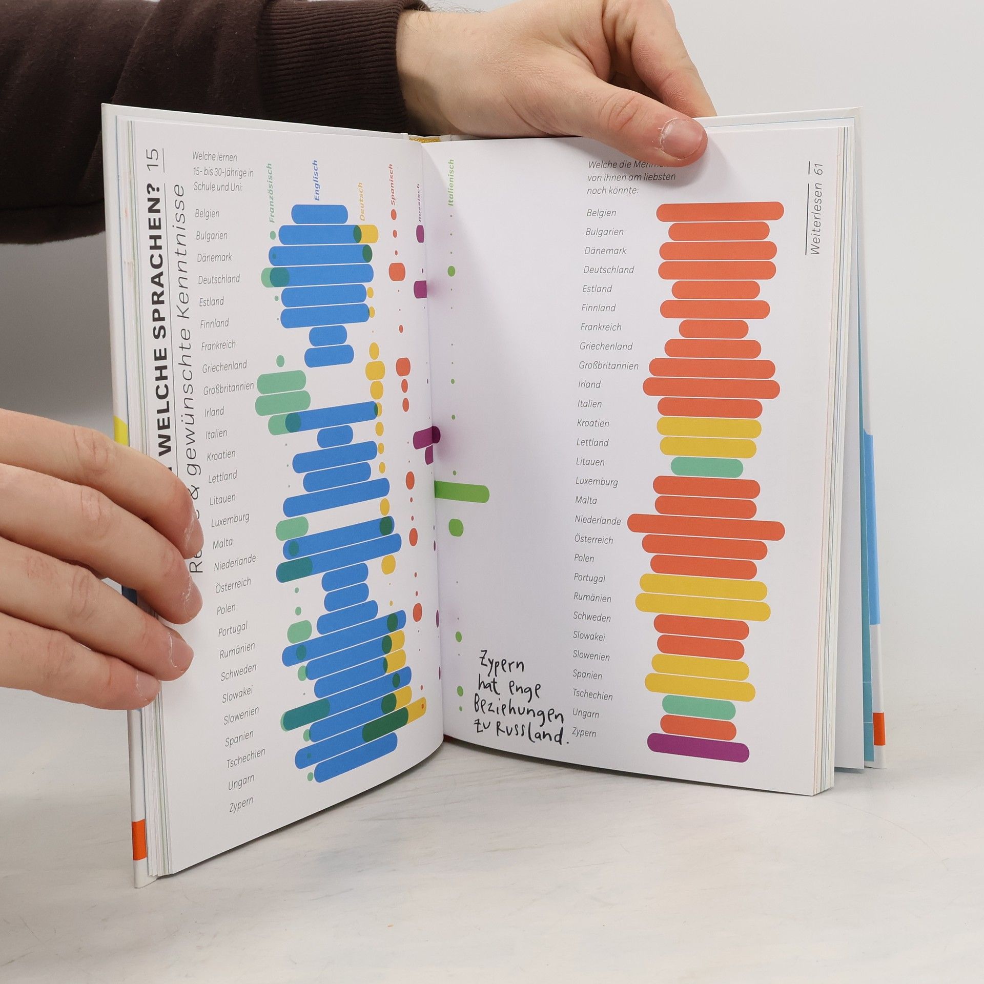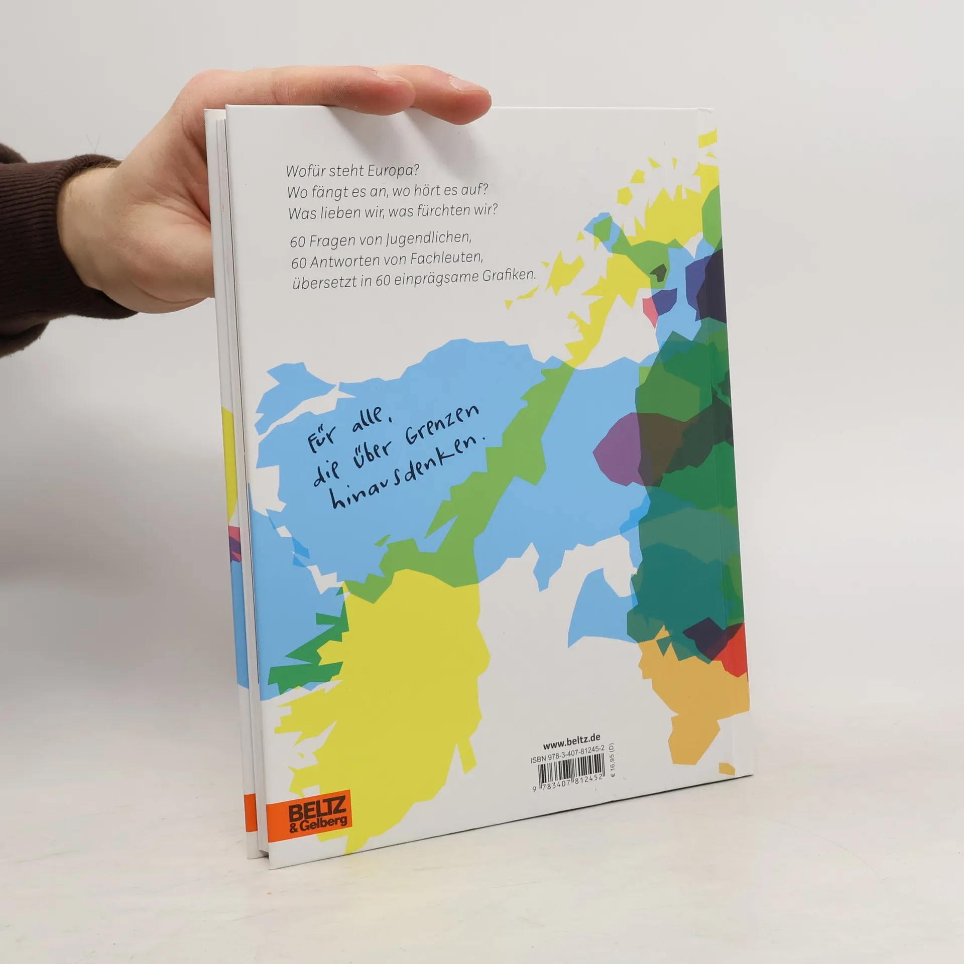 Wofür steht Europa? Wo fängt es an, wo hört es auf? Was lieben wir, was fürchten wir? Hier geht es um mehr als die EU, Ländergrenzen oder Wirtschaft, es geht auch um Kontroverses wie Krieg und Populismus oder Alltägliches wie Sport, Essen oder Musik. 60 Fragen von Jugendlichen, 60 Antworten von Fachleuten, übersetzt in einprägsame Grafiken. Für alle, die über Grenzen hinausdenken.