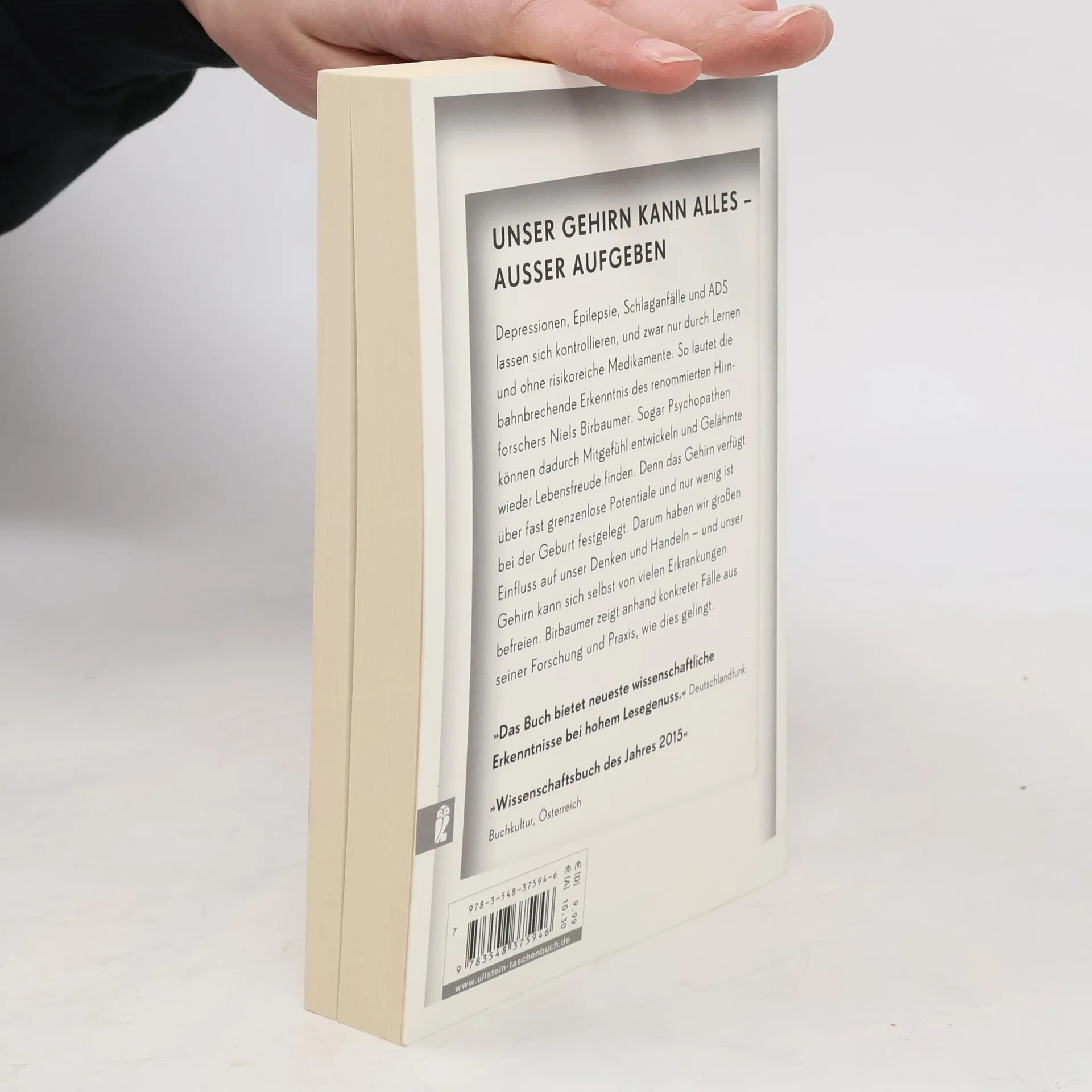 Depressionen, Epilepsie, Schlaganfälle und ADS lassen sich kontrollieren, und zwar nur durch Lernen und ohne risikoreiche Medikamente. So lautet die bahnbrechende Erkenntnis des renommierten Hirnforschers Niels Birbaumer. Denn das Gehirn verfügt über fast grenzenlose Potentiale und gleicht bei der Geburt einer Tabula rasa: Nur wenig ist festgelegt, das meiste wird geformt. Darum haben wir großen Einfluss auf unser Denken und Handeln — und unser Gehirn kann sich selbst aus dem Sumpf seiner Erkrankungen ziehen. „Wissenschaftsbuch des Jahres 2015“, Buchkultur, Österreich