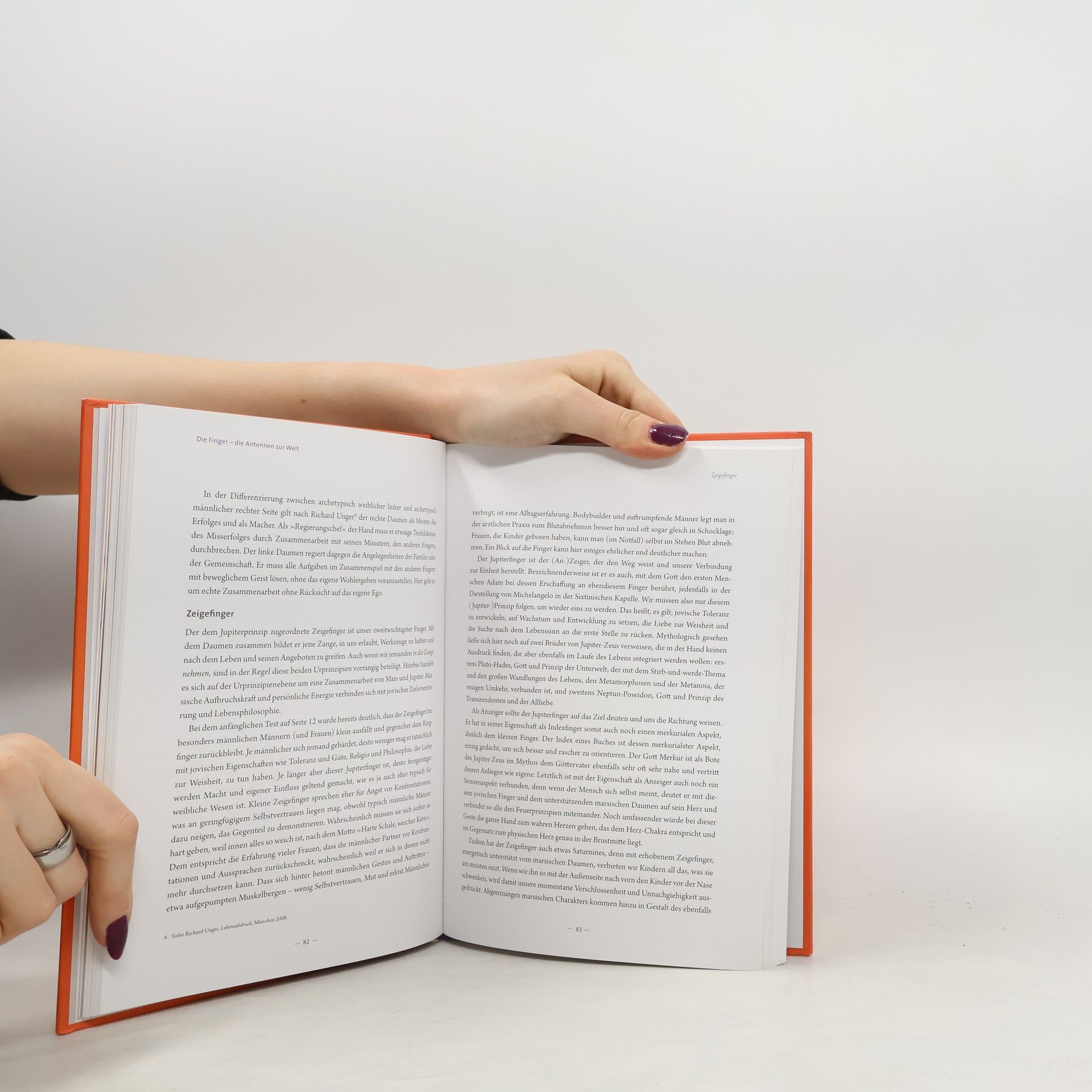 Wer möchte nicht sich selbst erkennen und Verborgenes über andere erfahren? Also vom Sichtbaren auf das Unsichtbare schließen? Nahezu unverfälscht Auskunft geben die Hände, etwas versteckter die Füße. Beide führen uns auf die Spuren der Seele. Die Autoren schöpfen ihre Erkenntnisse der Hand- und der Fuß-Lesekunst aus der Erfahrungsmedizin, der ägyptischen Tradition und aus persönlichen Beobachtungen in der praktischen Arbeit mit Patienten. Das Buch trägt eine Fülle von überliefertem und neuem Wissen über Hände und Füße zusammen und stellt spannende Zusammenhänge zum Leben ihrer Besitzer her. Hände zeigen unser Verhältnis zur Welt, Füße unser Verständnis von uns selbst. So erklären die Autoren etwa die Zusammenhänge von Hand- und von Fußformen gemäß der Urprinzipien und der Elemente, oder sie deuten die Längen von Fingern und Zehen ebenso wie deren Ausrichtung. Selbsterkenntnis findet mittels der Urprinzipien- und der Elemente-Lehre statt, also auf persönlicher und seelischer Ebene.