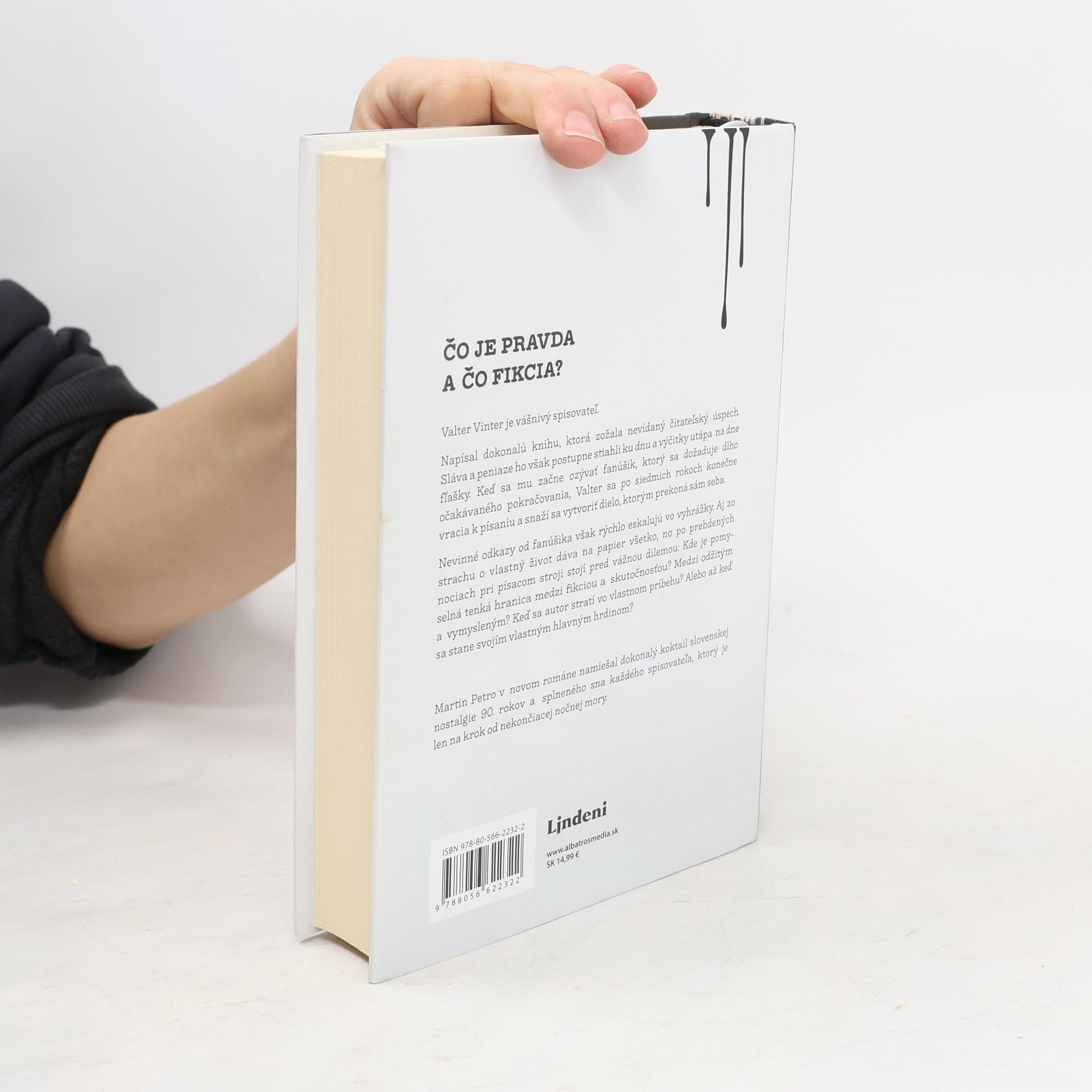 Čo je pravda a čo fikcia? Napínavý triler z pera slovenského autora. Čo je pravda a čo fikcia? Valter Vinter je vášnivý spisovateľ. Napísal dokonalú knihu, ktorá zožala nevídaný čitateľský úspech. Sláva a peniaze ho však postupne stiahli ku dnu. Výčitky utápa na dne fľašky, keď sa mu začne ozývať fanúšik, ktorý sa dožaduje dlho očakávaného pokračovania. Valter sa po siedmich rokoch konečne vracia k písaniu a snaží sa vytvoriť dielo, ktorým prekoná sám seba. Nevinné odkazy však rýchlo eskalujú vo vyhrážky. Aj zo strachu o vlastný život dáva na papier všetko, no po prebdetých nociach pri písacom stroji stojí pred vážnou dilemou: Kde je pomyselná tenká hranica medzi fikciou a skutočnosťou? Medzi odžitým a vymysleným? Keď sa autor stratí vo vlastnom príbehu? Alebo až keď sa stane svojím vlastným hlavným hrdinom? Martin Petro v novom románe namiešal dokonalý koktail slovenskej nostalgie 90. rokov a splneného sna každého spisovateľa, ktorý je len na krok od nekončiacej nočnej mory.