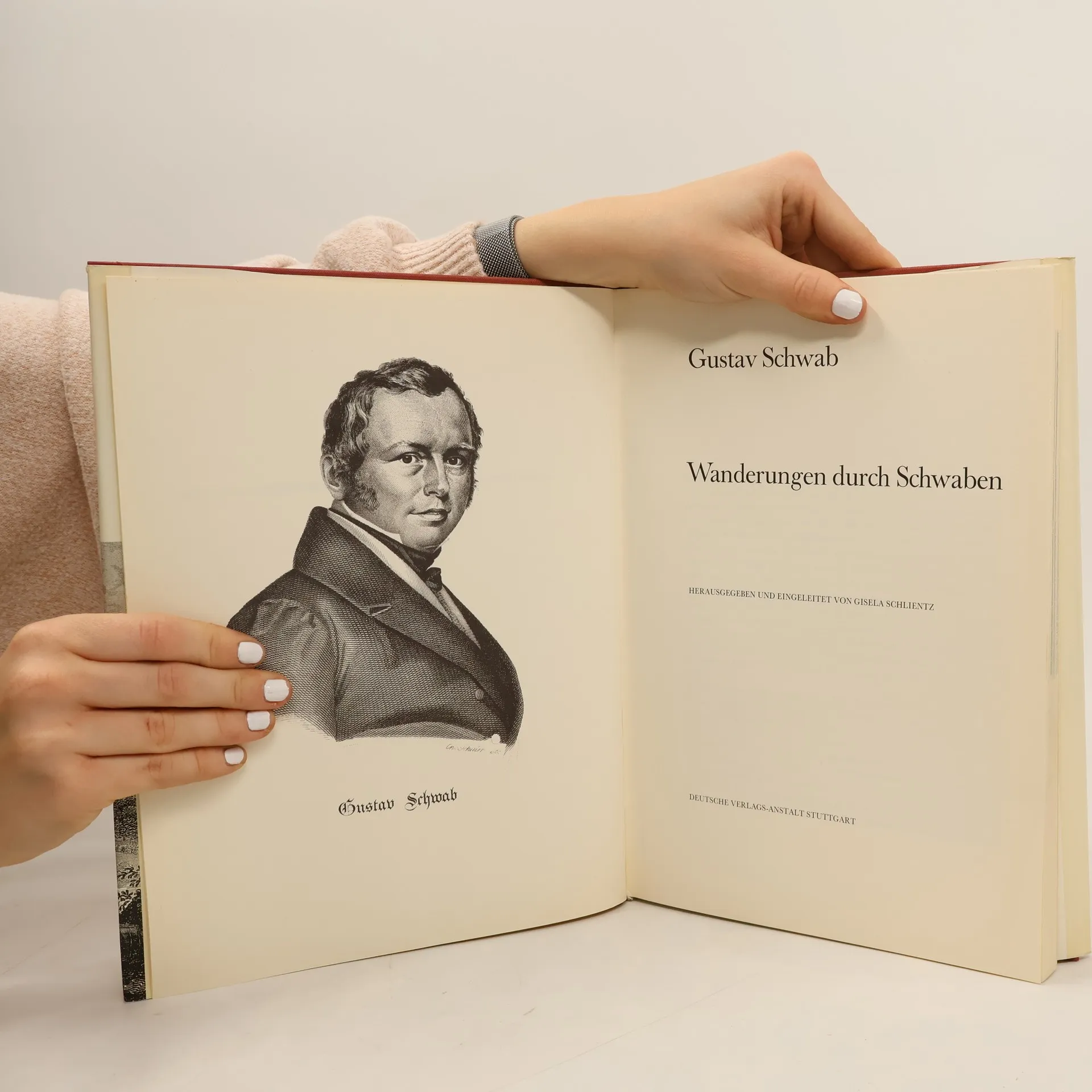 Gustav Schwab: Wanderungen durch Schwaben. Mit 30 Stahlstichen Edition Holzinger. Taschenbuch Berliner Ausgabe, 2017 Durchgesehener Neusatz mit einer Biographie des Autors bearbeitet und eingerichtet von Michael Holzinger Erstdruck: Leipzig, Wiegand, 1837. Inhaltsverzeichnis Wanderungen durch Schwaben Vorwort Erste Reise: Das Neckartal von Cannstatt bis Heidelberg Cannstatt mit dem Rosenstein und Stuttgart Marbach Kloster Maulbronn Heilbronn mit Gotzens Turm Weinsberg und die Weibertreu Wimpfen am Berg und im Tal Gundelsheim, Horneck und Guttenberg Das Schwalbennest bei Neckarsteinach Heidelberg Zweite Reise: Die Alb und Mittelschwaben Das Schlochen Bronnen im Donautale Blaubeuren Hohenstaufen und Rechberg Der Reienstein bei Reidlingen Urach Schlochen Lichtenstein Die Nebelhohle Burg Hohenzollern Haigerloch Tubingen Esslingen Dritte Reise: Der Schwarzwald Kloster Hirsau Der Wasserfall bei Triberg Die Holle Freiburg im Breisgau Badenweiler Forbach im Murgtal Das alte Schlo Baden Vierte Reise: Der Bodensee und das Hegau Lindau mit dem Obersee und Gebirge Der Untersee mit Konstanz Hohentwiel und das Hegau Biographie Herausgeber der Reihe: Michael Holzinger Reihengestaltung: Viktor Harvion Umschlaggestaltung unter Verwendung des Bildes: O. F. Strodtbeck, Tubingen vom Osten (Ausschnitt), um 1820 Gesetzt aus der Minion Pro, 11 pt.