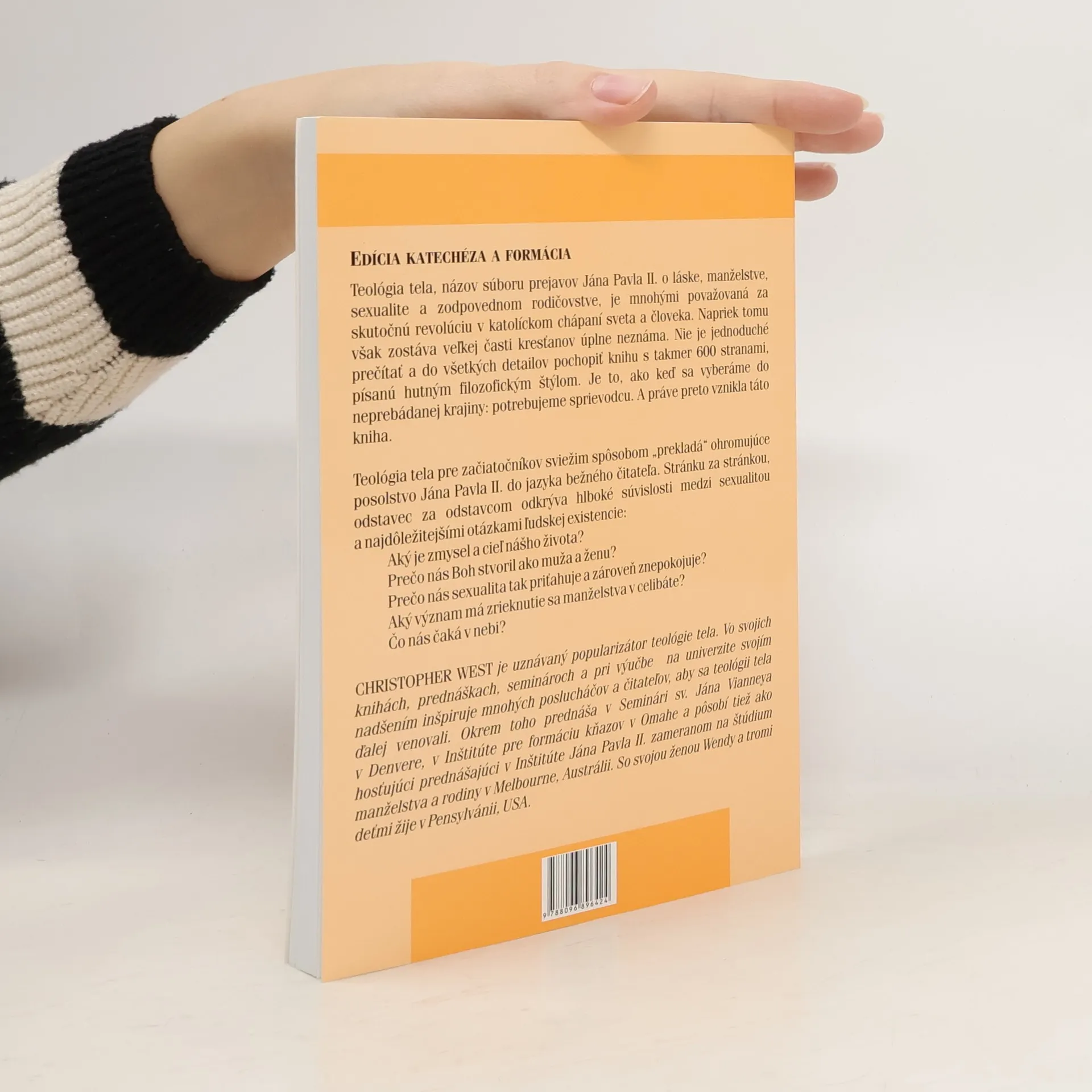 Teológia tela, názov súboru prejavov Jána Pavla II. o láske, manželstve, sexualite a zodpovednom rodičovstve, je mnohými považovaná za skutočnú revolúciu v katolíckom chápaní sveta a človeka. Napriek tomu zostáva veľkej časti kresťanom úplne neznáma. Nie je je jednoduché prečítať a do všetkých detailov pochopiť knihu s takmer 600 stranami, písanú hutným filozofickým štýlom. Je to ako keď sa vyberáme do neprebádanej krajiny: potrebujeme sprievodcu. A práve preto vznikla táto kniha. Teológia tela pre začiatočníkov sviežim spôsobom "prekladá" ohromujúce posolstvo Jána Pavla II. do jazyka bežného čitateľa. Stránku za stránkou, odstavec za odstavcom odkrýva hlboké súvislosti medzi sexualitou a najdôležitejšími otázkami ľudskej existencie: Aký je zmysel a cieľ nášho života? Prečo nás Boh stvoril ako muža a ženu? Prečo nás sexualita tak priťahuje a zároveň znepokojuje? Aký význam má zrieknutie sa manželstva v celibáte?