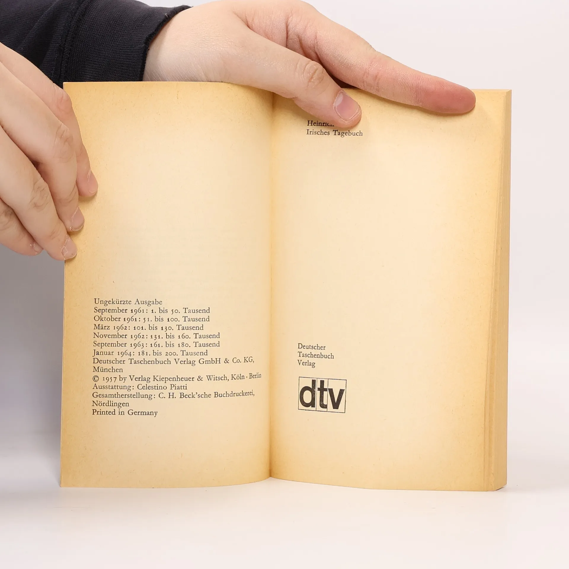 Eine Reise nach Irland: Heinrich Böll stattete mit diesen Aufzeichnungen den Dank ab an eine Landschaft und ihre Menschen, denen er sich seit seinem ersten Besuch auf der Insel im Jahr 1954 wahlverwandtschaftlich verbunden fühlte. In der ›Stuttgarter Zeitung‹ heißt es: »Das Geheimnis dieses Buches, des liebenswertesten Buches von Heinrich Böll, ist, daß kaum ein Wort über die verzwickte Ökonomie und die noch verzwicktere Geschichte dieses kleinen Staates gesagt wird und daß dennoch das ganze Irland in diesem Tagebuch eingefangen zu sein scheint.« Und für Marcel Reich-Ranicki ist es »ein verstecktes Deutschlandbuch, denn mit seinen Reisenotizen strebt Böll eine mittelbare Kritik der einheimischen Verhältnisse an: Irland wird immer wieder als Gegensatz zur Bundesrepublik betrachtet«. Das legendäre allererste dtv-Buch - seit 1961 ununterbrochen lieferbar!