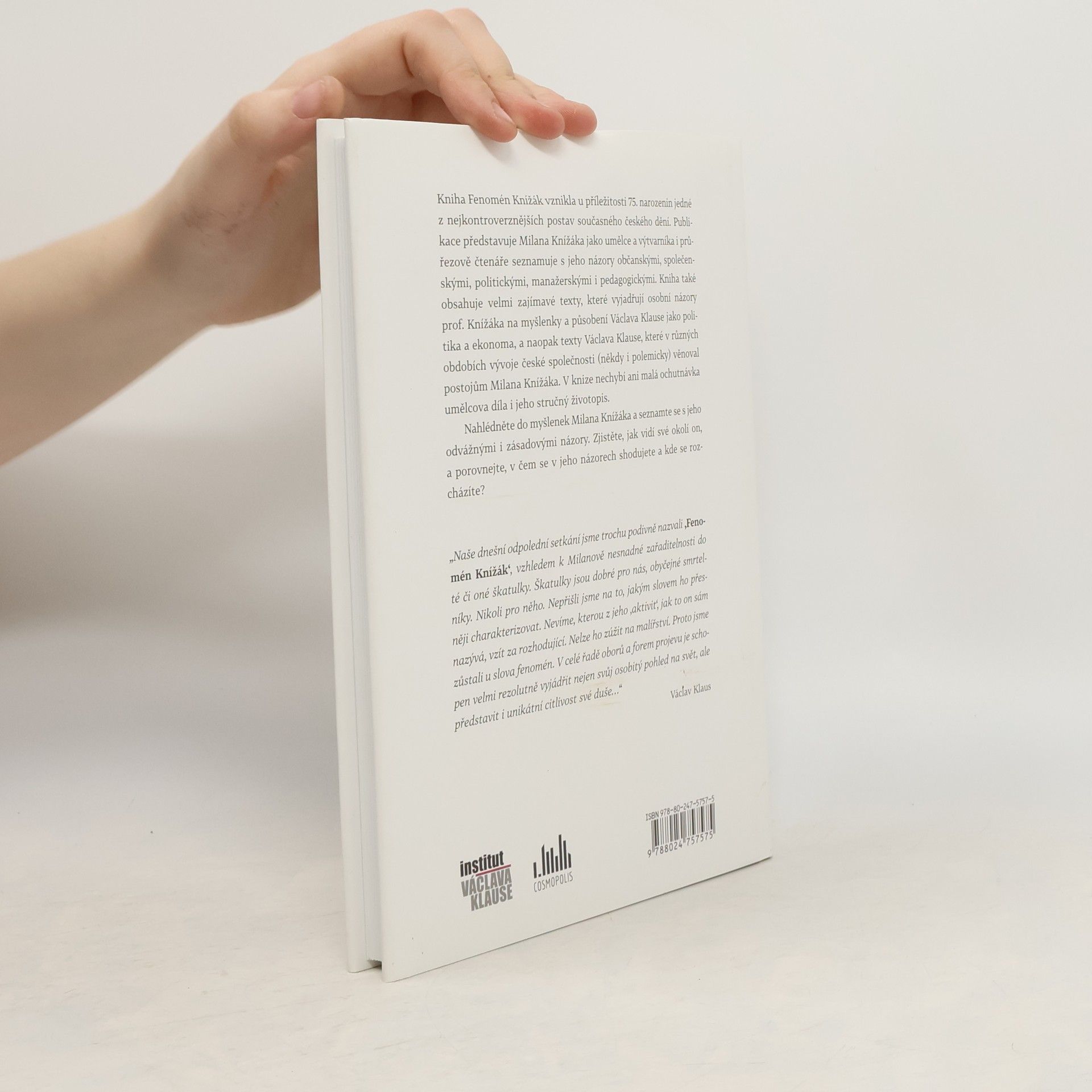 Kniha Fenomén Knížák vznikla u příležitosti 75. narozenin jedné z nejkontroverznějších postav současného českého dění. Publikace představuje Milana Knížáka jako umělce a výtvarníka i průřezově čtenáře seznamuje s jeho názory občanskými, společenskými, politickými, manažerskými i pedagogickými. Kniha také obsahuje velmi zajímavé texty, které vyjadřují osobní názory prof. Knížáka na myšlenky a působení Václava Klause jako politika a ekonoma, a naopak texty Václava Klause, které v různých obdobích vývoje české společnosti (někdy i polemicky) věnoval postojům Milana Knížáka. V knize nechybí ani malá ochutnávka umělcova díla i jeho stručný životopis.