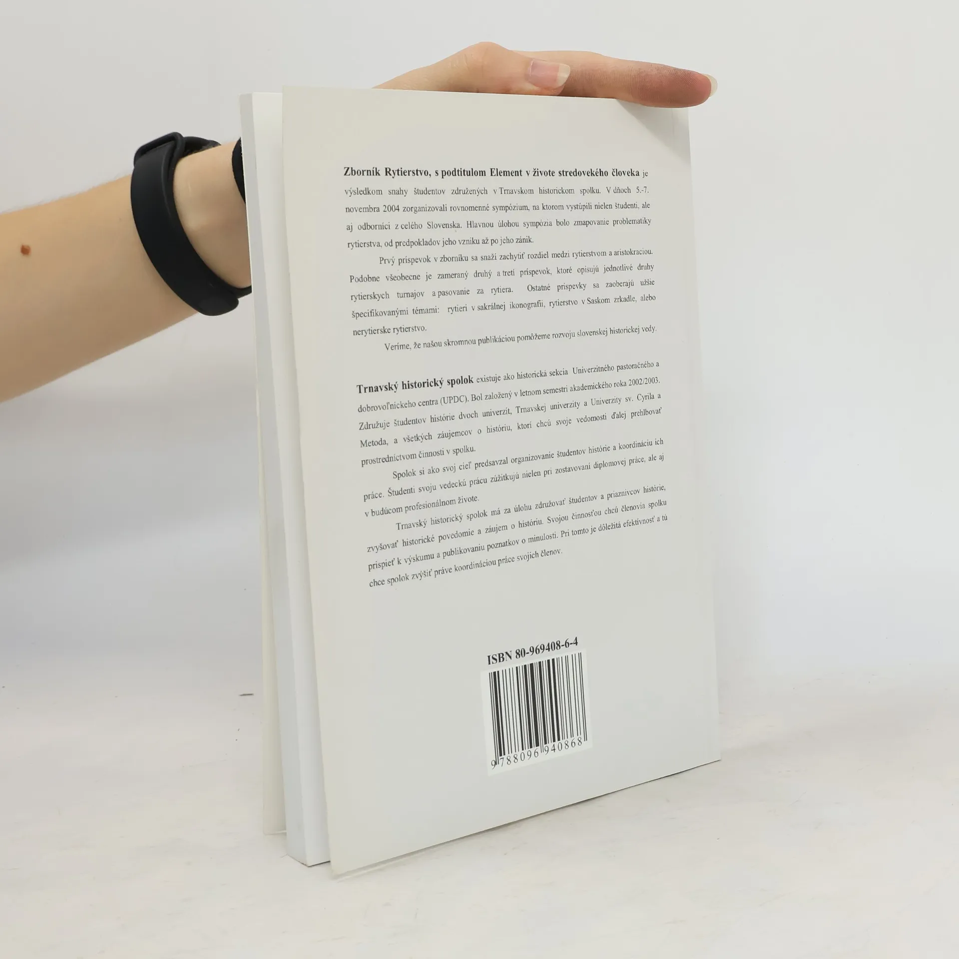 Element v živote stredovekého človeka Tento zborník je výsledkom snahy študentov združených v Trnavskom historickom spolku. V dňoch 5.-7. novembra 2004 zorganizovali rovnomerné sympózium, na ktorom vystúpili nielen študenti, ale aj odborníci z celého Slovenska. Hlavnou úlohou sympózia bolo zmapovanie problematiky rytierstva, od predpokladov jeho vzniku až po jeho zánik.
