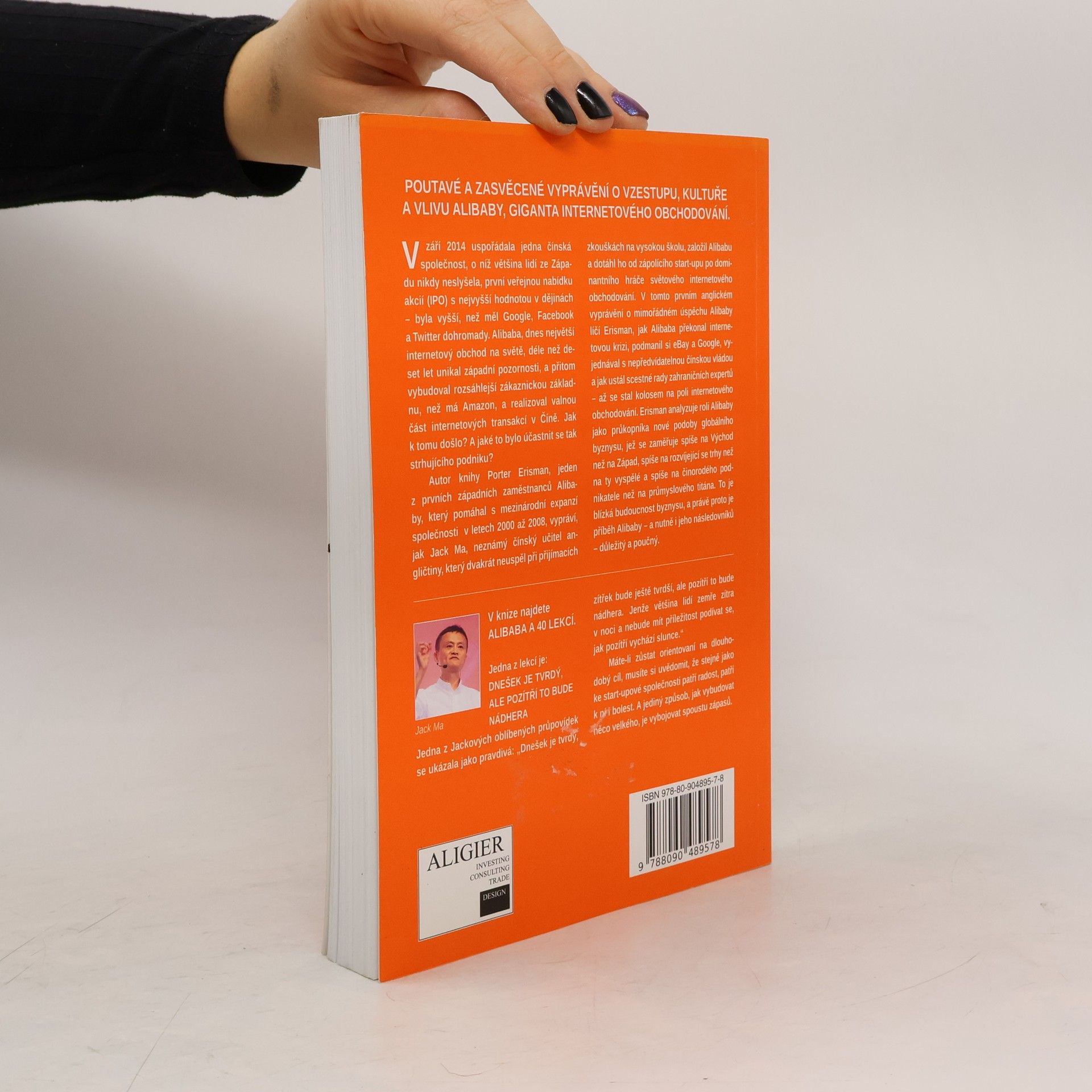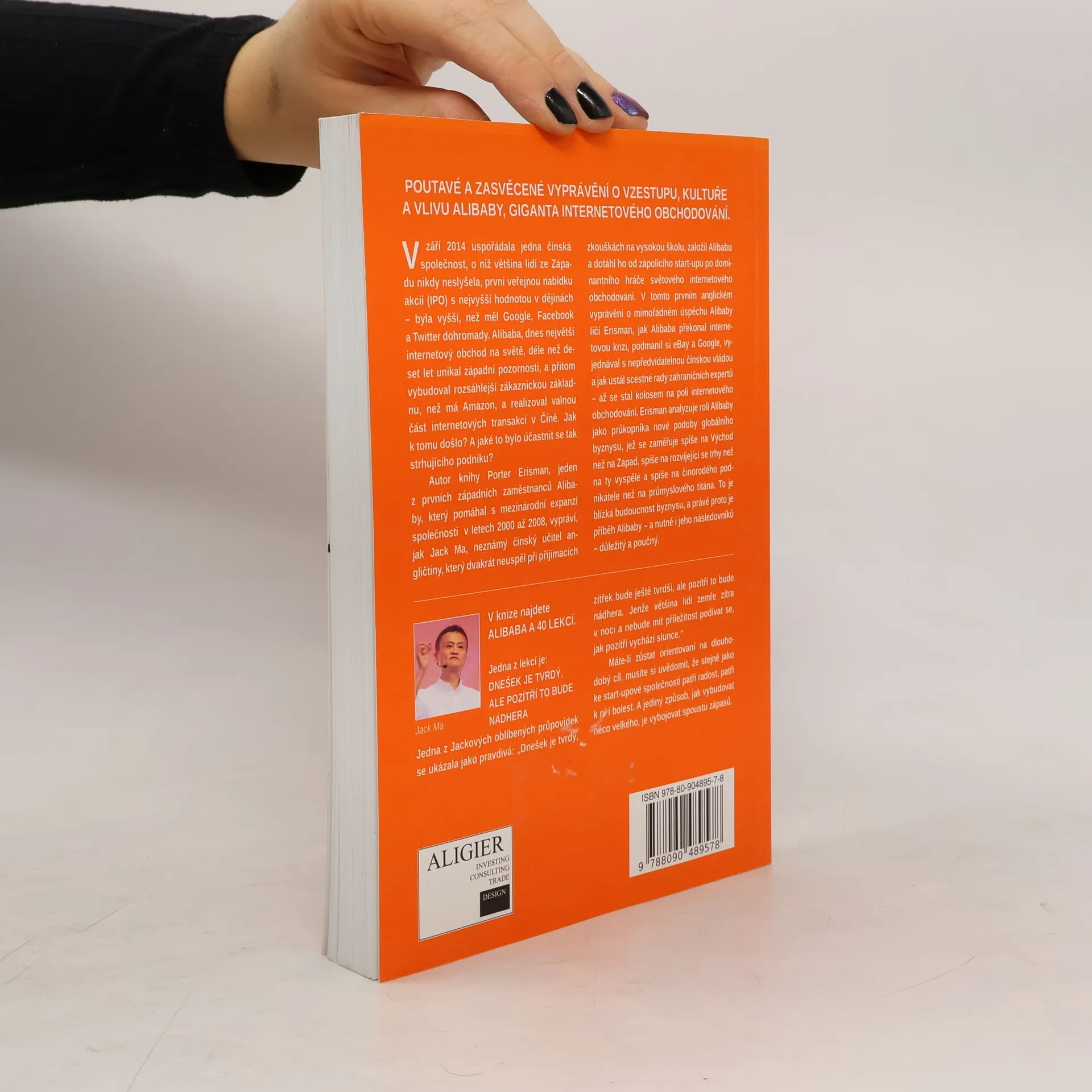V září 2014 uspořádala jedna čínská společnost, o níž většina lidí ze Západu nikdy neslyšela, první veřejnou nabídku akcií (IPO) s nejvyšší hodnotou v dějinách – byla vyšší, než měl Google, Facebook a Twitter dohromady. Alibaba, dnes největší internetový obchod na světě, déle než deset let unikal západní pozornosti, a přitom vybudoval rozsáhlejší zákaznickou základnu, než má světový gigant Amazon, a realizoval valnou část internetových transakcí v Číně. Příběh Jacka Maa, neznámého čínského učitele angličtiny, který dvakrát neuspěl při přijímacích zkouškách na vysokou školu, nerozuměl počítačům, přesto založil Alibabu a dotáhl ho od start-upu zápasícího o existenci na dominantního hráče světového internetového obchodování. Alibaba překonal internetovou krizi, nepodlehl konkurenci firem eBay ani Google, vyjednával s nevypočitatelnou čínskou vládou, ustál scestné rady zahraničních expertů – a vytvořil největší on-line tržiště světa. Pozoruhodný příběh Alibaby poutavě vypráví bývalý viceprezident společnosti Alibaba Porter Erisman, který osm let stál po boku Jacka Maa.