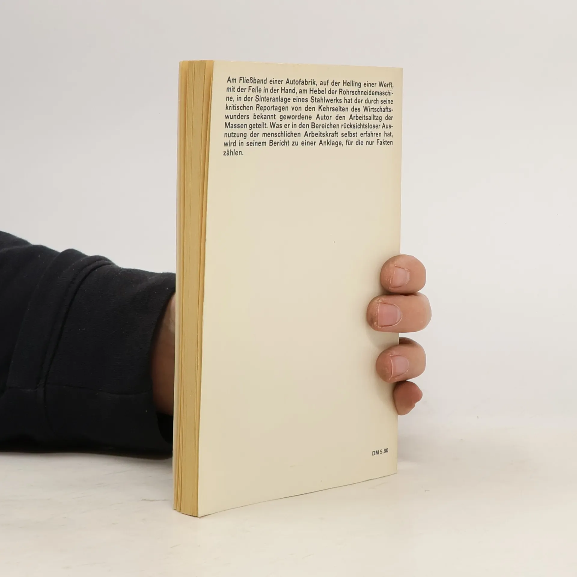 Als Hilfsarbeiter heuert Günter Wallraff zwischen 1963 und 1965 in verschiedenen Großbetrieben an: am Fließband bei Ford in Köln, im Akkord bei Siemens in München oder als Reiniger in Sinter zwo auf der August-Thyssen-Hütte in Duisburg-Hamborn. Zwischen Förderbändern, gigantischen Kesseln und rotierenden Kühlern, in Dreck und tosendem Lärm lernt er die Härte der industriellen Arbeitswelt am eigenen Leib kennen. Günter Wallraff, geboren 1942 in Burscheid bei Köln. Zuerst Buchhändler, dann Journalist und Schriftsteller. Heute engagiert er sich vor allem in Ostdeutschland gegen Rechtsradikalismus und Rassismus. Zahlreiche weitere Veröffentlichungen
