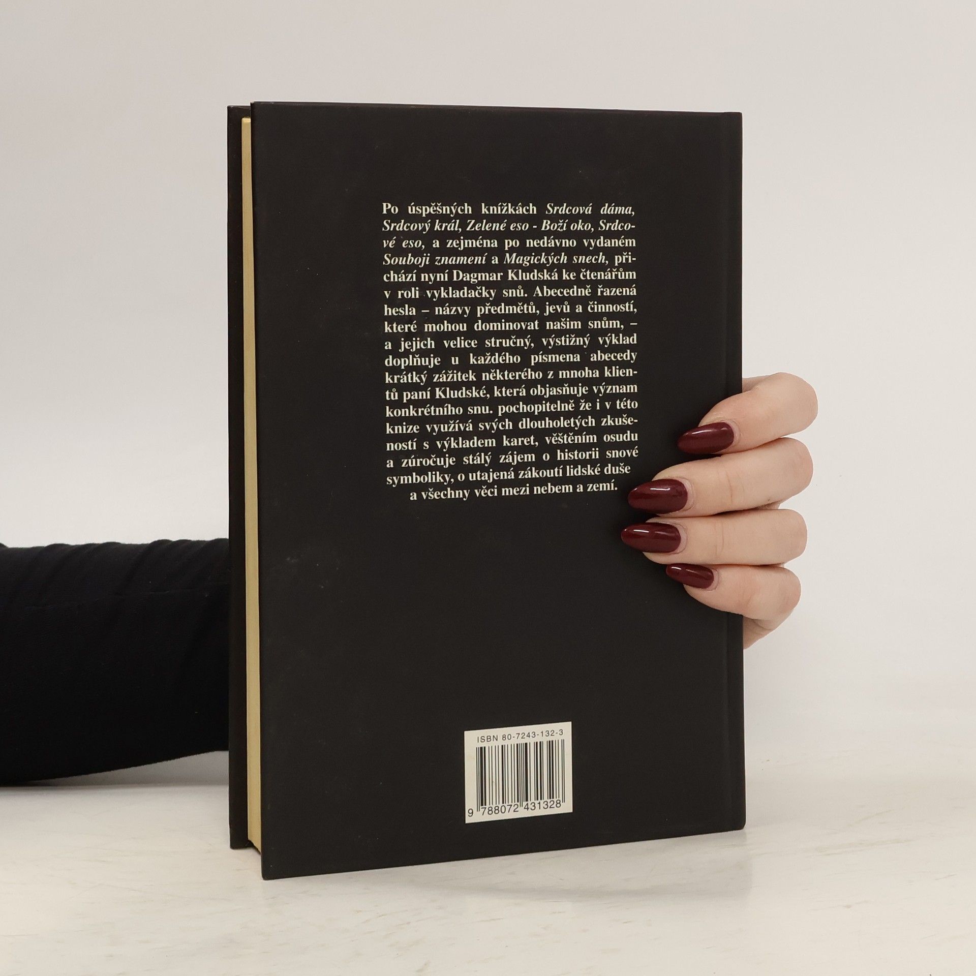 Po úspěšných knihách Srdcová dáma, Srdcové eso aj. přichází autorka ke čtenářům v roli vykladačky snů. Abecedně řazená hesla - názvy předmětů, jevů a činností, které mohou dominovat našim snům - a jejich stručný, výstižný výklad doplňuje u každého písmena abecedy krátký zážitek některého z mnoha klientů paní Kludské, důležitý při objasnění snu. Pochopitelně i v této knize využívá autorka svých dlouholetých zkušeností s výkladem karet, věštěním osudu a zúročuje stálý zájem o historii snové symboliky, o utajená zákoutí lidské duše a všechny záhadné věci mezi nebem a zemí.