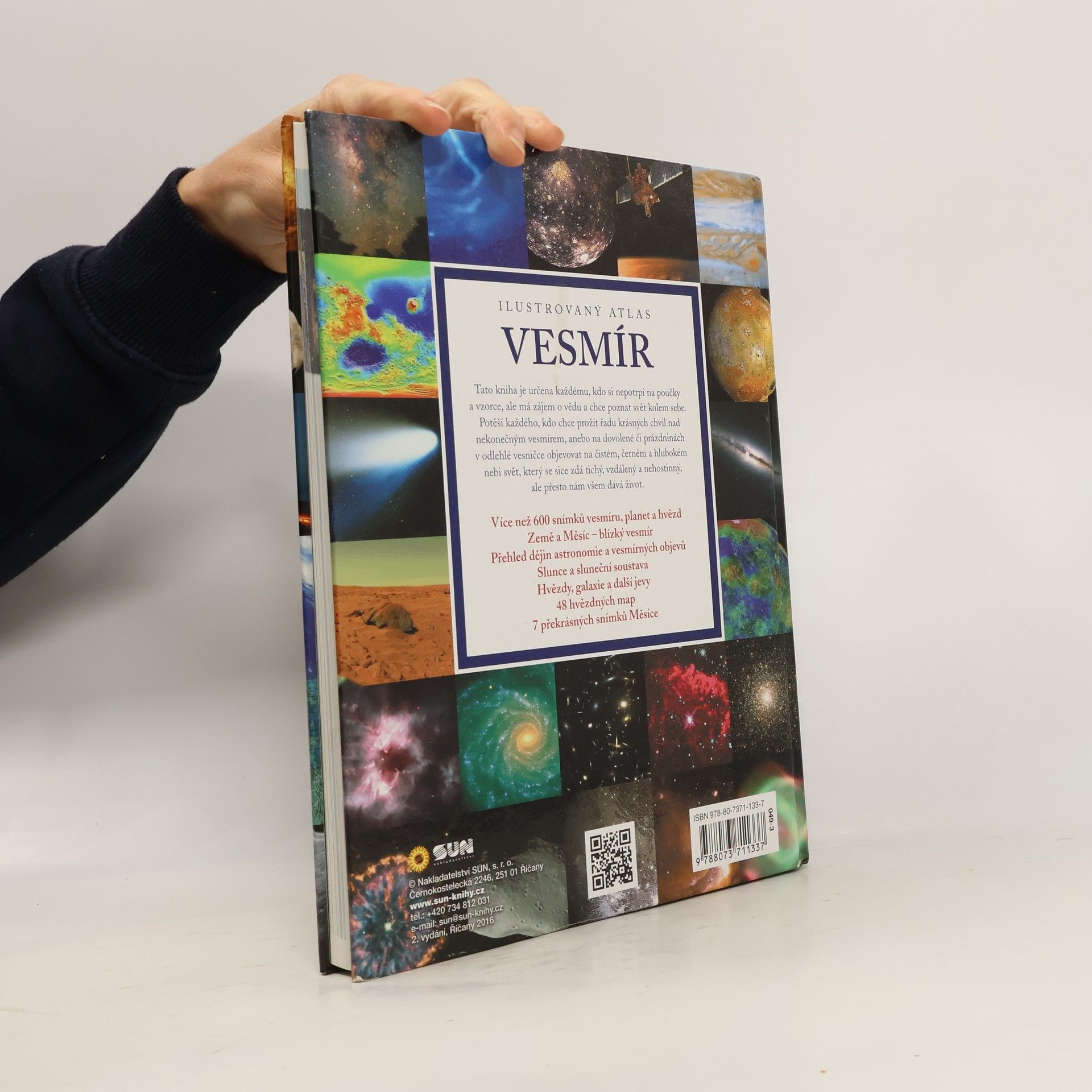 Tato kniha je určena každému, kdo si nepotrpí na poučky a vzorce, ale má zájem o vědu a chce poznat svět kolem sebe. Více než 600 snímků vesmíru, planet a hvězd Země a Měscíe - blízký vesmír. Přehled dějin astronomie a vesmírných objevů, Slunce a sluneční soustava, Hvězdy, galaxie a další jevy, 48 hvězdných map, 7 překrásných snímků Měsíce.