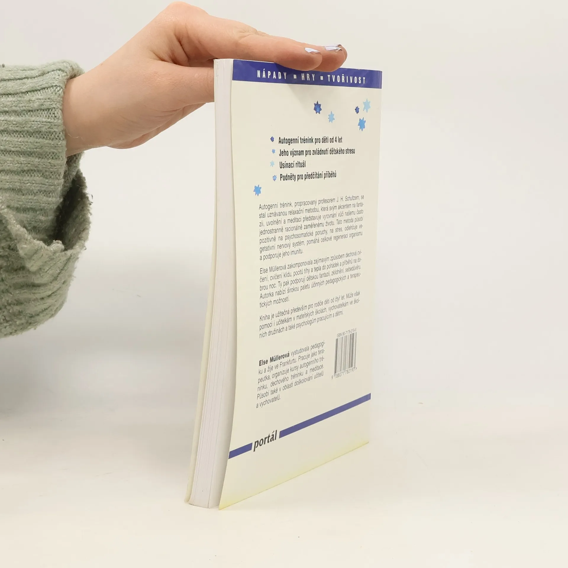 Autogenní trénink pro děti od 4 let. Asi nejoblíbenější knihu Else Müllerové používají především rodiče jako četbu pro děti před spaním. Poetické příběhy s barevnými ilustracemi jsou psány podle metody autogenního tréninku prof. J. H. Schultze, která akcentuje fantazii, uvolnění a meditaci jako vyrovnání vůči našemu často jednostranně racionálně zaměřenému životu. Tento trénink působí pozitivně na psychosomatické poruchy, na stres, odlehčuje vegetativní nerovový systém, pomáhá regeneraci organismu a podporuje jeho imunitu. Kniha je užitečná především pro rodiče dětí od čtyř let. Může však pomoci i učitelkám v mateřských školách, vychovatelkám ve školních družinách a psychologům pracujícím s dětmi.