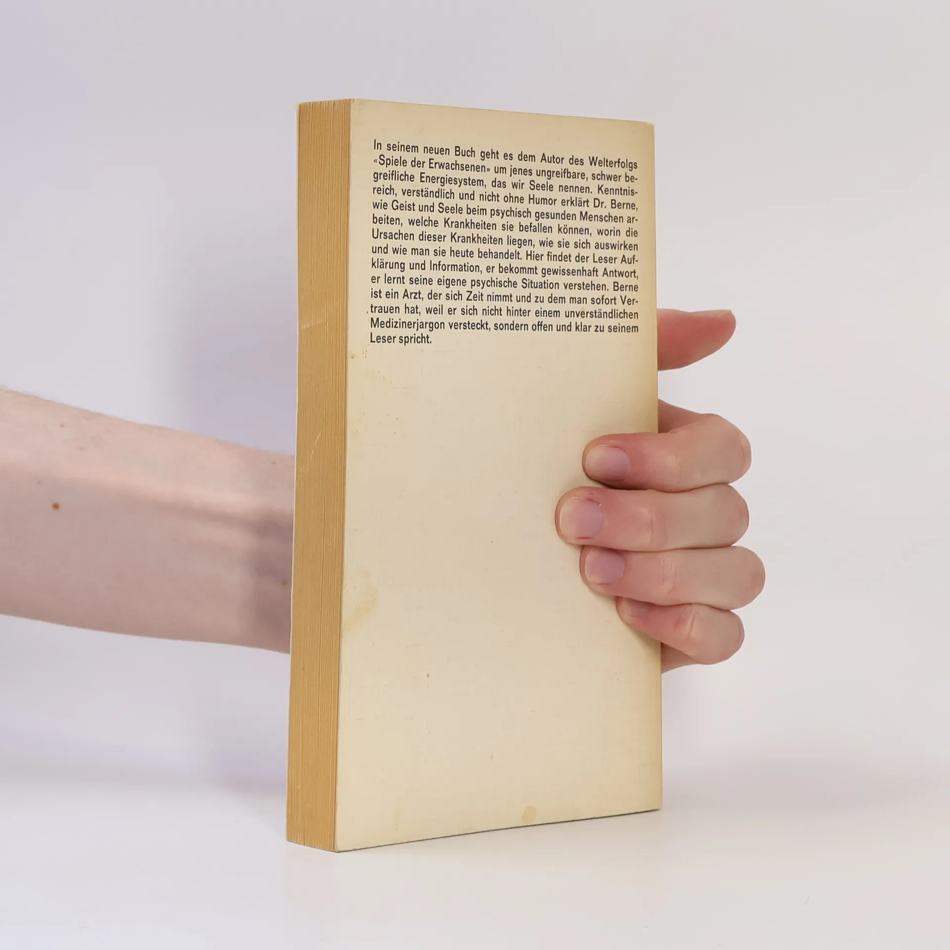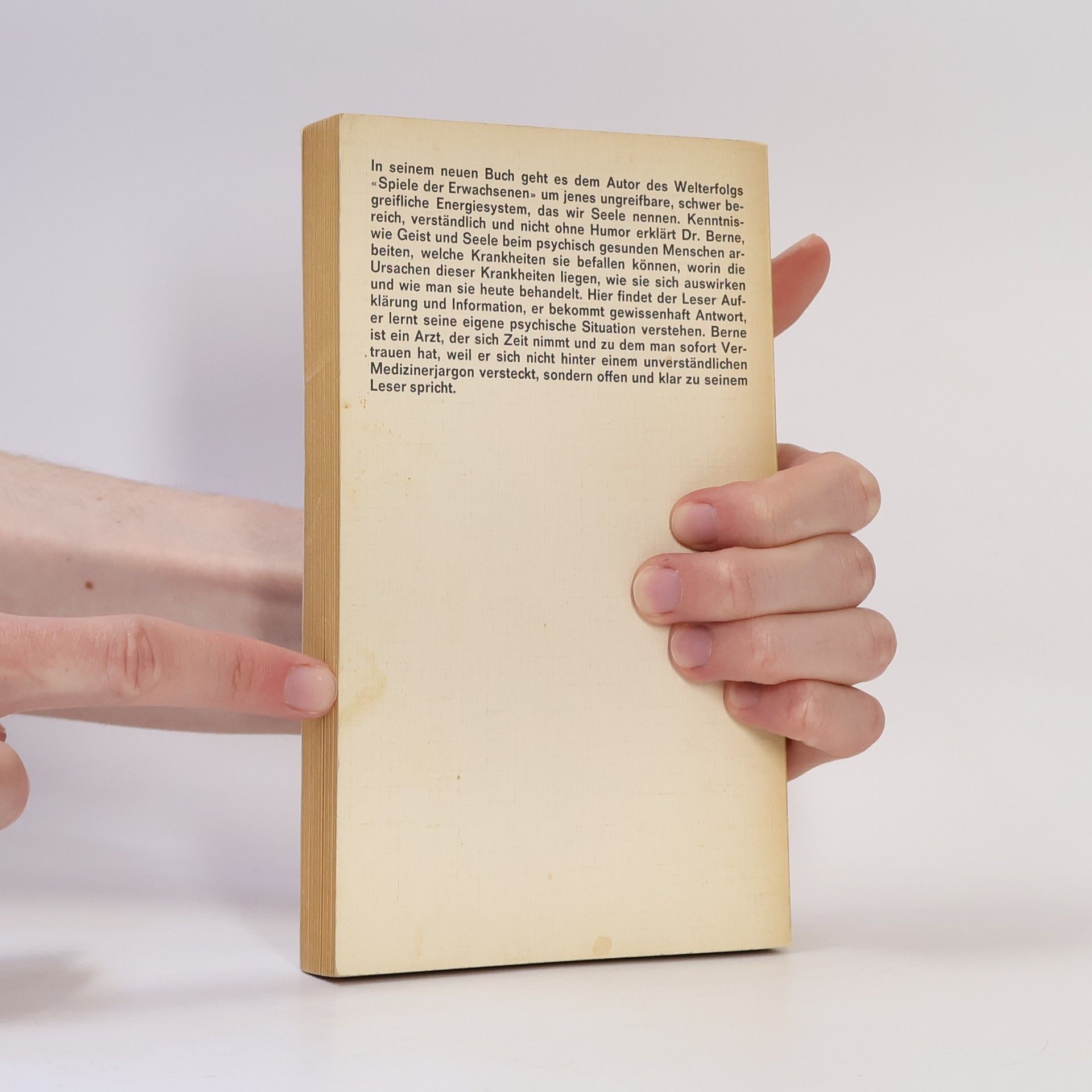 Dem Autor des Welterfolgs "Spiele der Erwachsenen" geht es hier um jenes ungreifbare, schwer begreifliche Energiesystem, das wir Seele nennen. Kenntnisreich, verständlich und nicht ohne Humor erklärt Dr. Berne, wie Geist und Seele beim psychisch gesunden Menschen arbeiten, welche Krankheiten sie befallen können, worin die Ursachen dieser Krankheiten liegen, wie sie sich auswirken und wie man sie behandelt. Hier findet der Leser Aufklärung und Information, er bekommt gewissenhaft Antwort, er lernt seine eigene psychische Situation verstehen. Berne ist ein Arzt, der sich Zeit nimmt und zu dem man sofort Vertrauen hat, weil er sich nicht hinter einem unverständlichen Medizinerjargon versteckt, sondern offen und klar zu seinem Leser spricht.