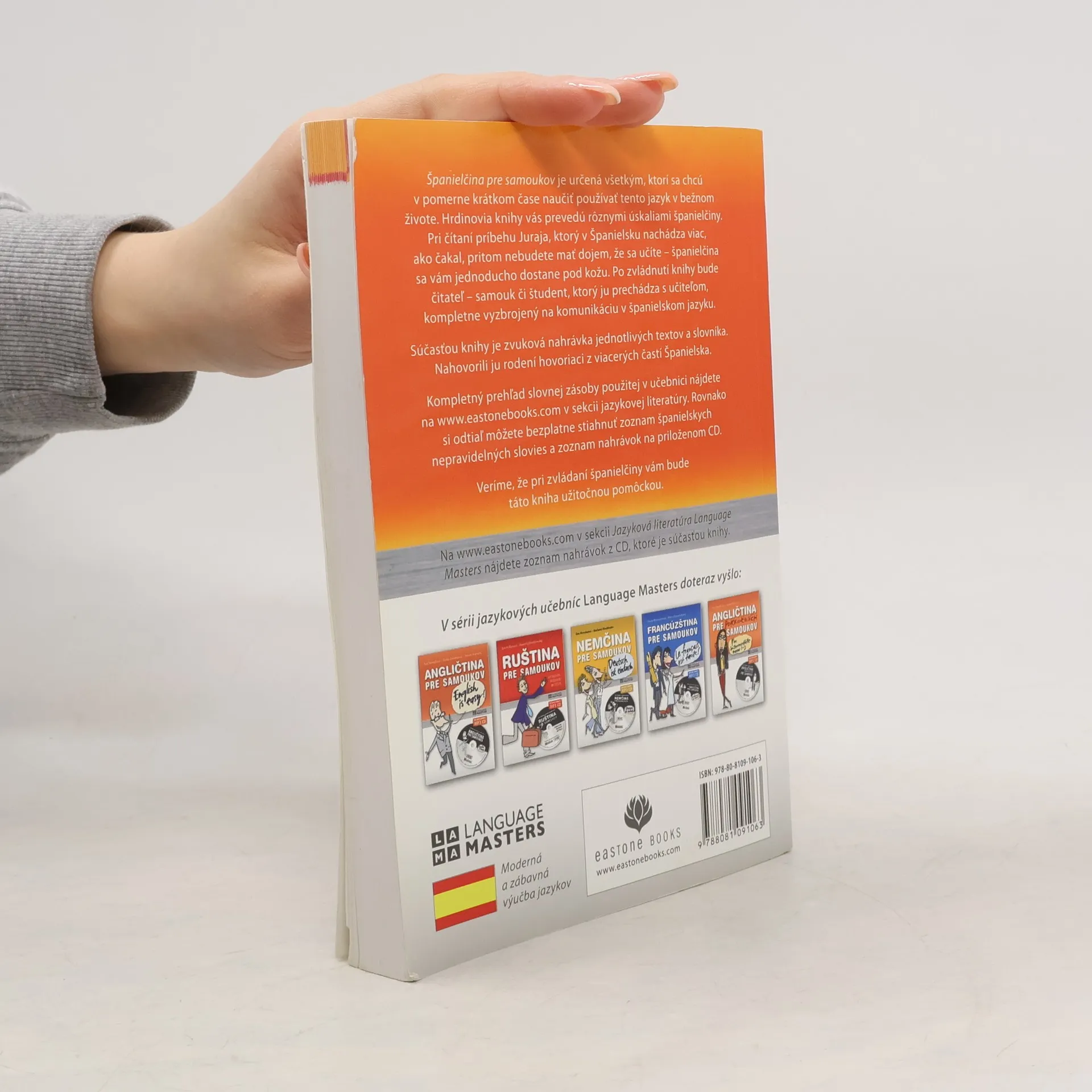 Španielčina pre samoukov je určená všetkým, ktorí sa chcú v pomerne krátkom čase naučiť používať tento jazyk v bežnom živote. Po zvládnutí knihy bude čitateľ - samouk či študent, ktorý ju prechádza s učiteľom, kompletne vyzbrojený na komunikáciu v španielskom jazyku.